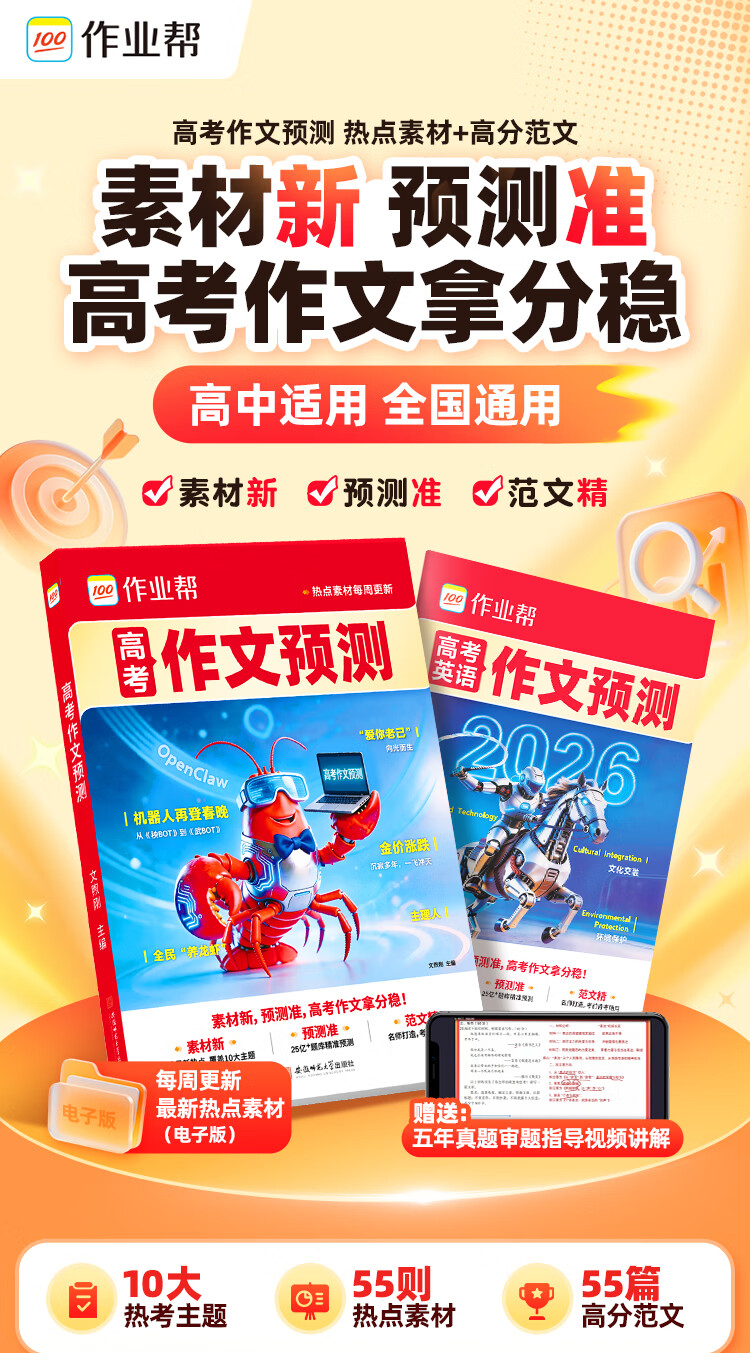 作业帮【2026新版现货速发】高考作文热点预测语文作文预测 热点素材+高分范文高中满分作文素材积累时政热点热点预测冲刺高考满分作文高一二三必考热门主题范文书 【2026抖音爆款】高考热点作文预测