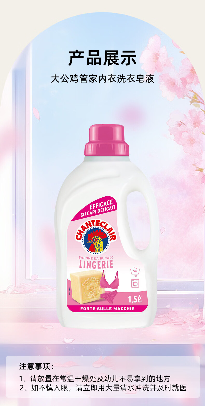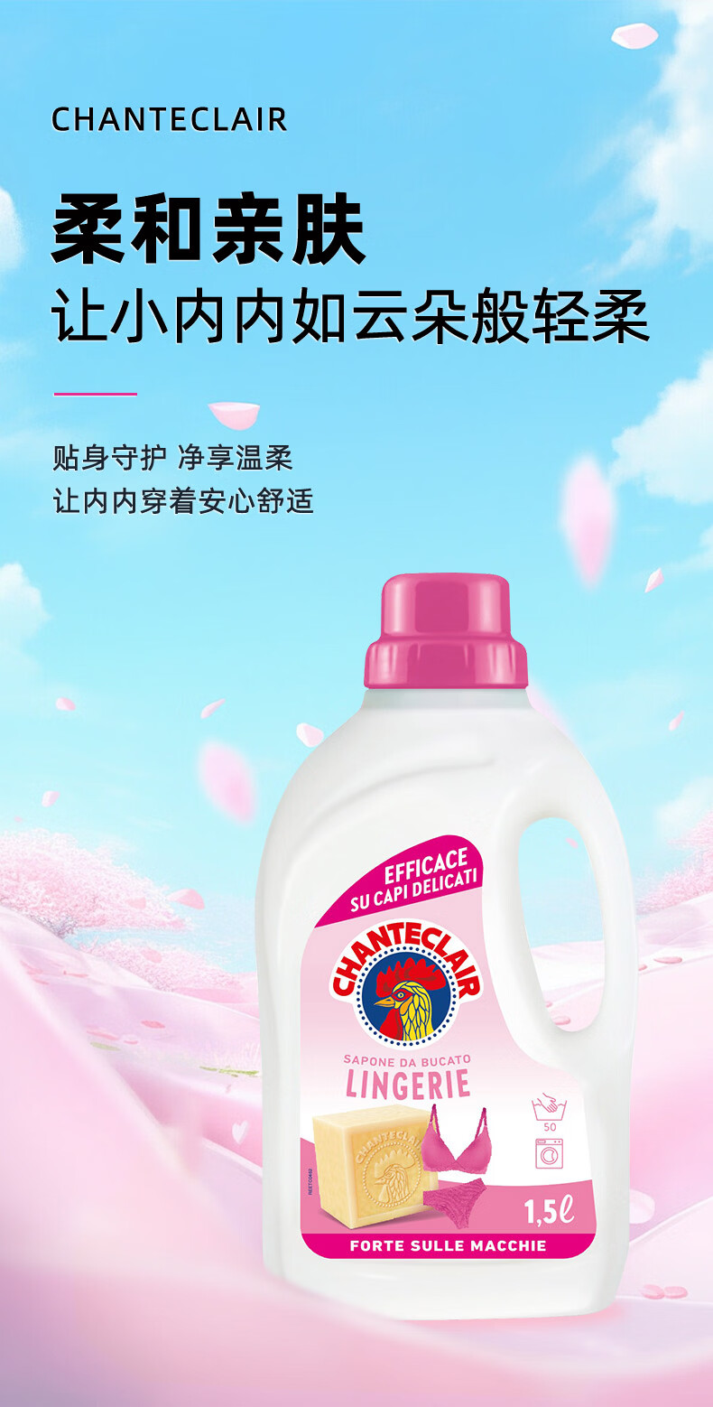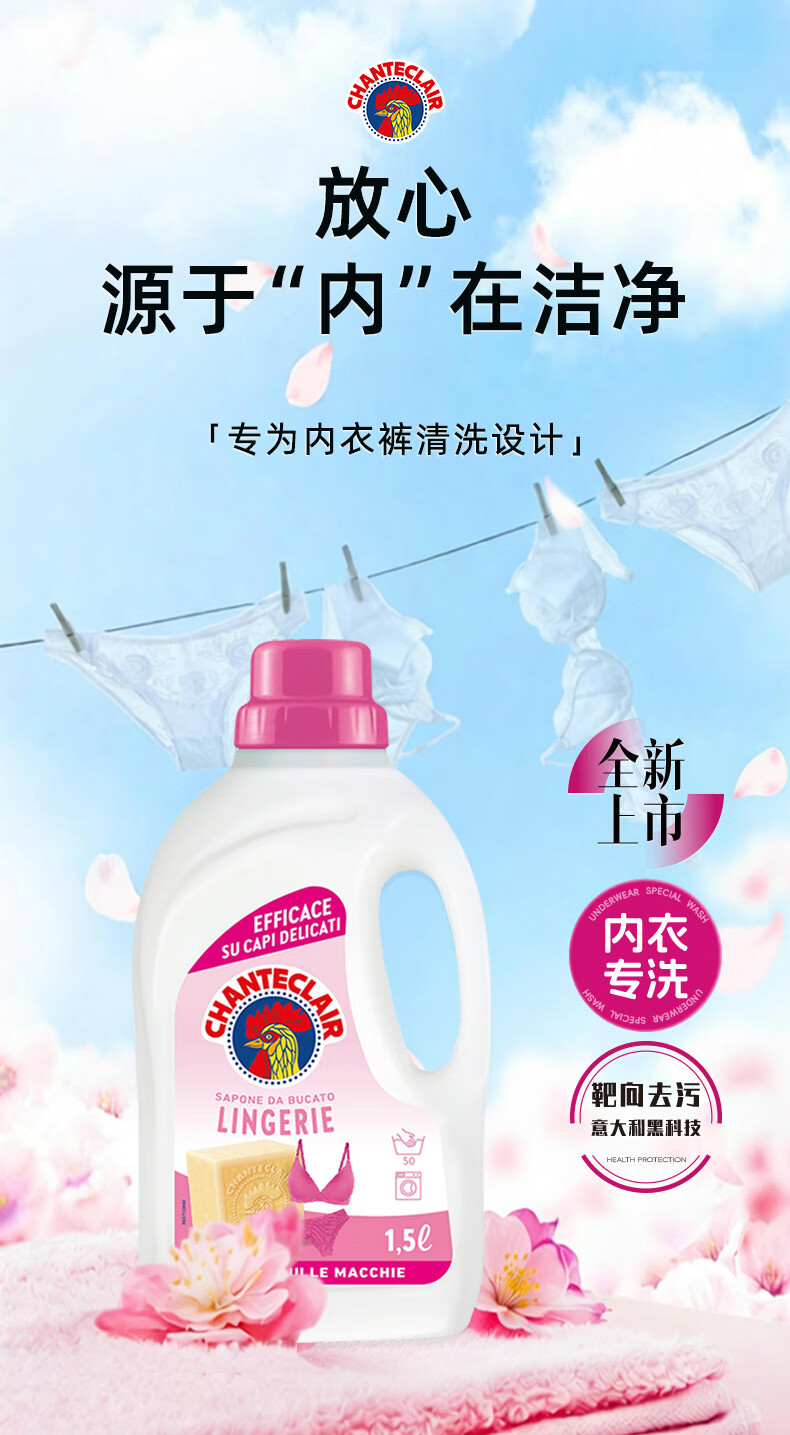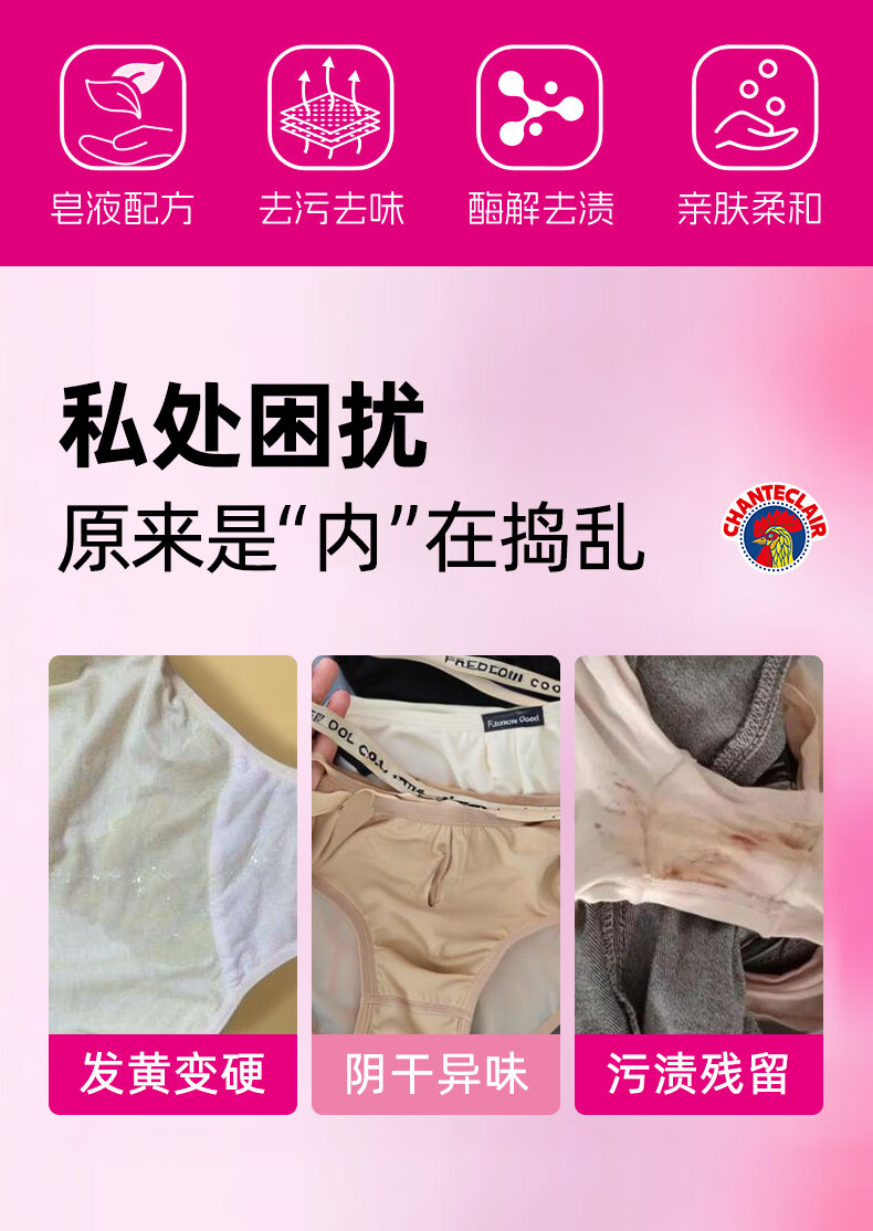 大公鸡管家(CHANTE CLAIR)内衣内裤专用洗衣液 去污渍血渍清洁液 温和不伤手 内衣洗衣液1500ml