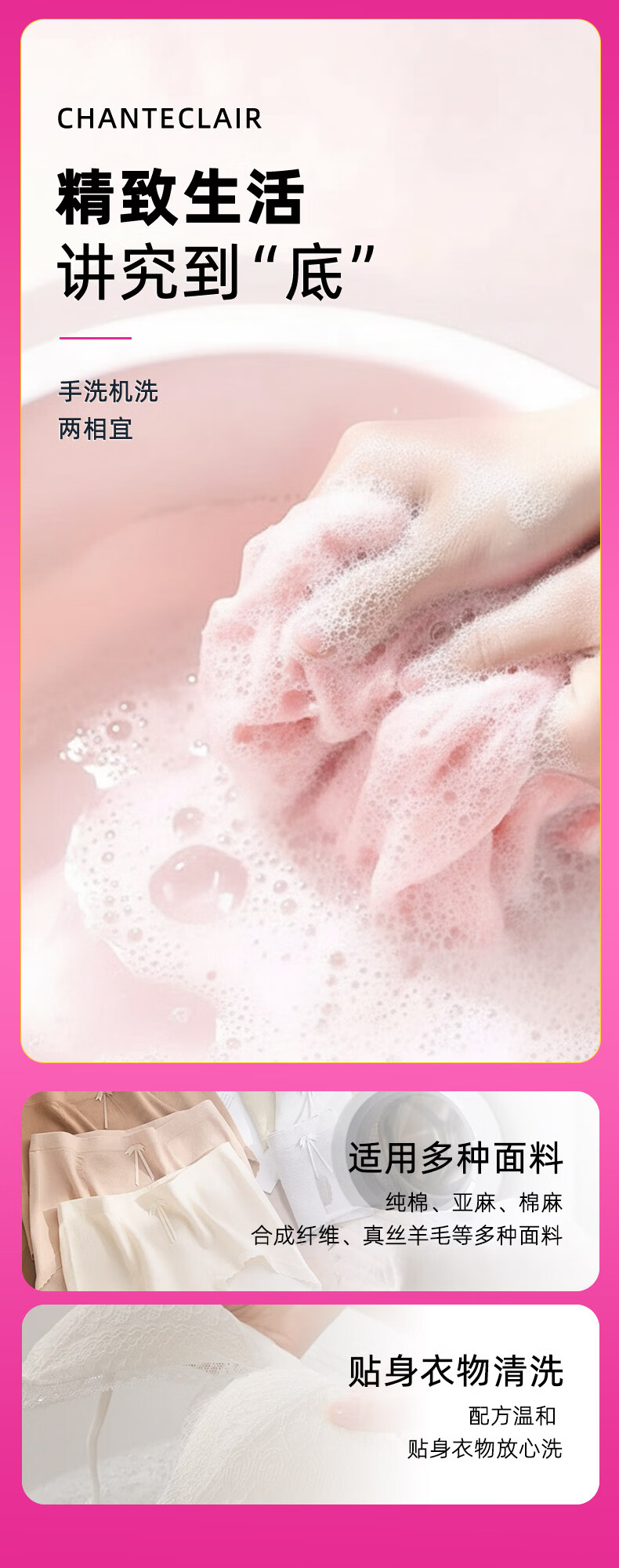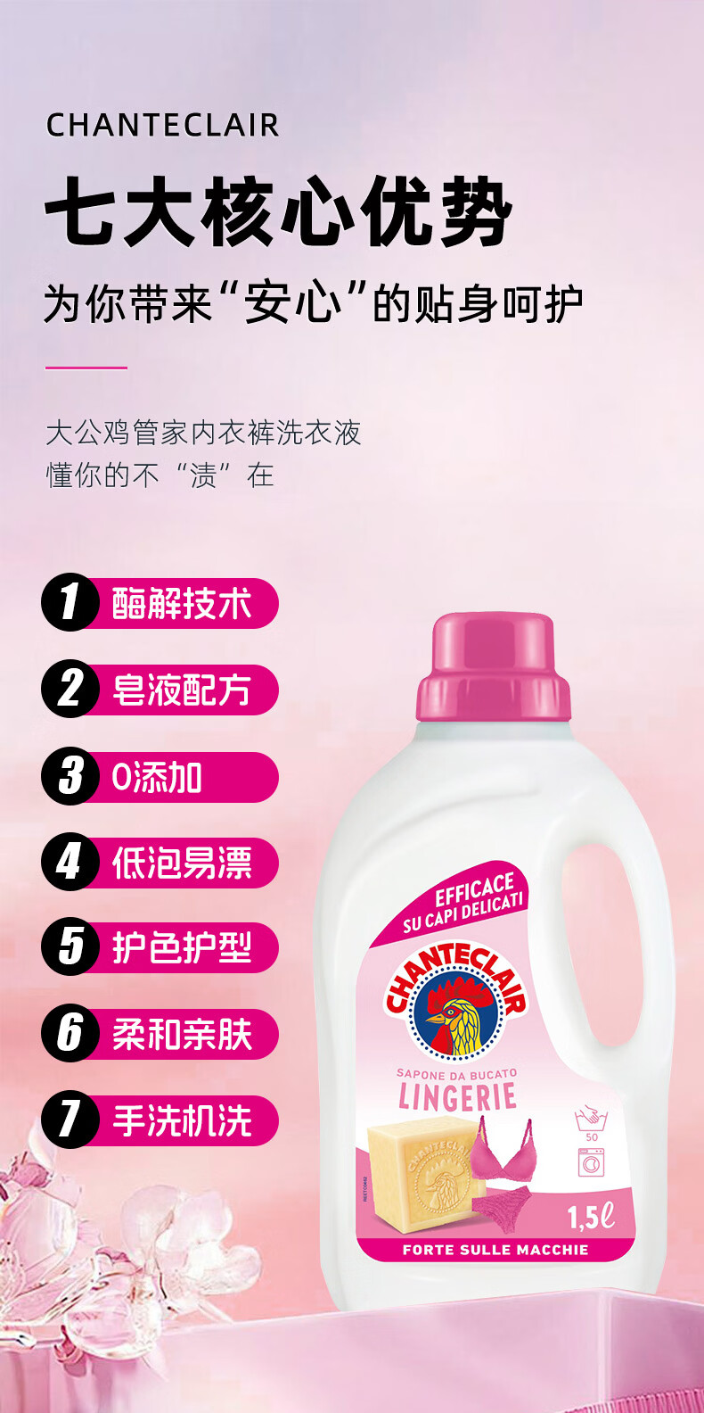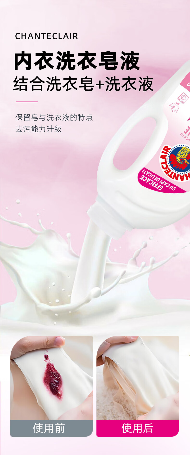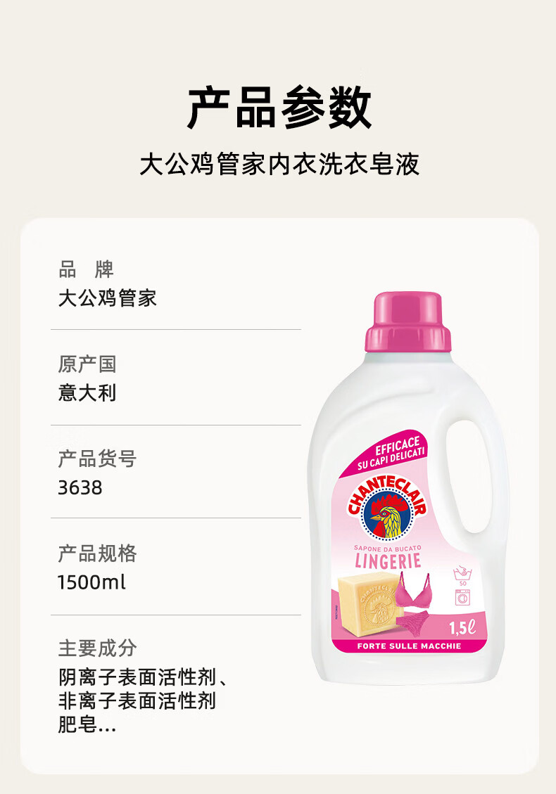 大公鸡管家(CHANTE CLAIR)内衣内裤专用洗衣液 去污渍血渍清洁液 温和不伤手 内衣洗衣液1500ml