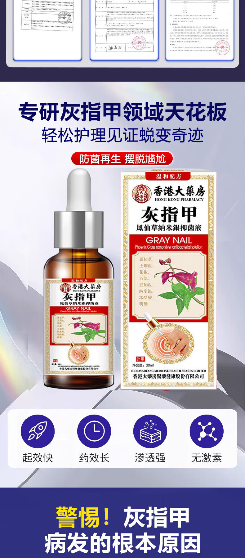 香港大药房重度灰指甲100%特效专用的药特殊效专用抑菌液灰甲净套装 一盒【特效套装】1-2个灰甲选