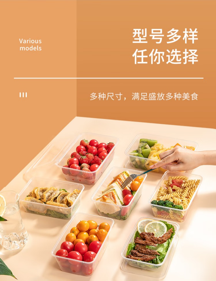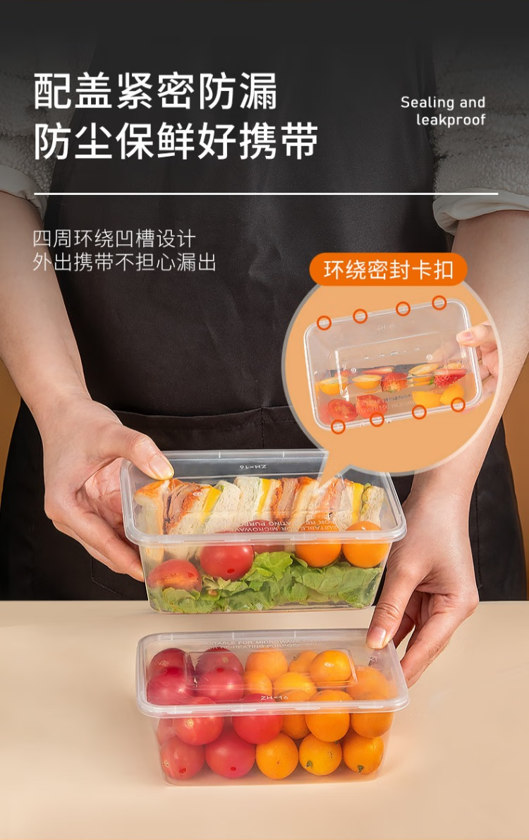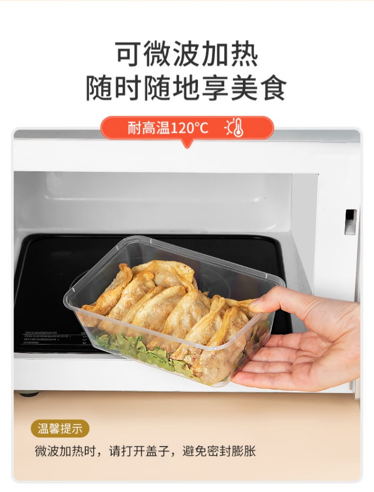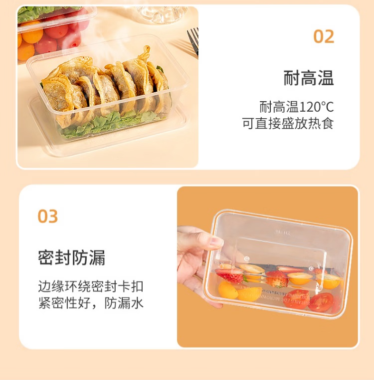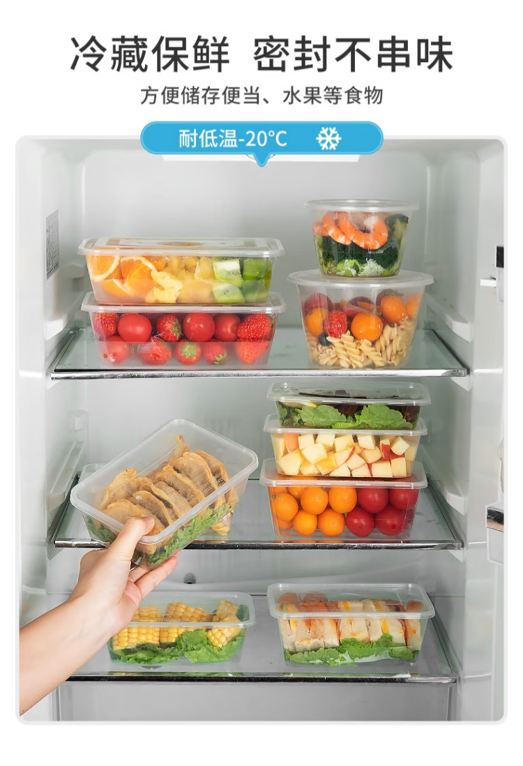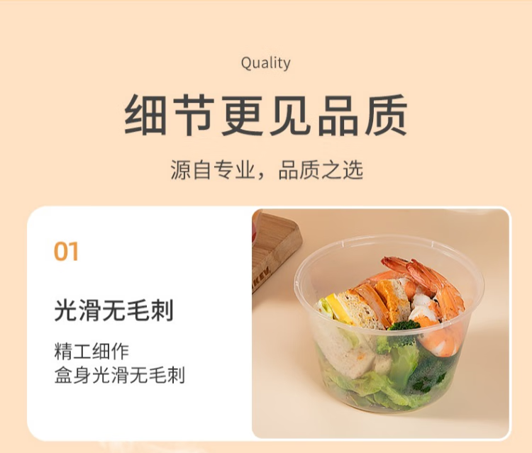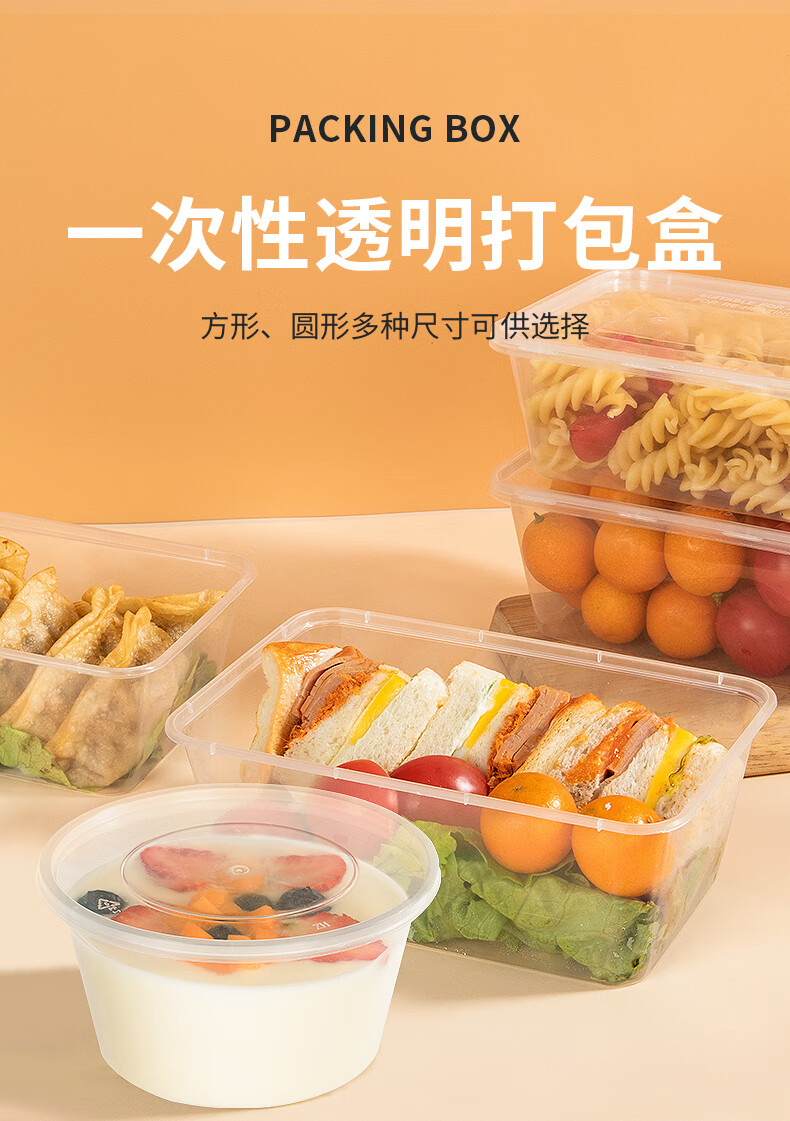 特美居一次性饭盒水果保鲜透明碗外卖打包盒可微波加厚带盖户外露营餐盒 圆形450型*50套