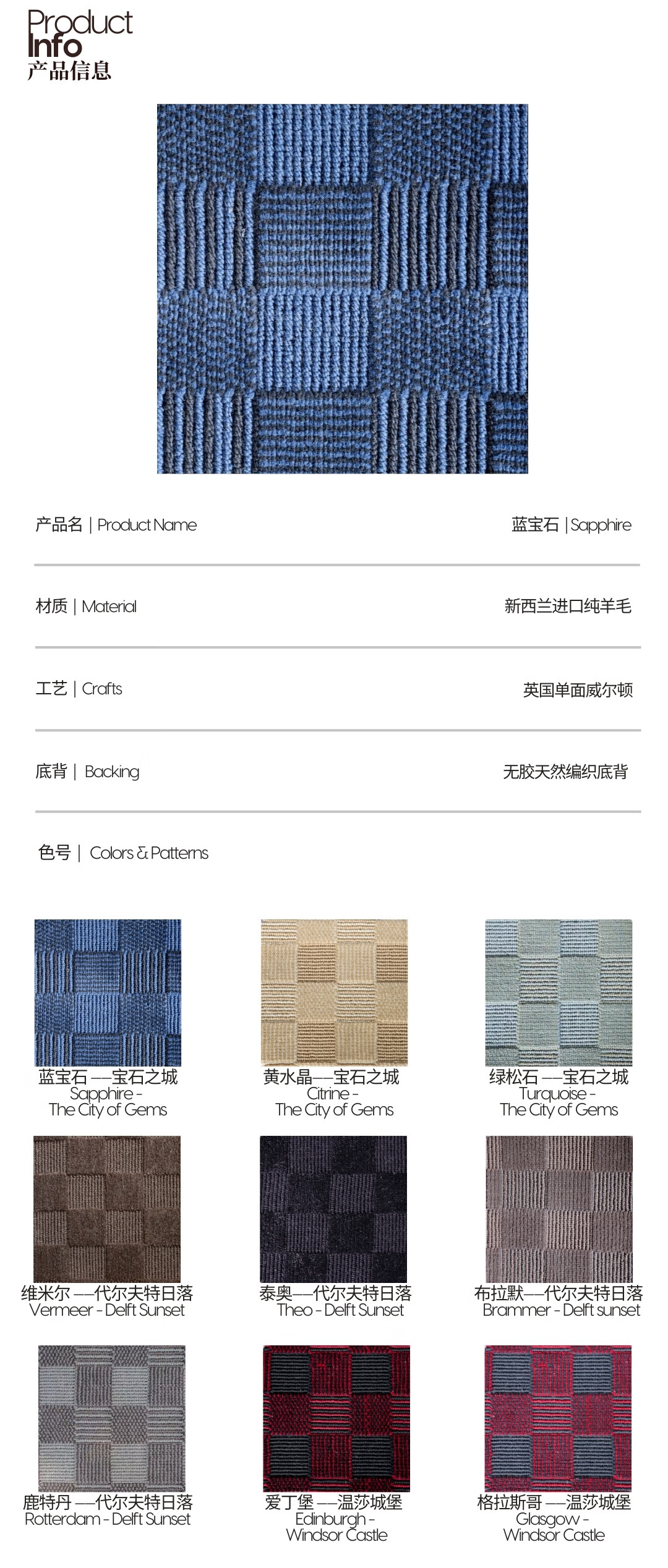 WOOCARPT宝石之城 纯羊毛无胶中古风卧室地毯2026新款家用孟菲斯地毯客厅 布拉默【代尔夫特日落】 300cm*400cm