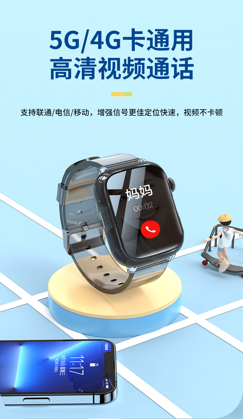 达沃奇【长续航无游戏】儿童5G全网通儿童电话手表初高中生中生学生青少年插卡智能手表定位gps防水男女 升级粉+充电仓+5G全网通+精准定位+支付+无游戏