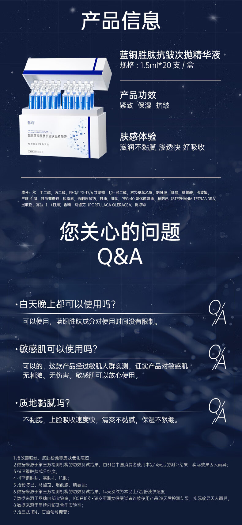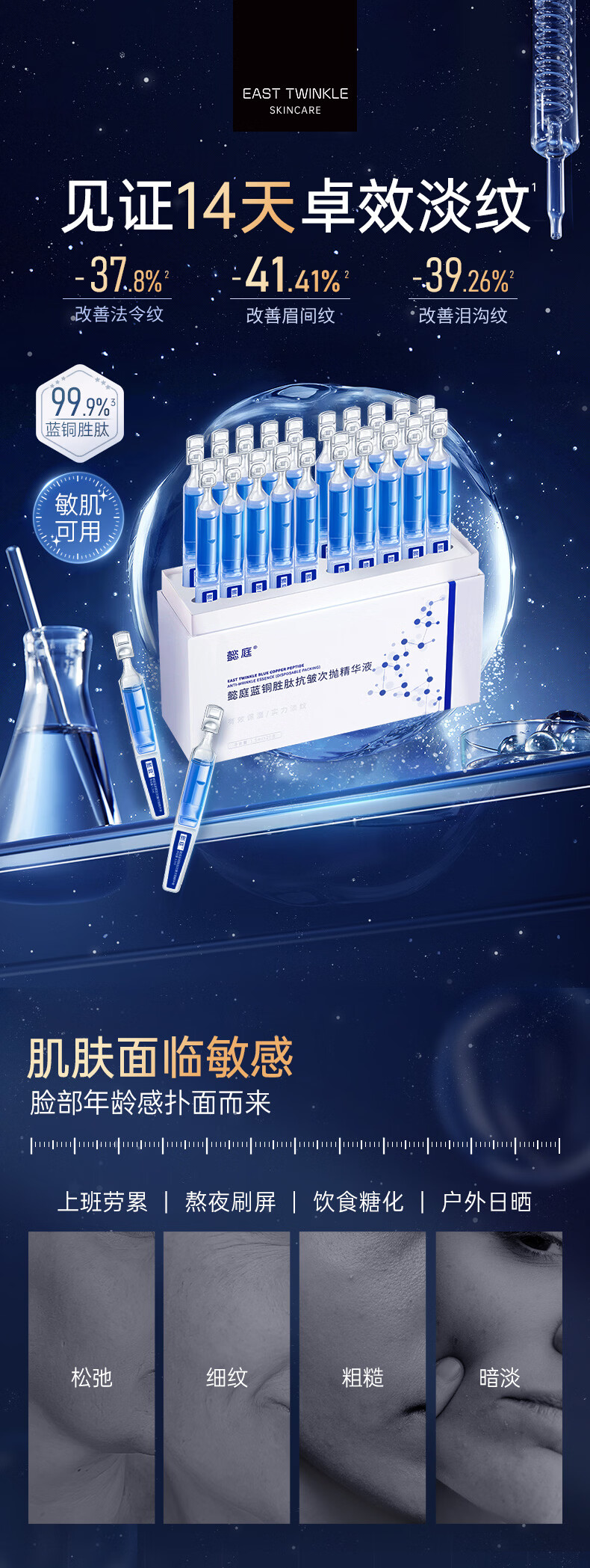 懿庭抗皱次抛精华液紧致抗皱六重胜肽补水保湿精华液男女蓝铜多肽 20支 加赠5支【到手25支】