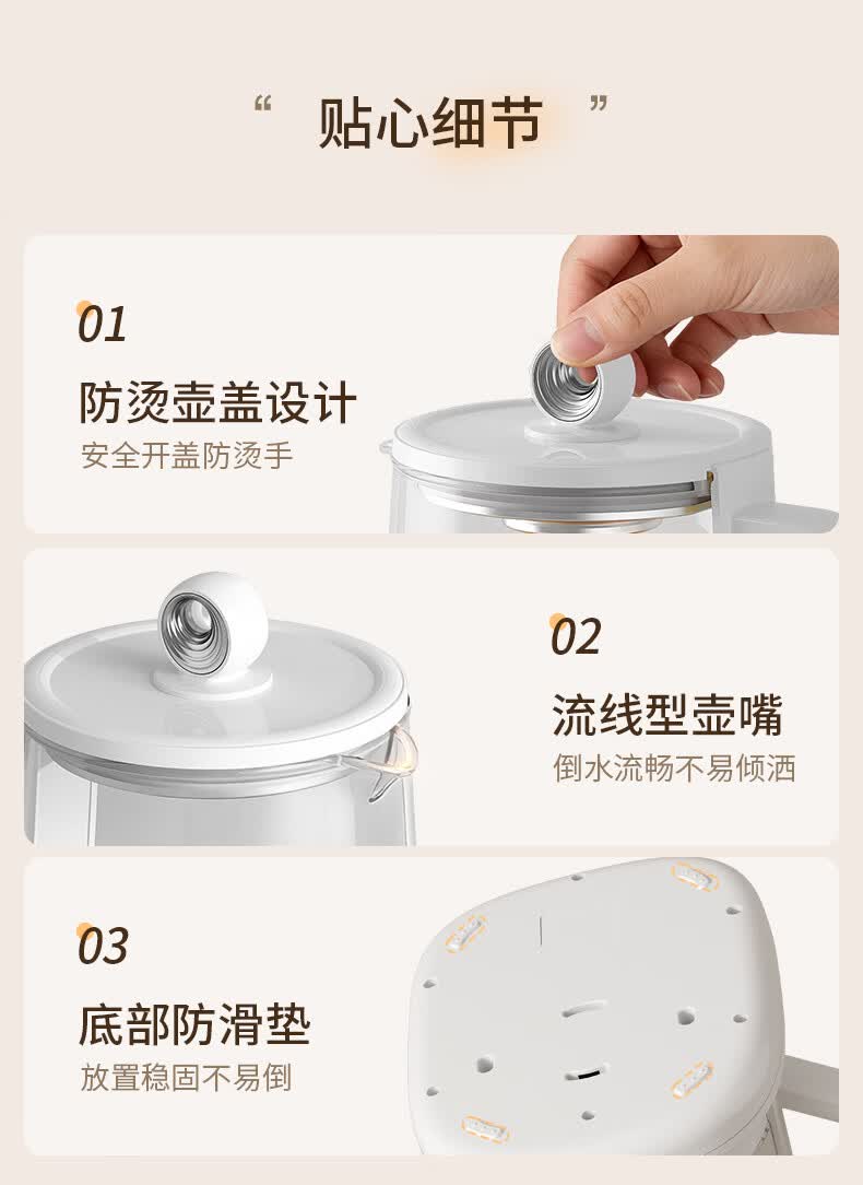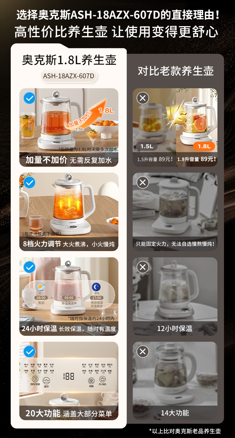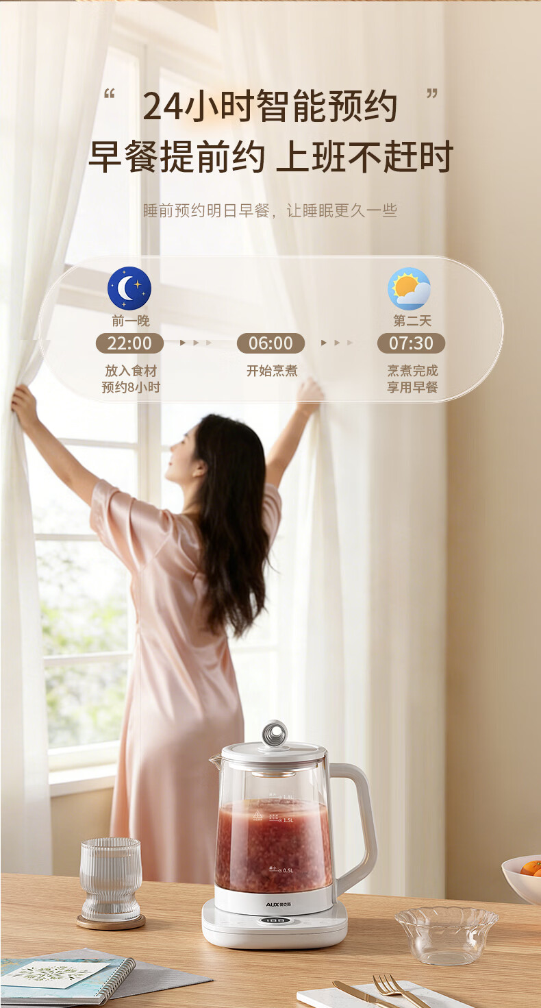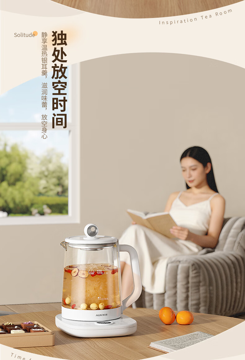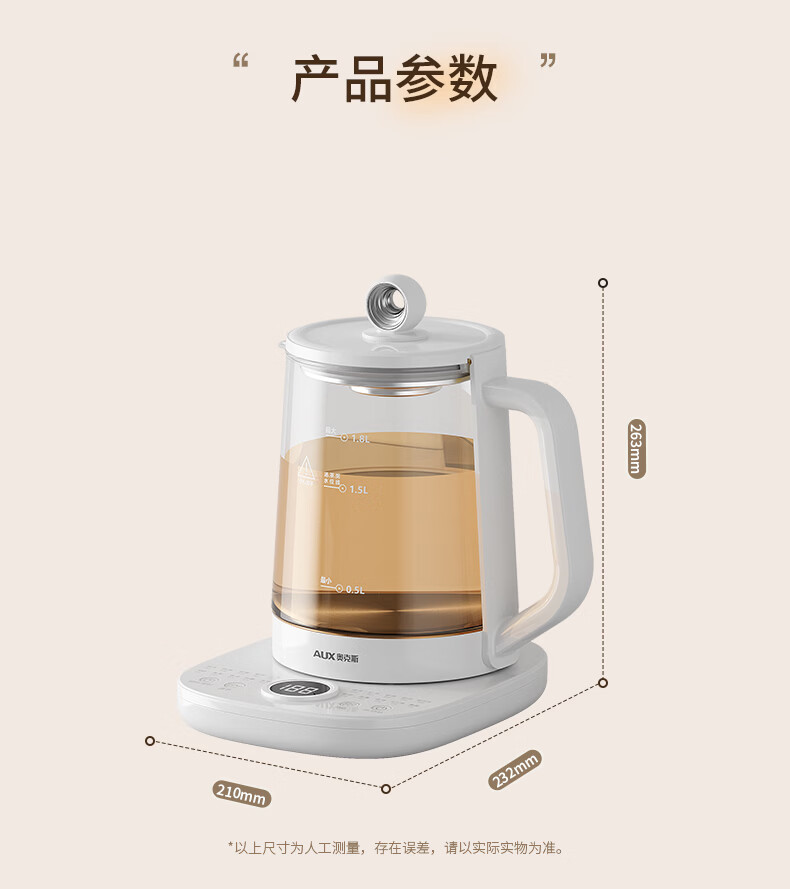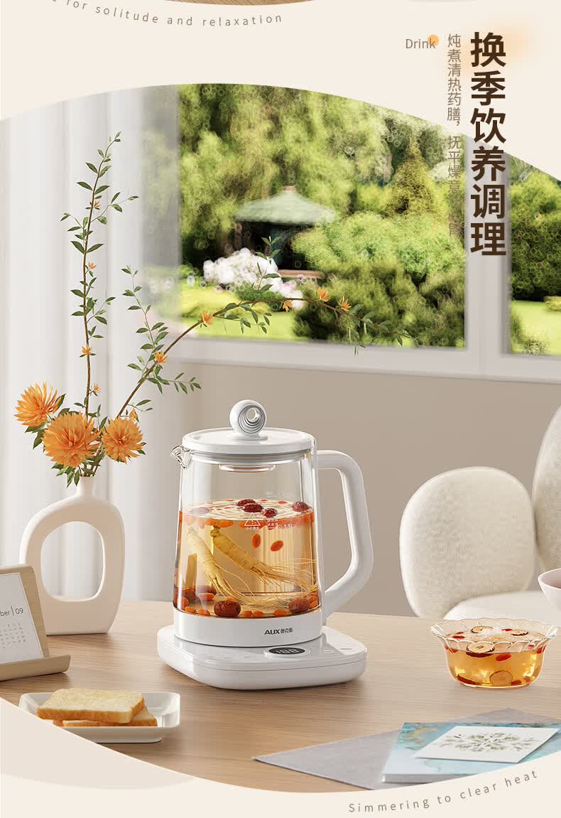 奥克斯(AUX)养生壶保温一体全自动恒温316L不锈钢烧水壶玻璃恒温壶炖煮一体多功能煮茶壶大容量办公室烧水家用 1.8L /基础款 无茶漏