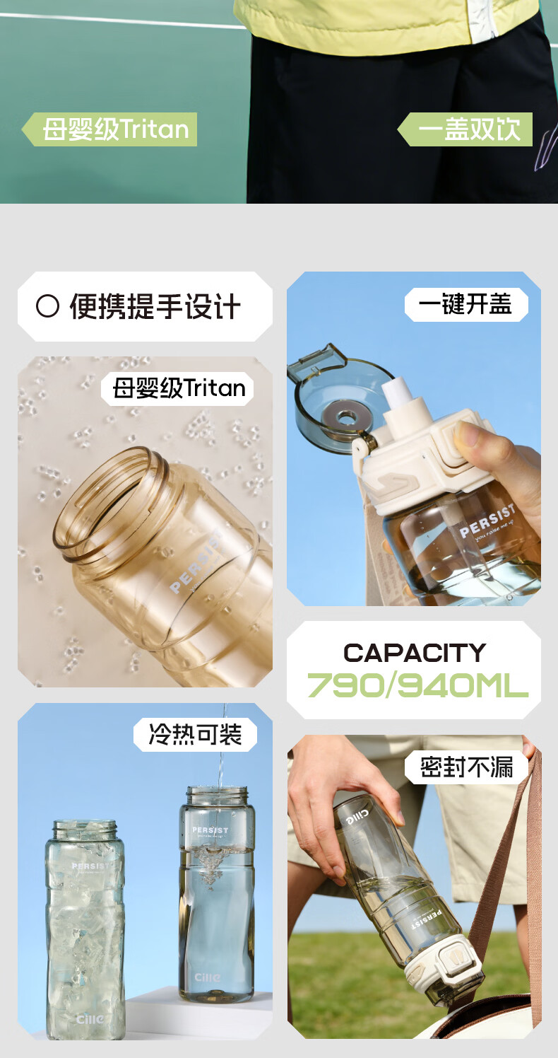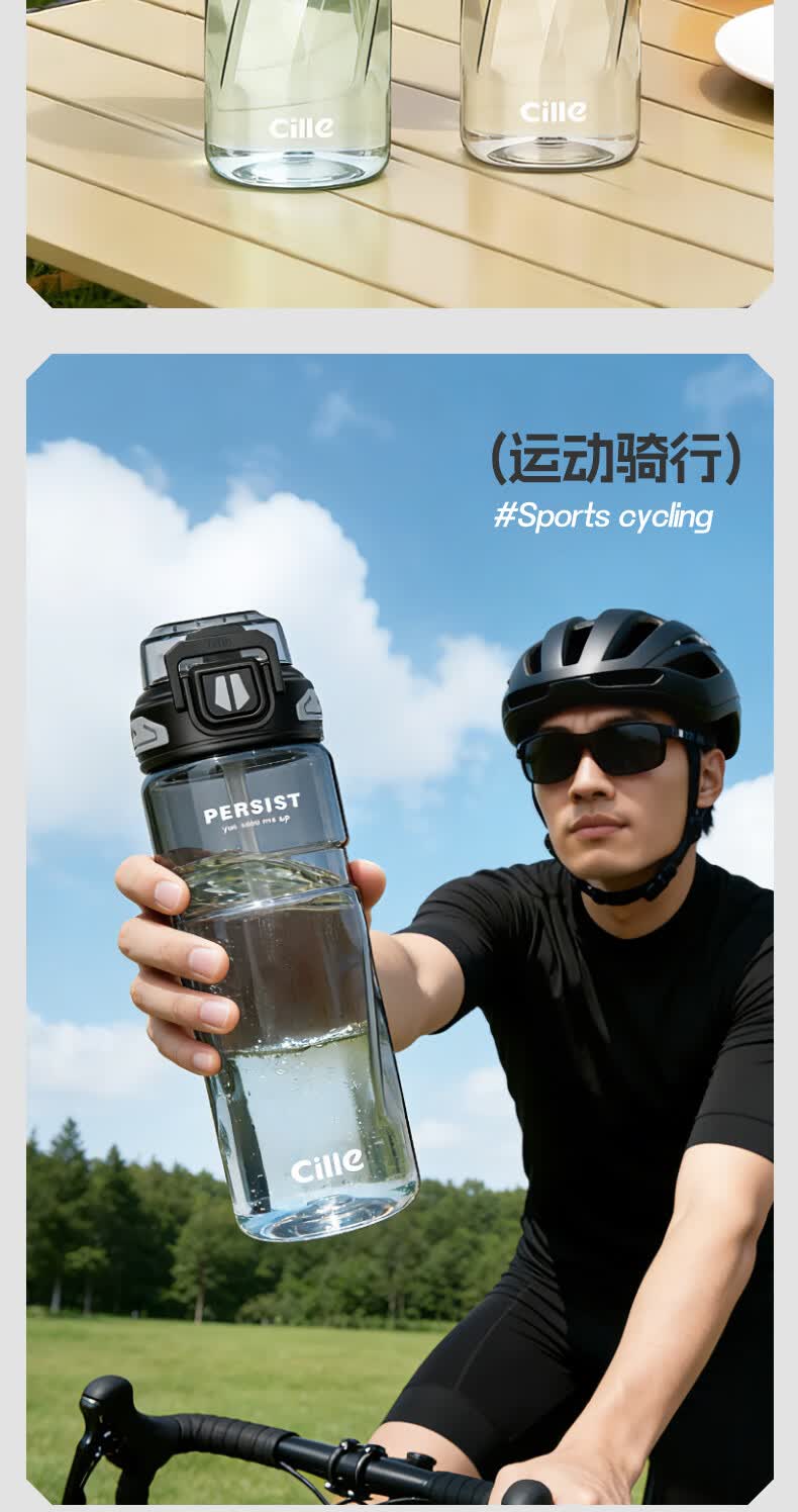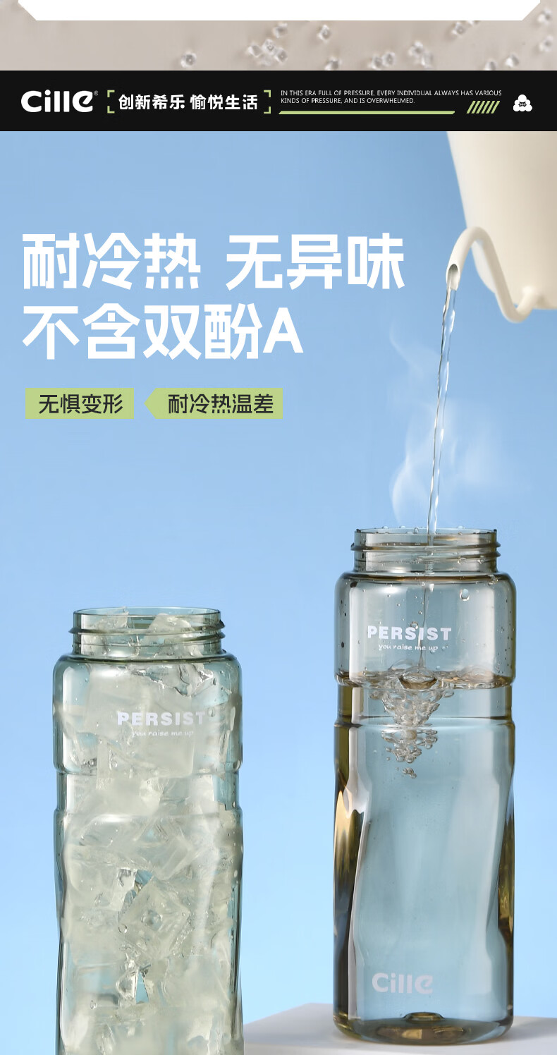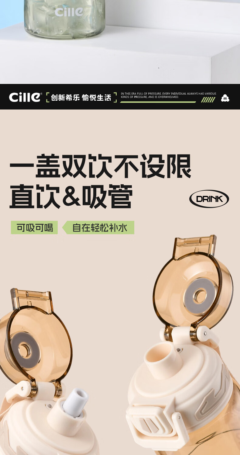 希乐(cille)运动水杯男女学生户外健身大容量Tritan耐高温加厚双饮便携杯子