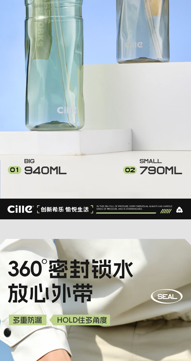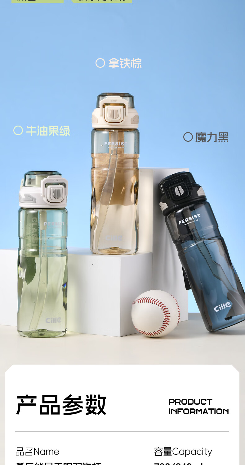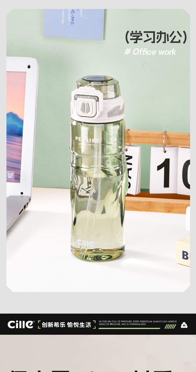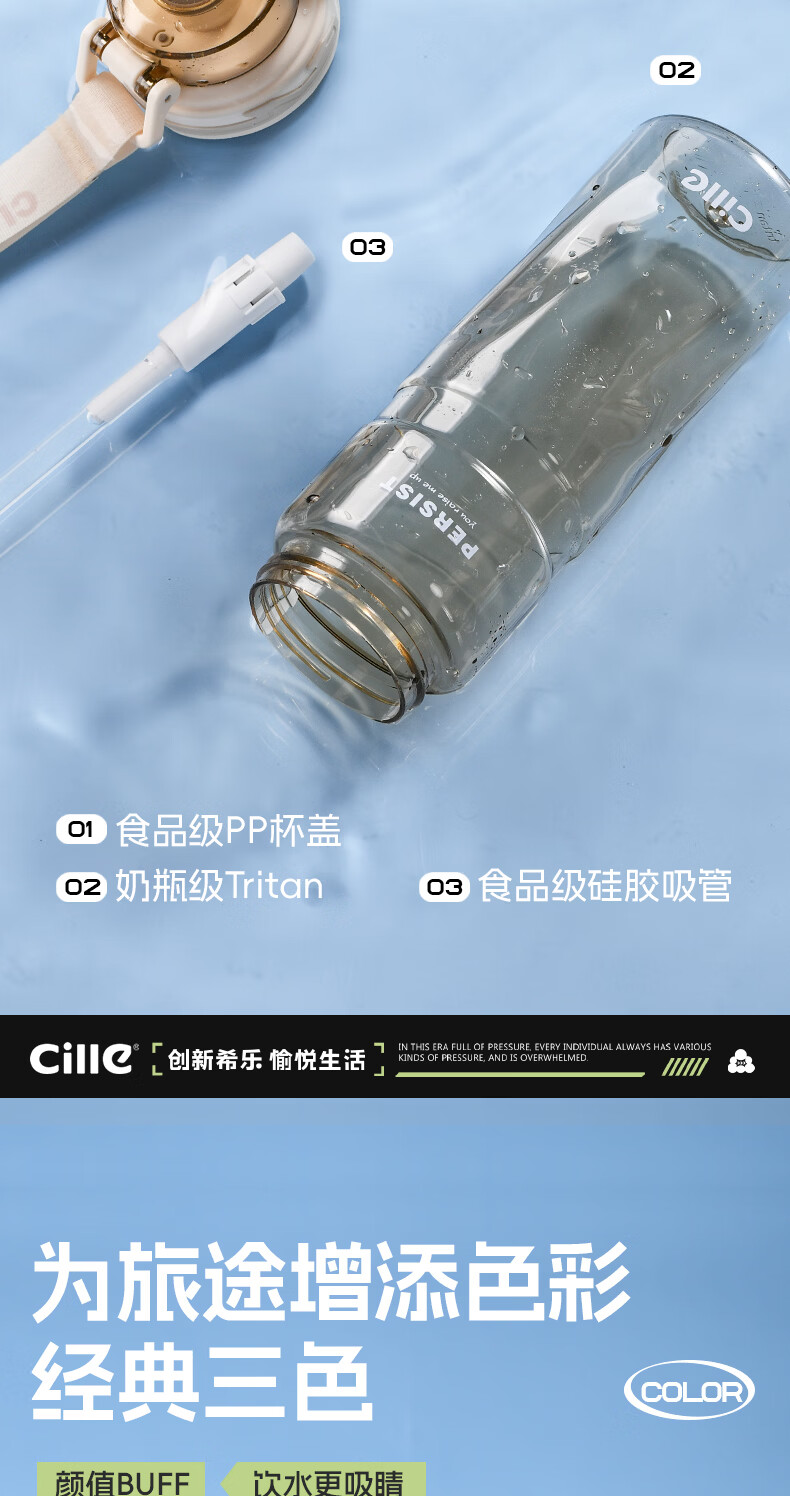 希乐(cille)运动水杯男女学生户外健身大容量Tritan耐高温加厚双饮便携杯子
