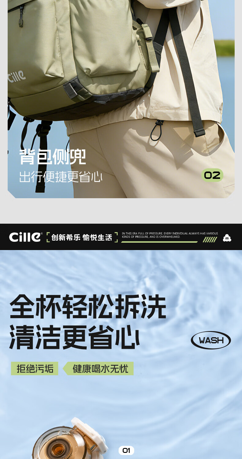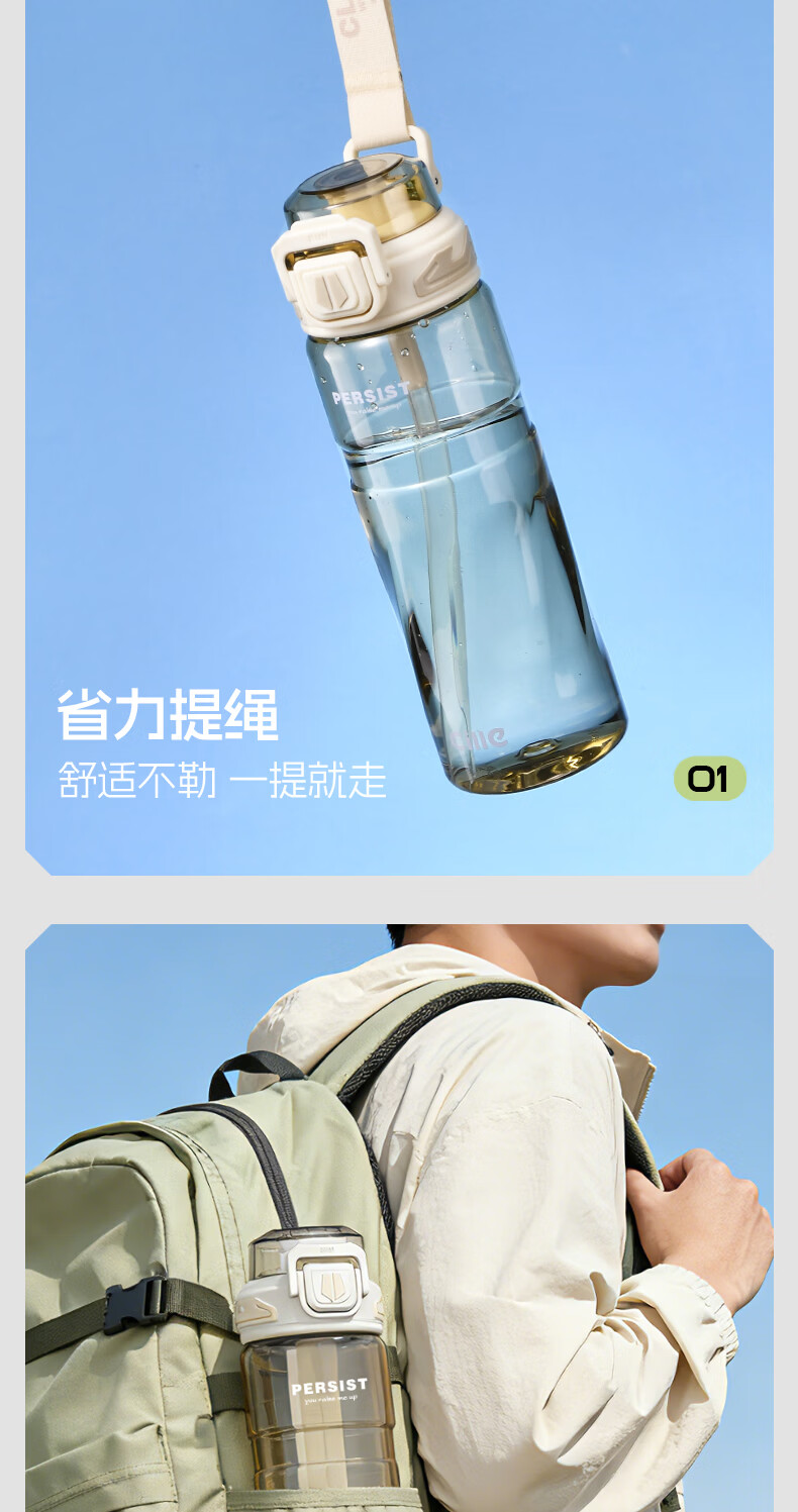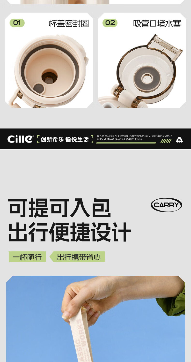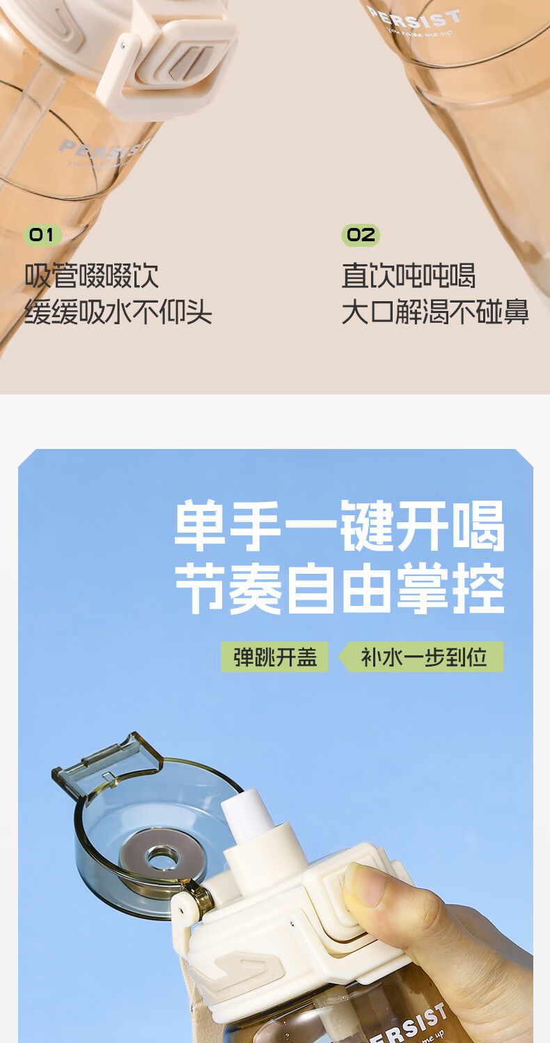 希乐(cille)运动水杯男女学生户外健身大容量Tritan耐高温加厚双饮便携杯子