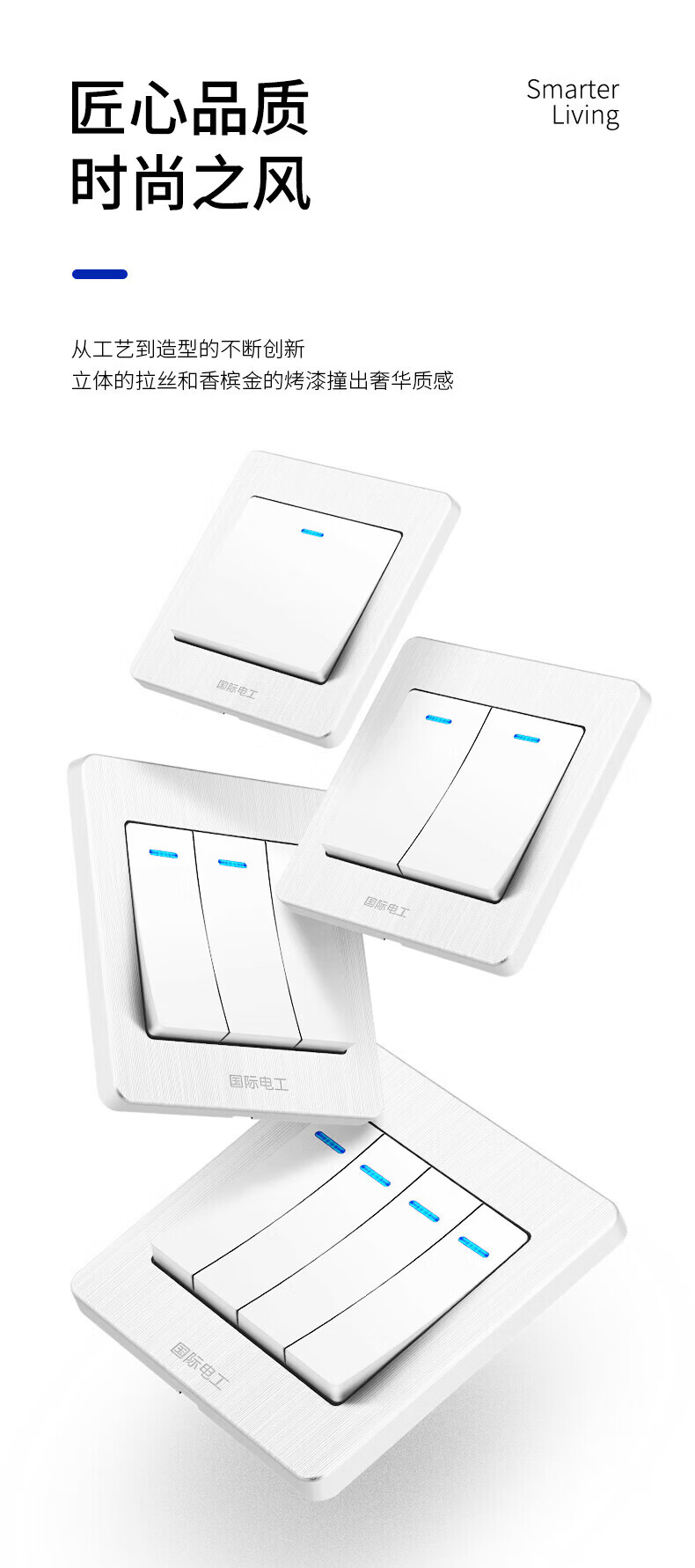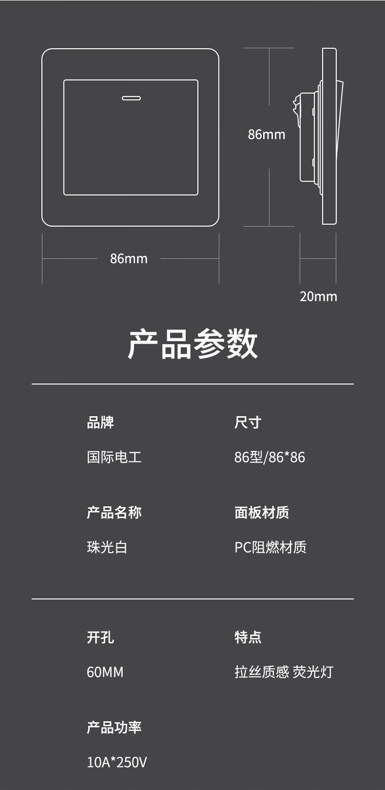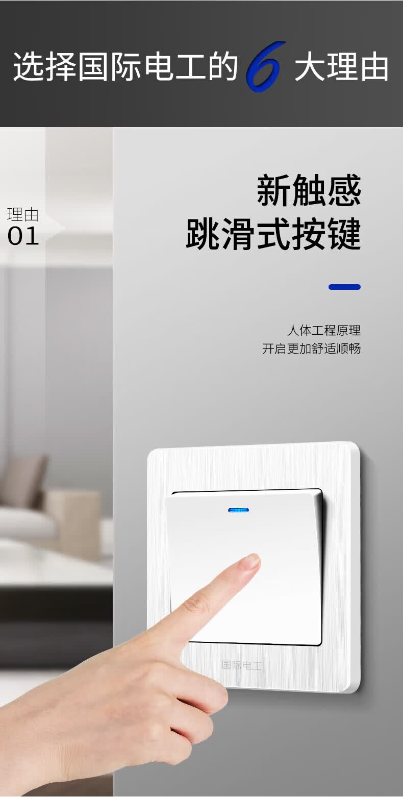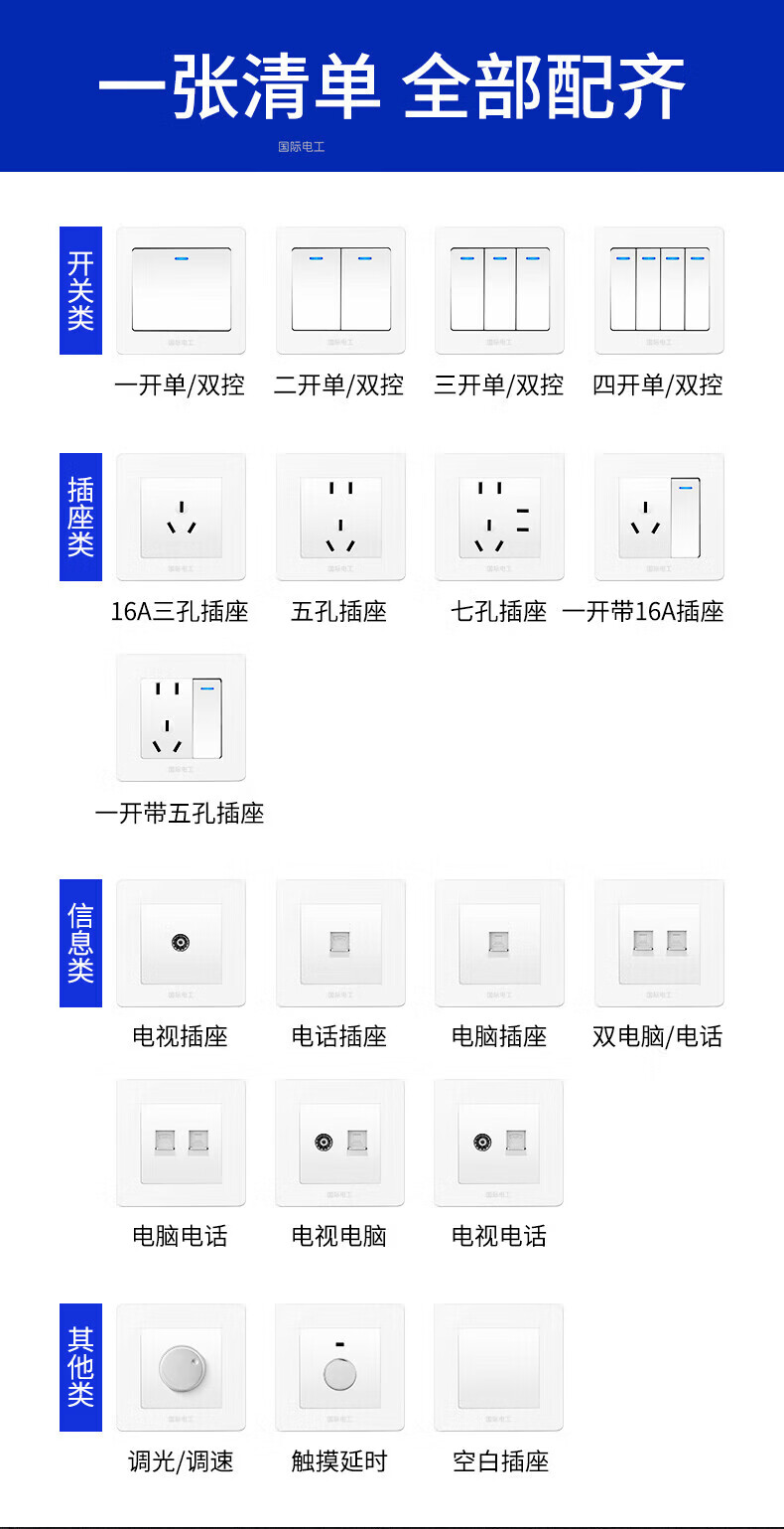 国际电工(FDD)86型开关插座全屋套装超薄面板家用墙壁暗装电源单双控五孔插座 一开单控