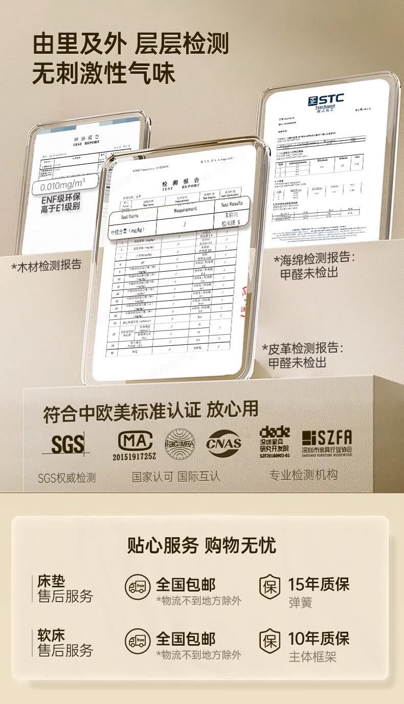 全友家居奶油风茉伊真皮床轻奢高级感2026年新款头层牛皮软包靠背床 【猫抓皮 | 米白 | 高脚】 1.2米x2米 床+床头柜*2+床垫