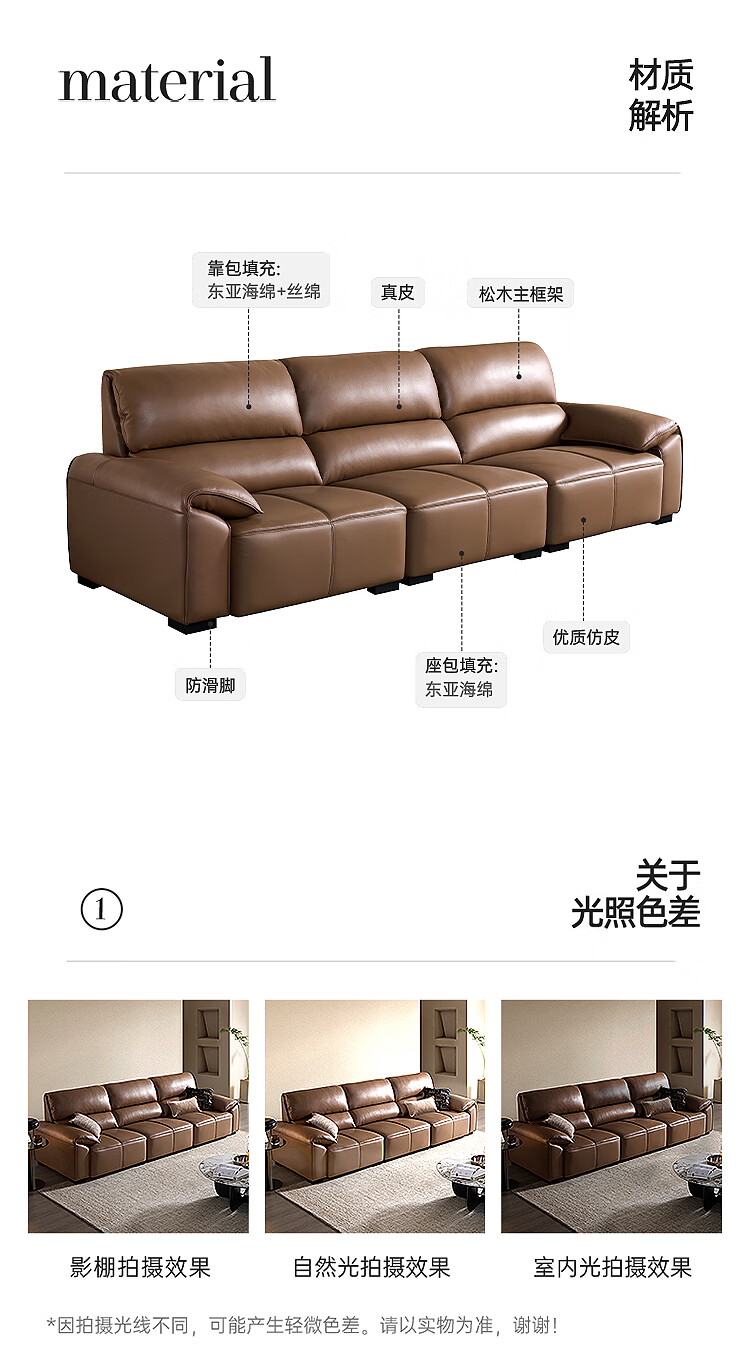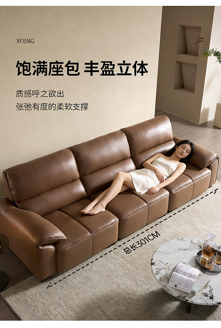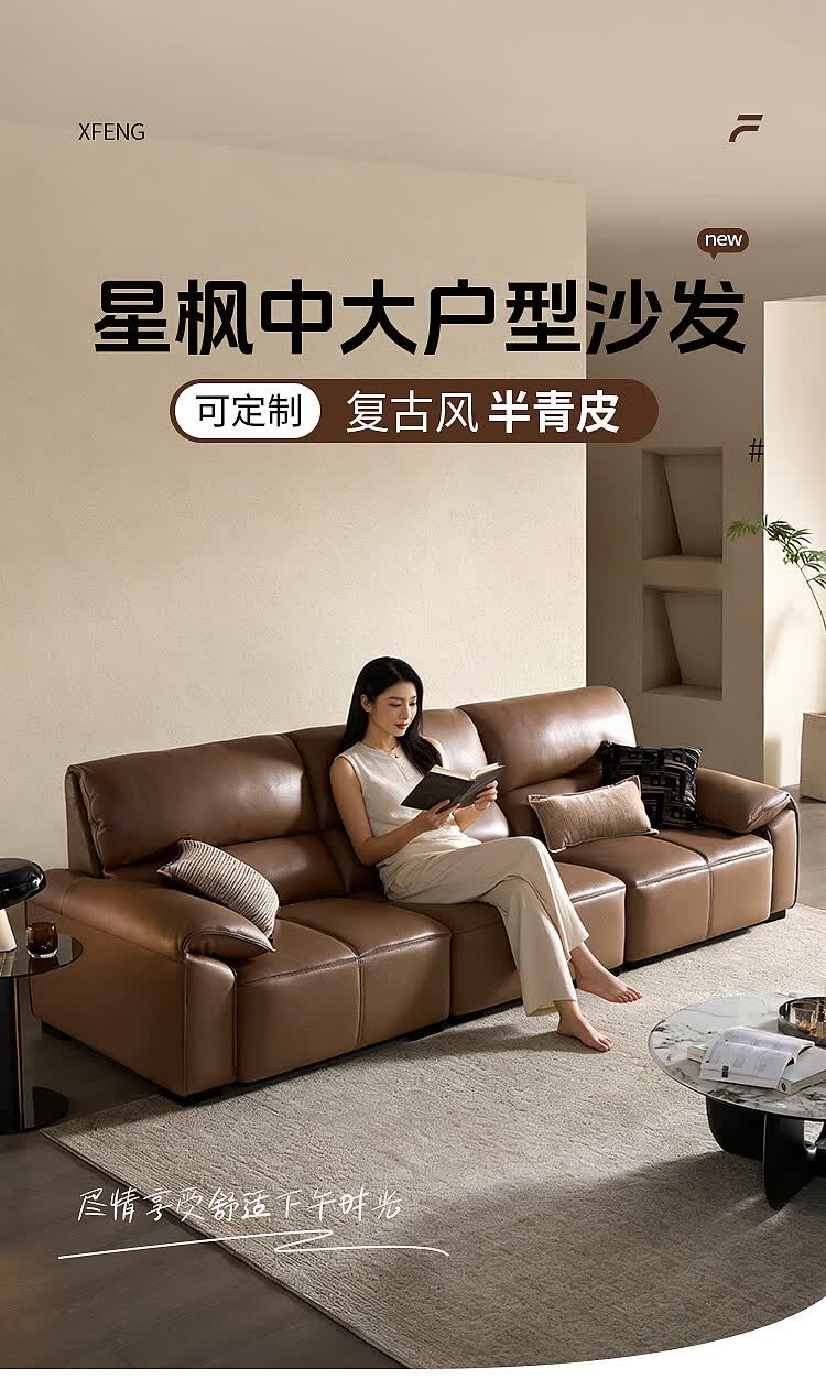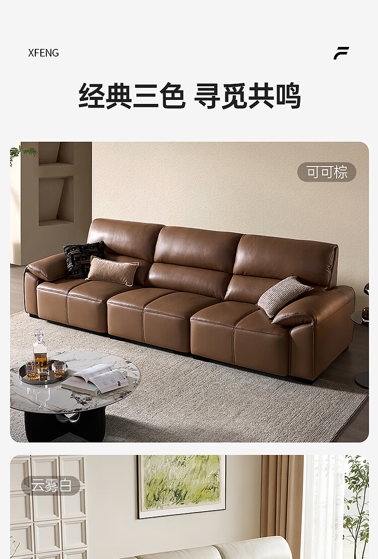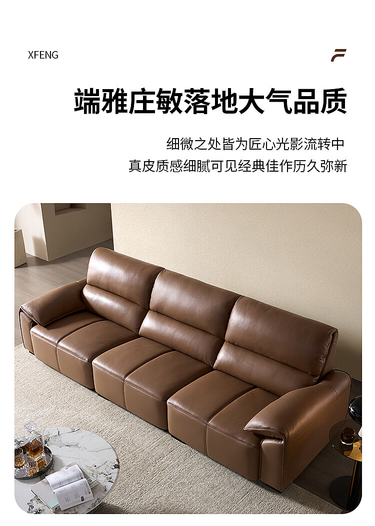 CBD家居半青真皮沙发中大户型复古风直排沙发可定制星枫 (可可棕) 三人位(3.01M)