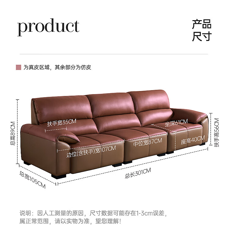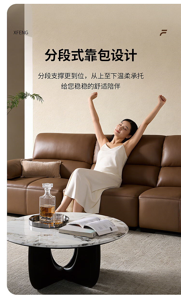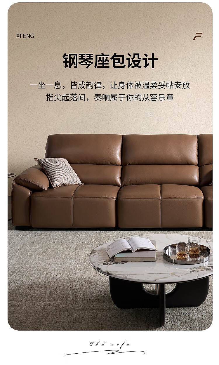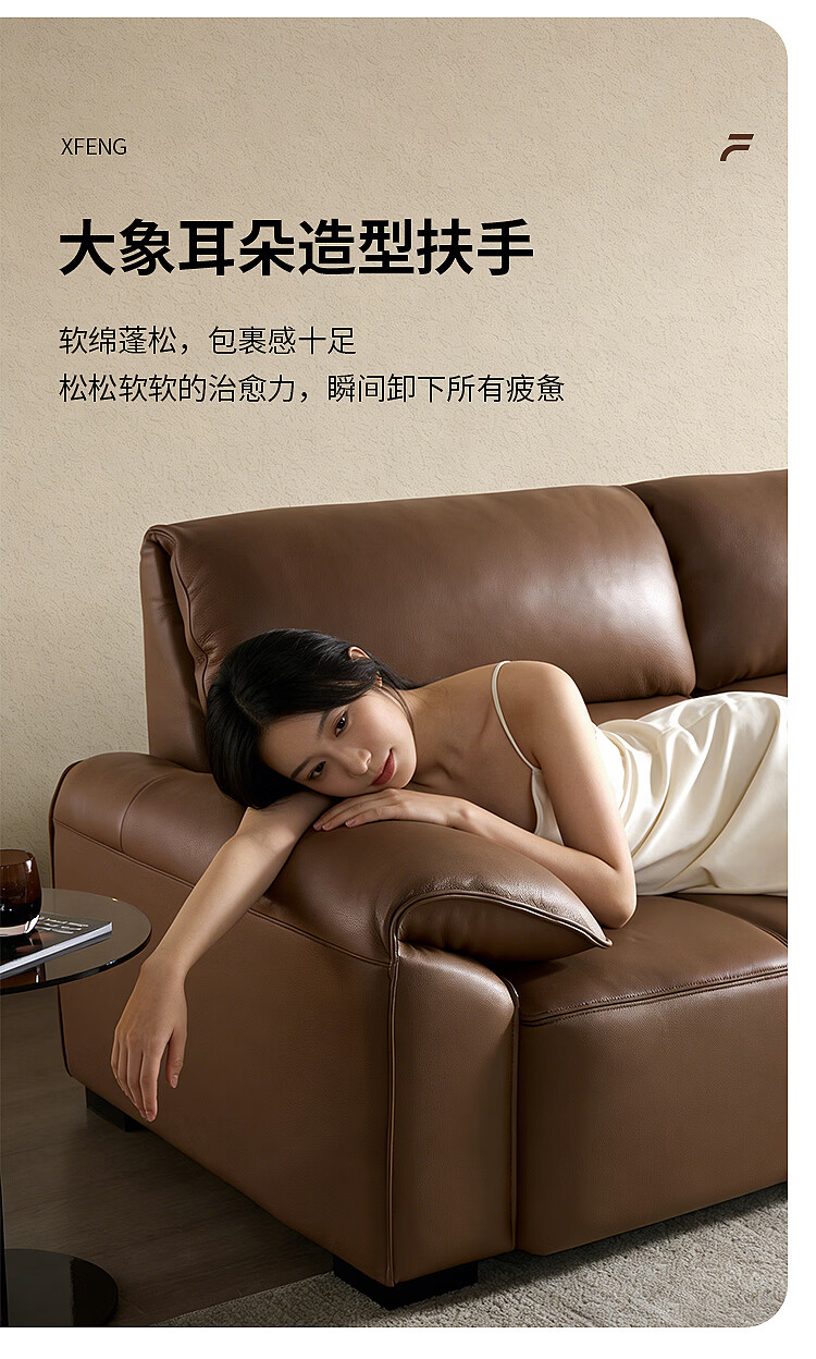 CBD家居半青真皮沙发中大户型复古风直排沙发可定制星枫 (可可棕) 三人位(3.01M)