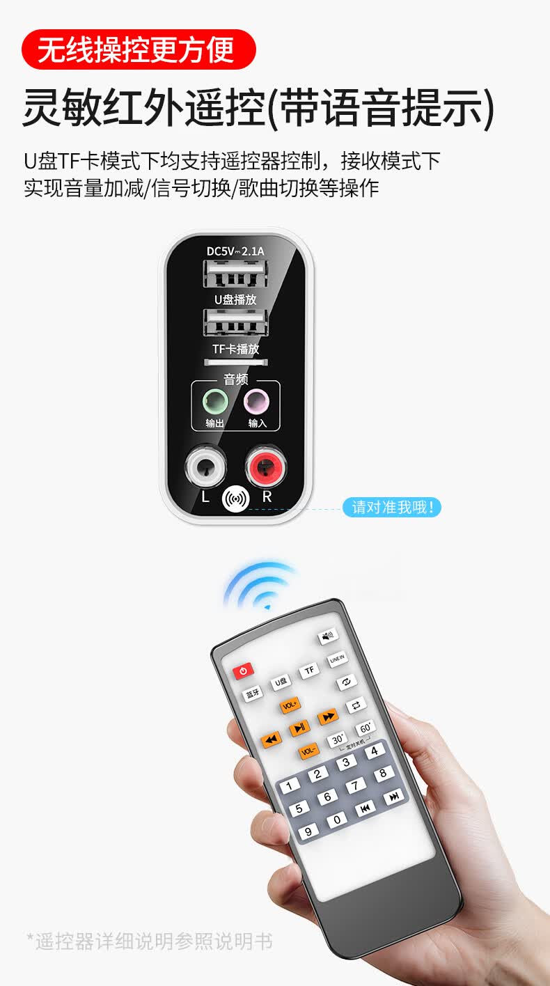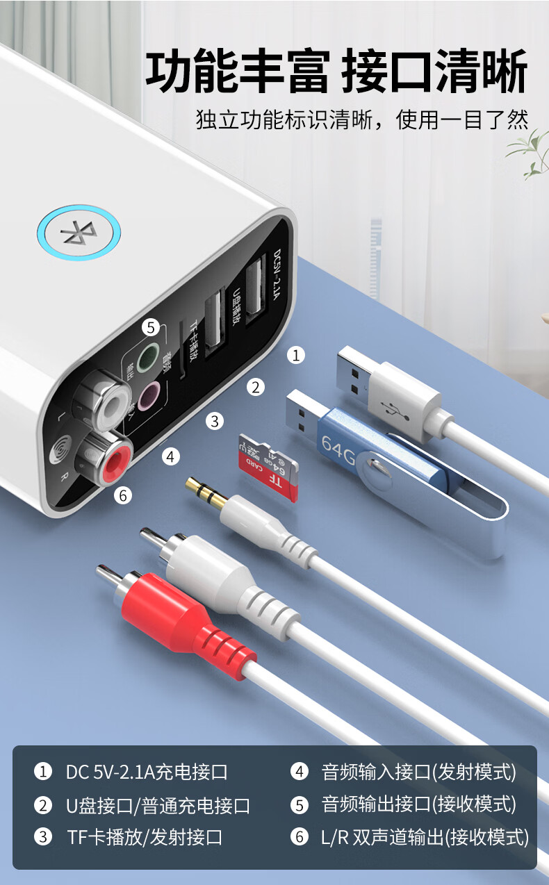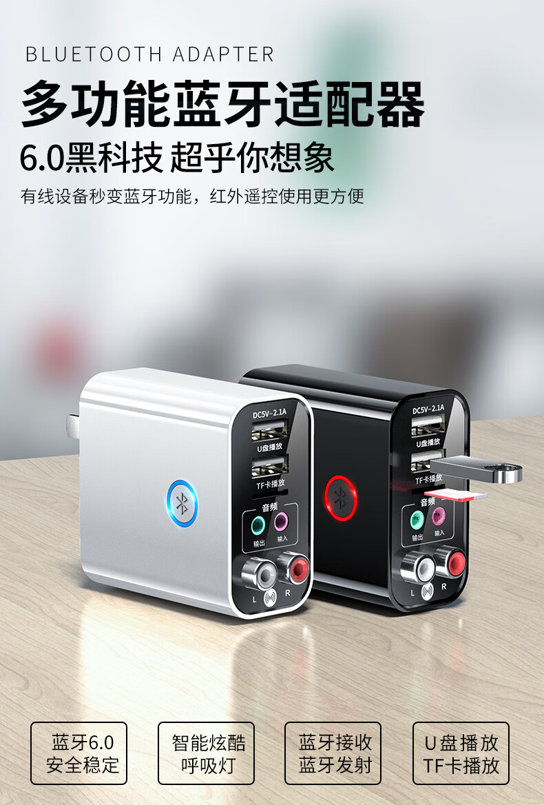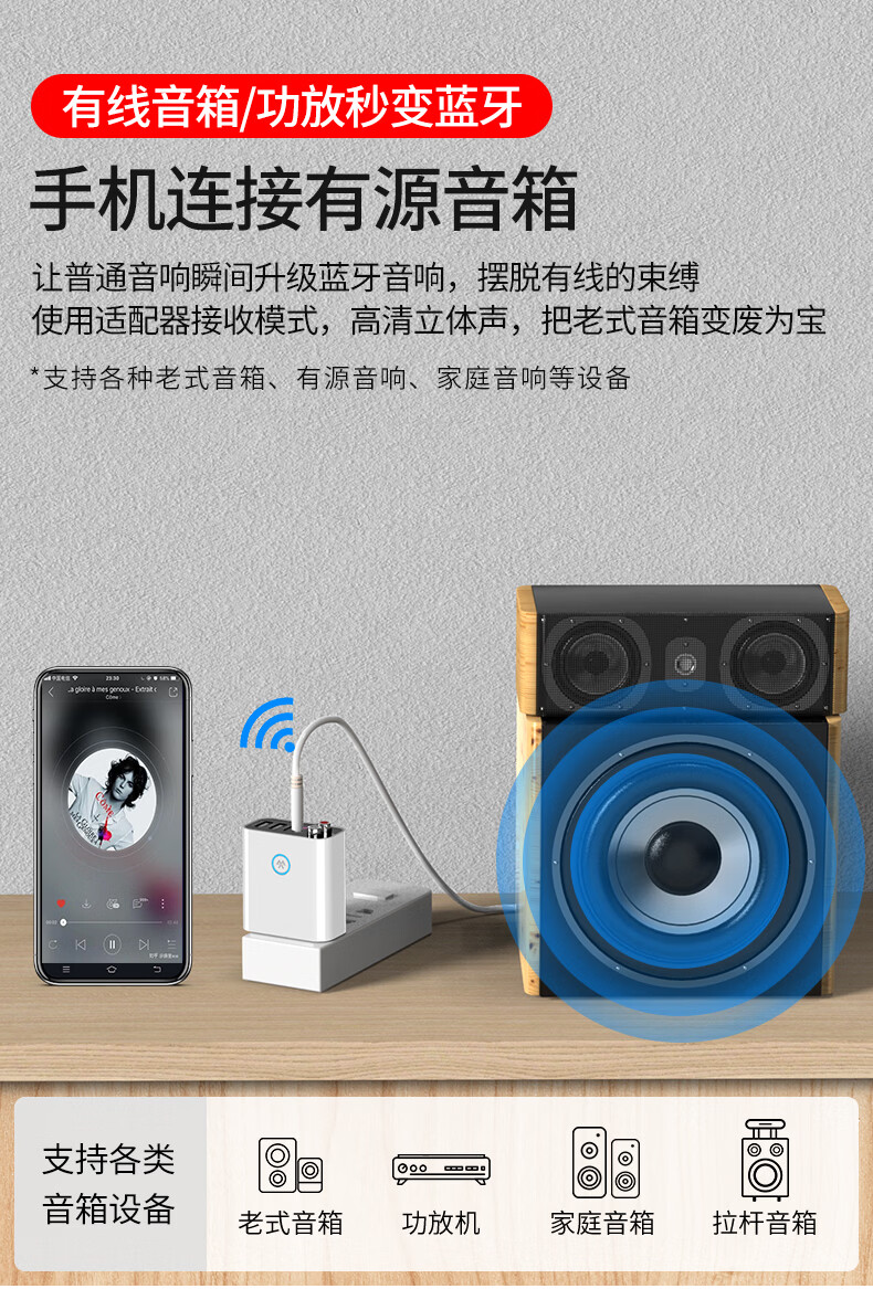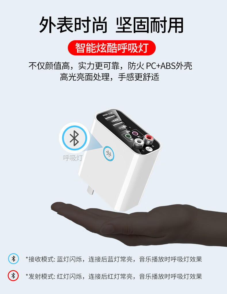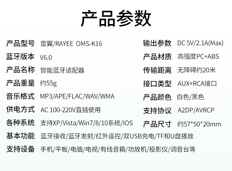 雷翼(RAYEE)蓝牙接收器5.3适配器转老音箱响aux接功放机无损U盘立体声播放无线接电脑电视音频发射器 时尚白【送音频线套装+遥控器】