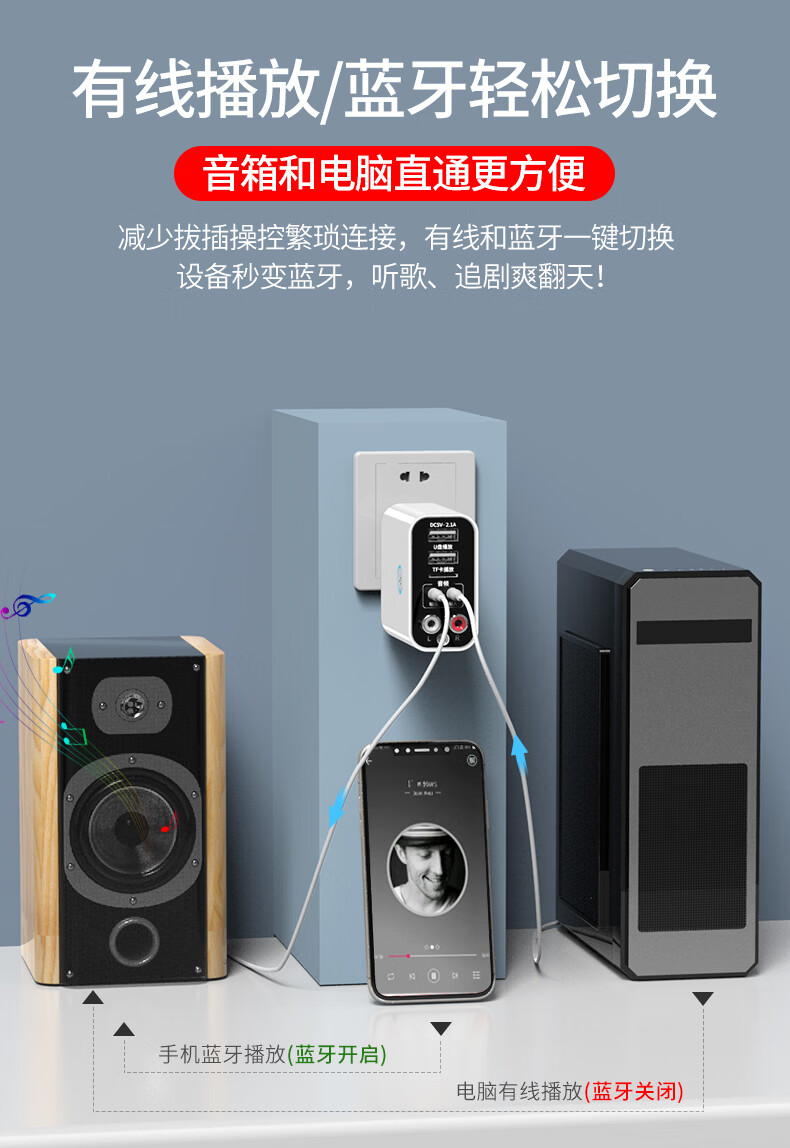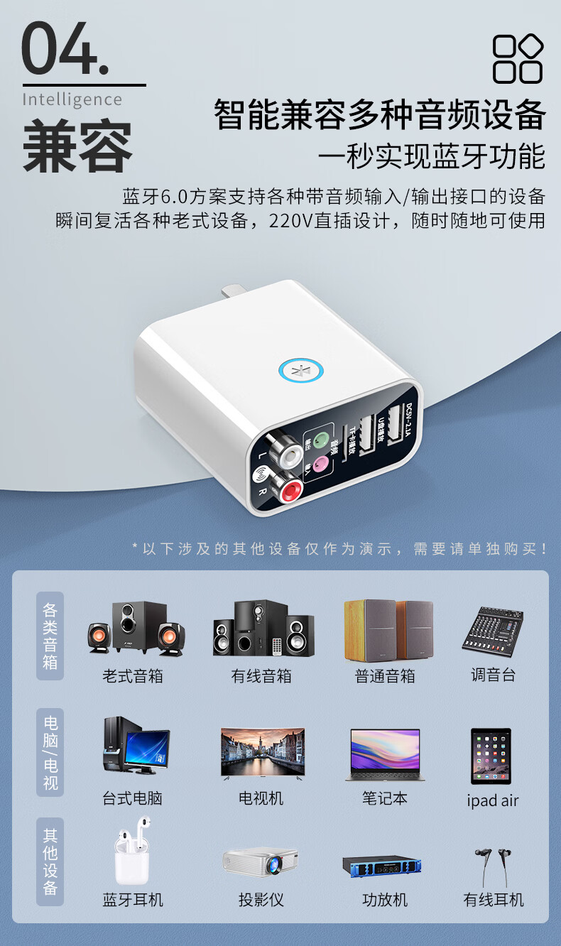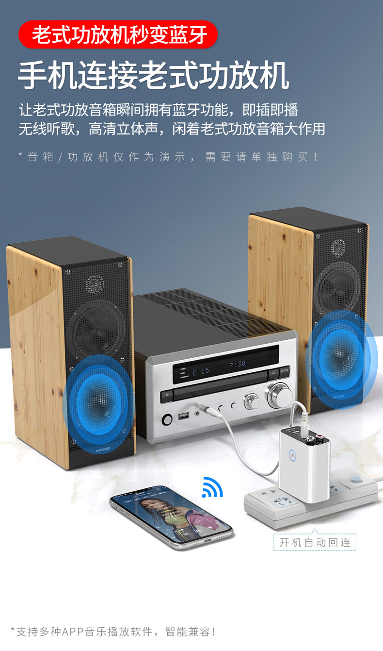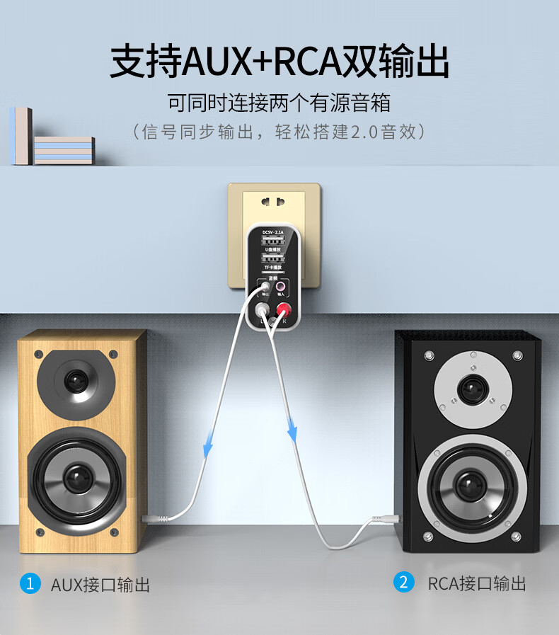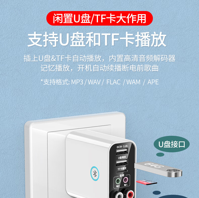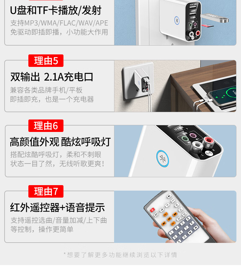 雷翼(RAYEE)蓝牙接收器5.3适配器转老音箱响aux接功放机无损U盘立体声播放无线接电脑电视音频发射器 时尚白【送音频线套装+遥控器】
