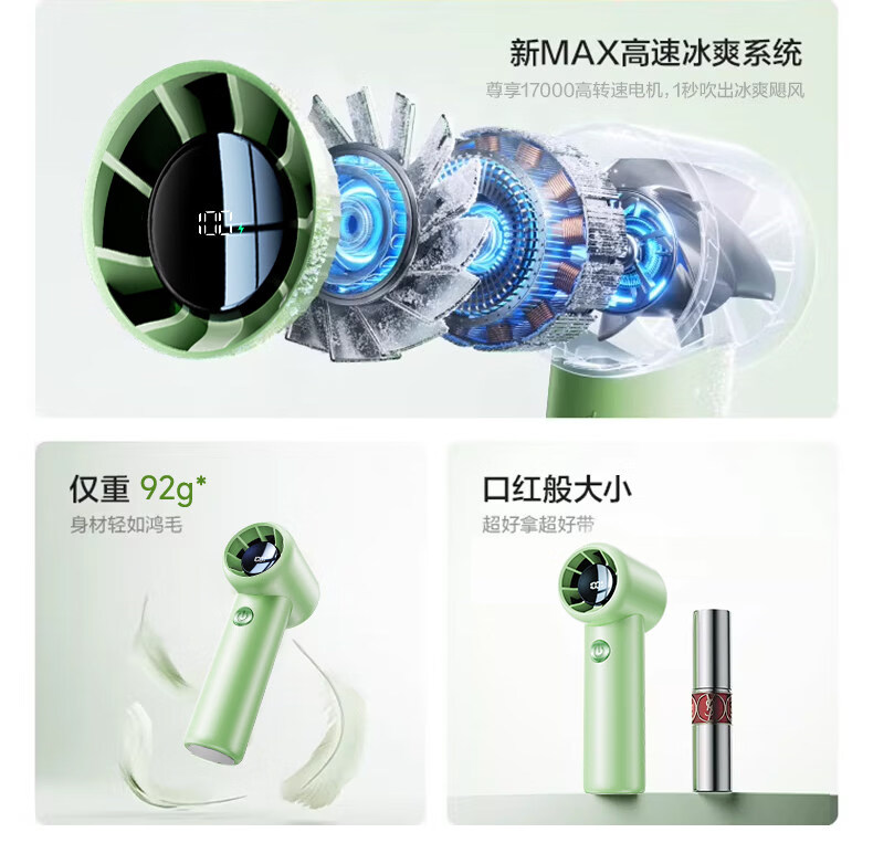 奢姿小风扇手持小风炮便携式迷你涡轮电风扇高速节能充电小型随身手拿户外轻音学生风宝散热电扇大风力 【粉色】超高速迷你小冰扇丨秒降6℃ 1200mAh