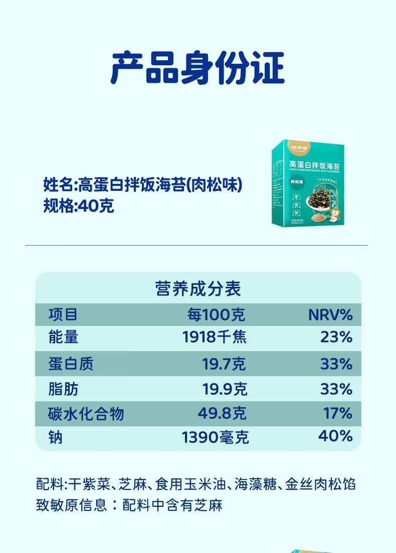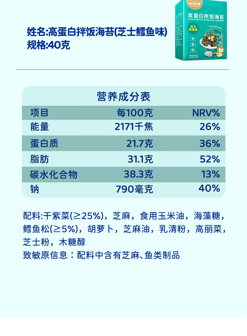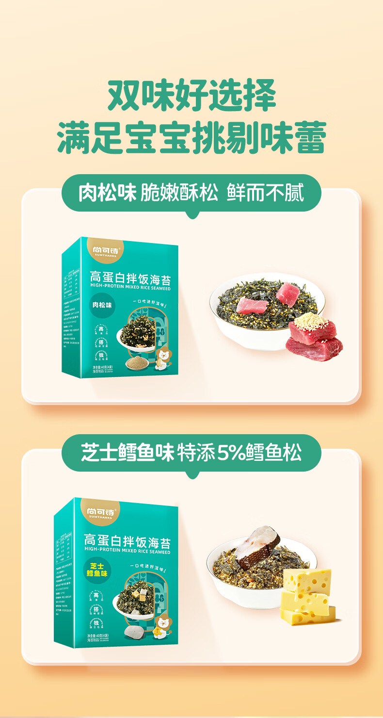 尚可诗高蛋白拌饭海苔碎 肉松味芝士鳕鱼味宝宝辅食即食下饭料40g/盒 高蛋白拌饭海苔碎(肉松+芝士鳕鱼味)*2盒