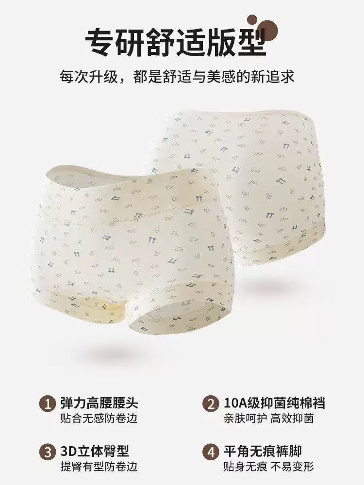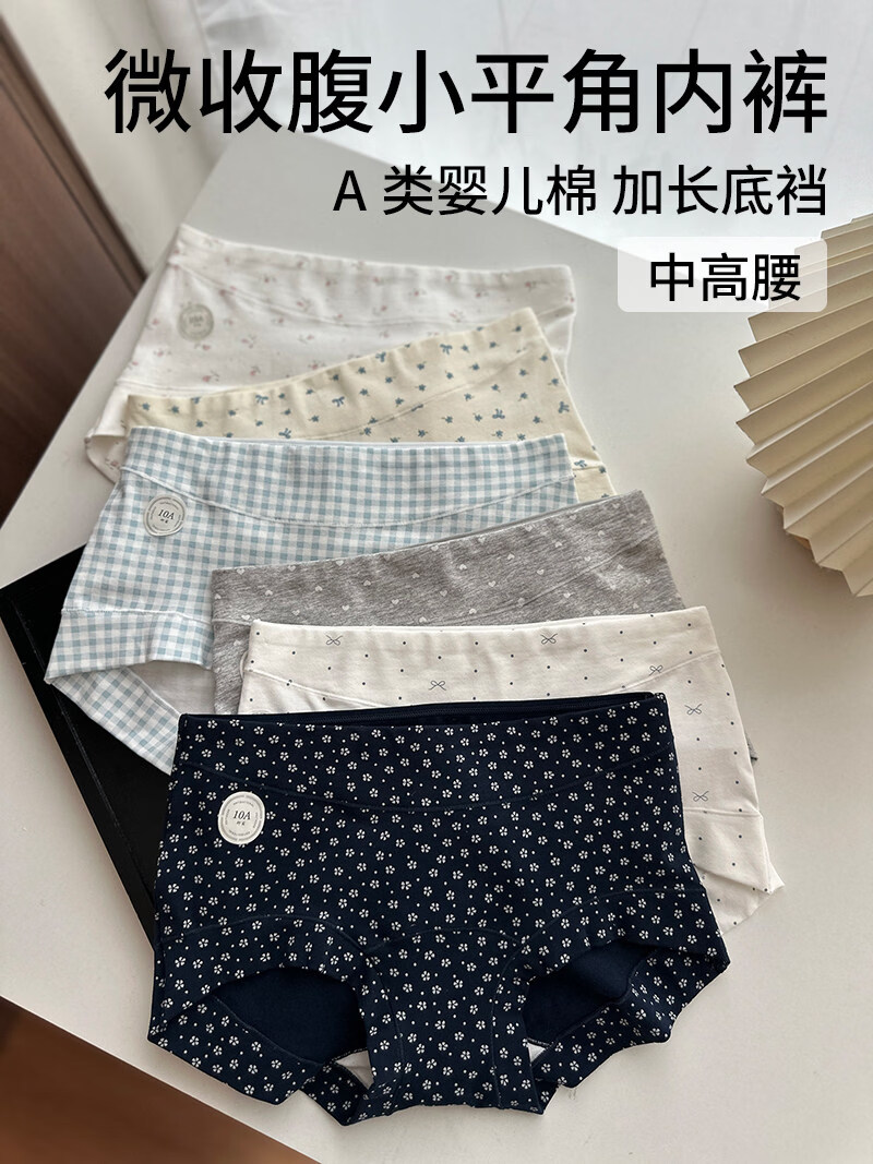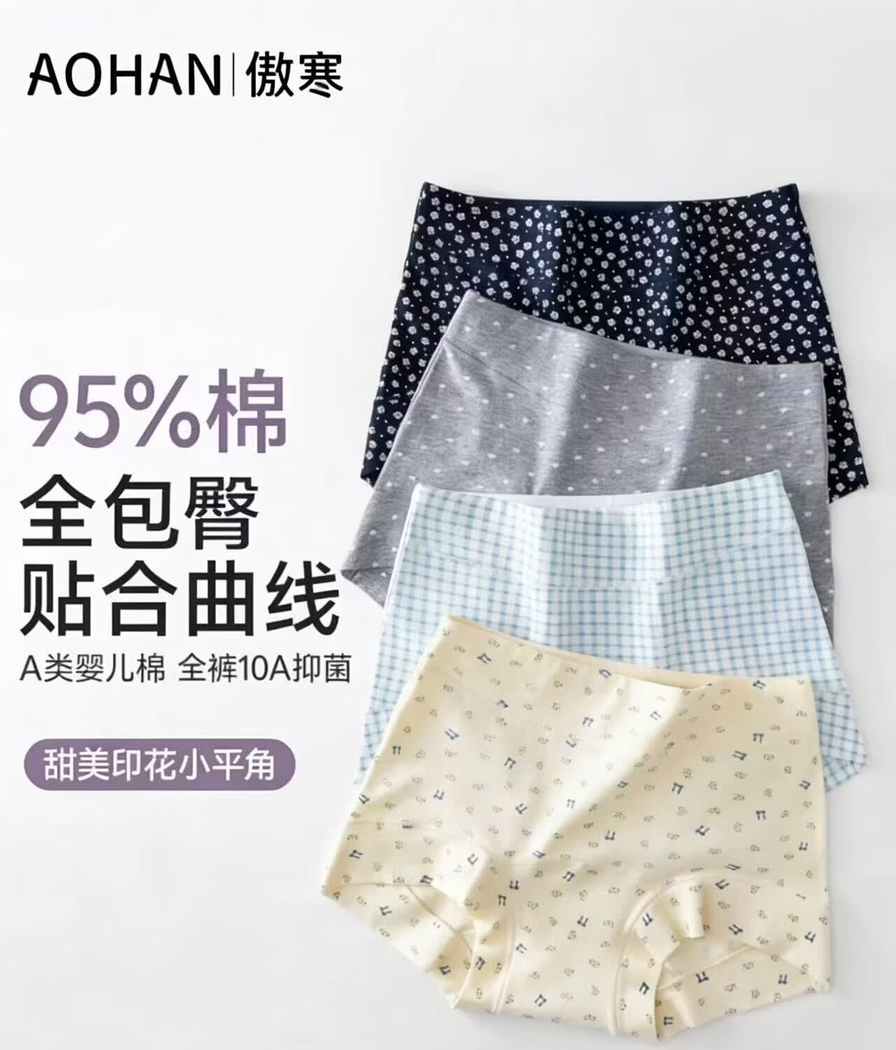 傲寒平角内裤女款纯棉2026新款10A抗菌加长裆无痕小四角裤一次性包装 浅黄蓝花+灰色爱心+本白粉花 均码 L (建议100~120斤左右)