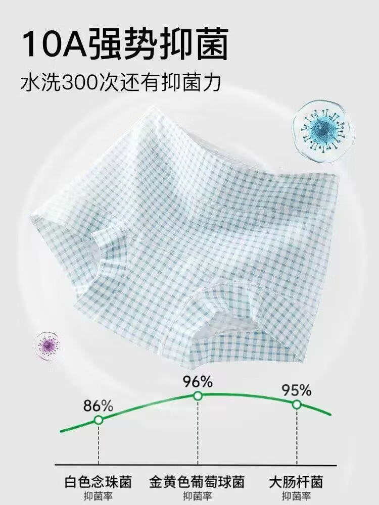 宝派内裤女新款纯棉10A抗菌纯色系带提臀三角裤透气柔软舒适女士短裤 浅绿+淡紫+白色+姜黄 【4条装】 L 【荐100-120斤】
