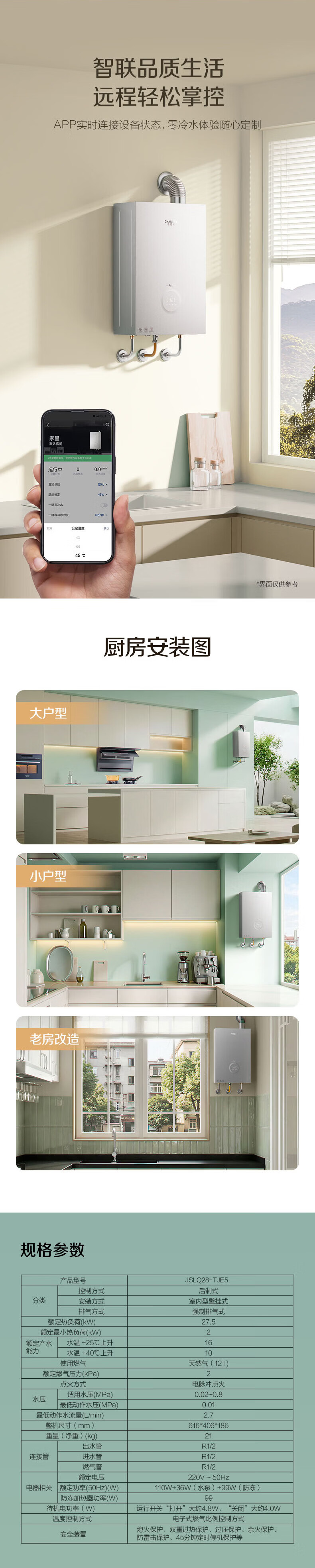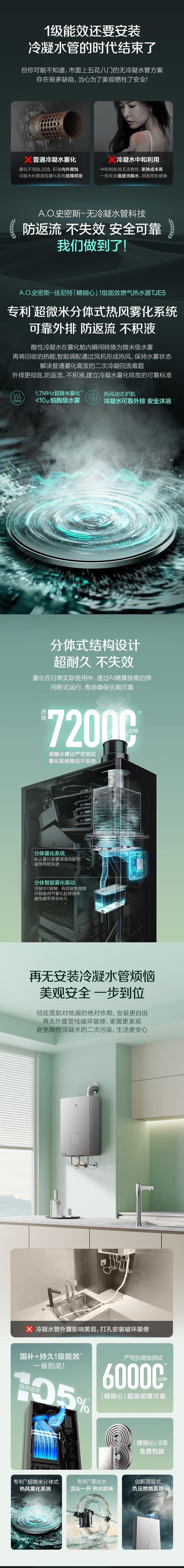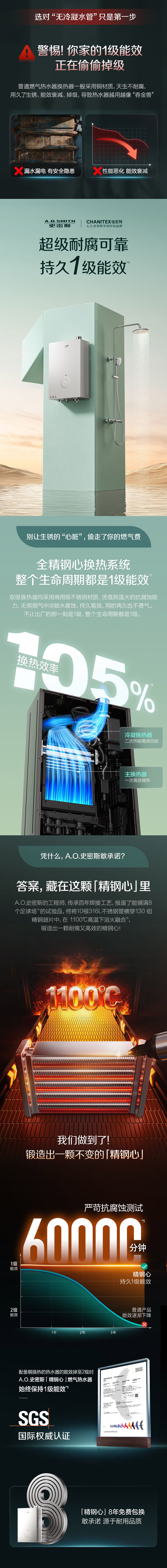 史密斯(A.O.SMITH)佳尼特 全精钢心燃气热水器 一级能效零冷水 【无冷凝水管】JSLQ28-TJE5增压大水量16升 年度新品 16L 【一级能效新品】无冷凝水管