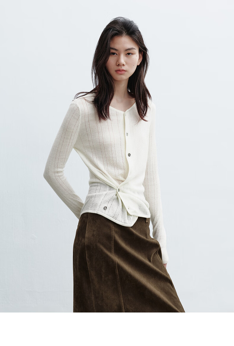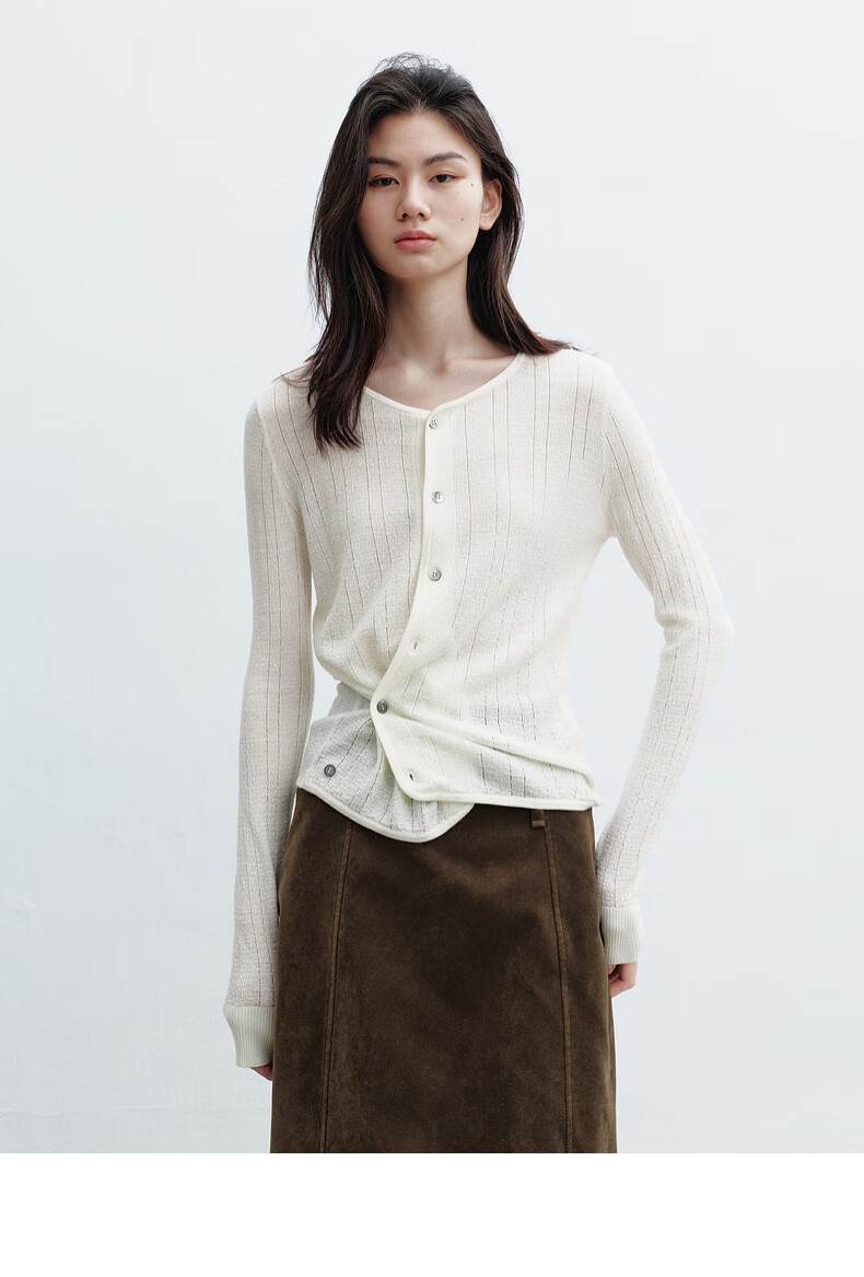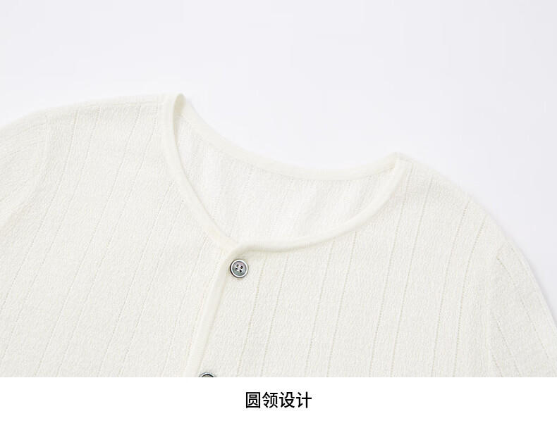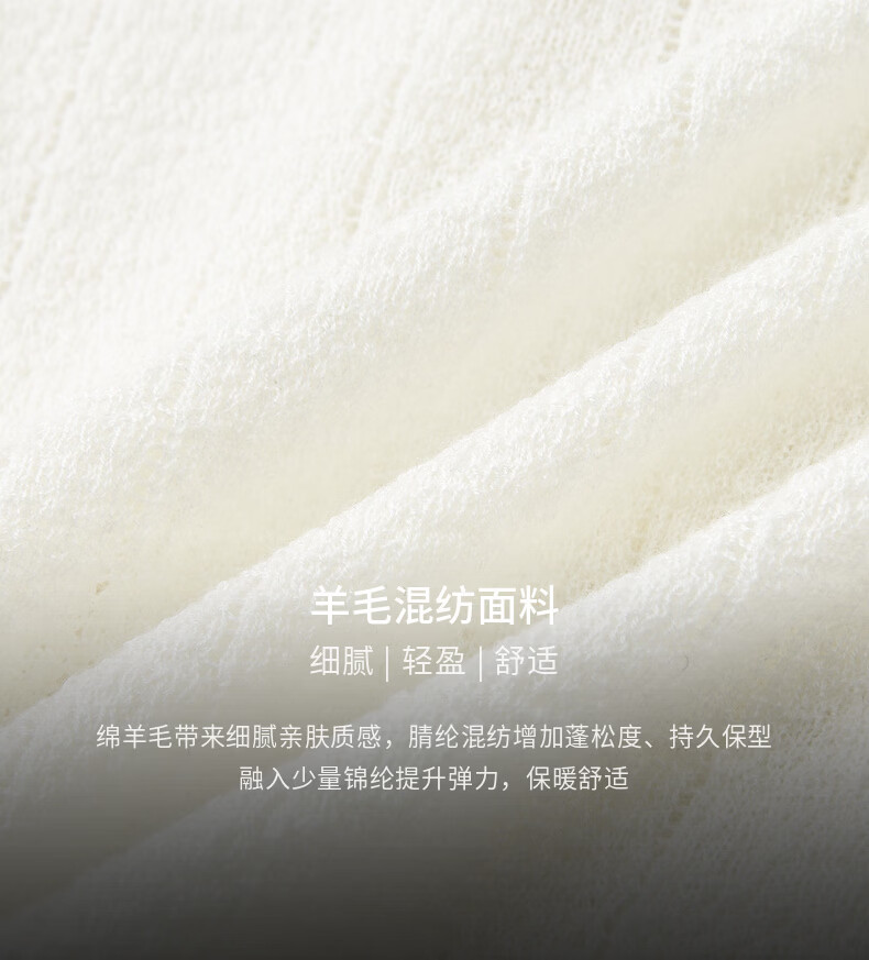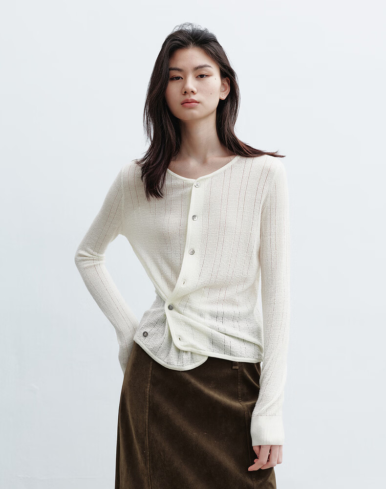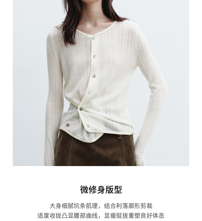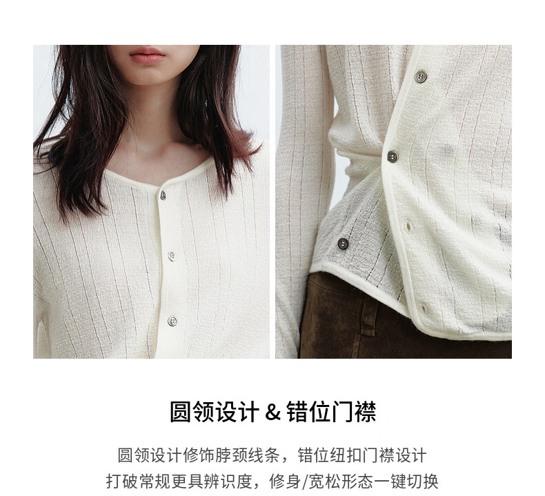 H's本白老钱风圆领针织开衫女26年春季新款设计绵羊毛修身上衣毛衣 本白 S