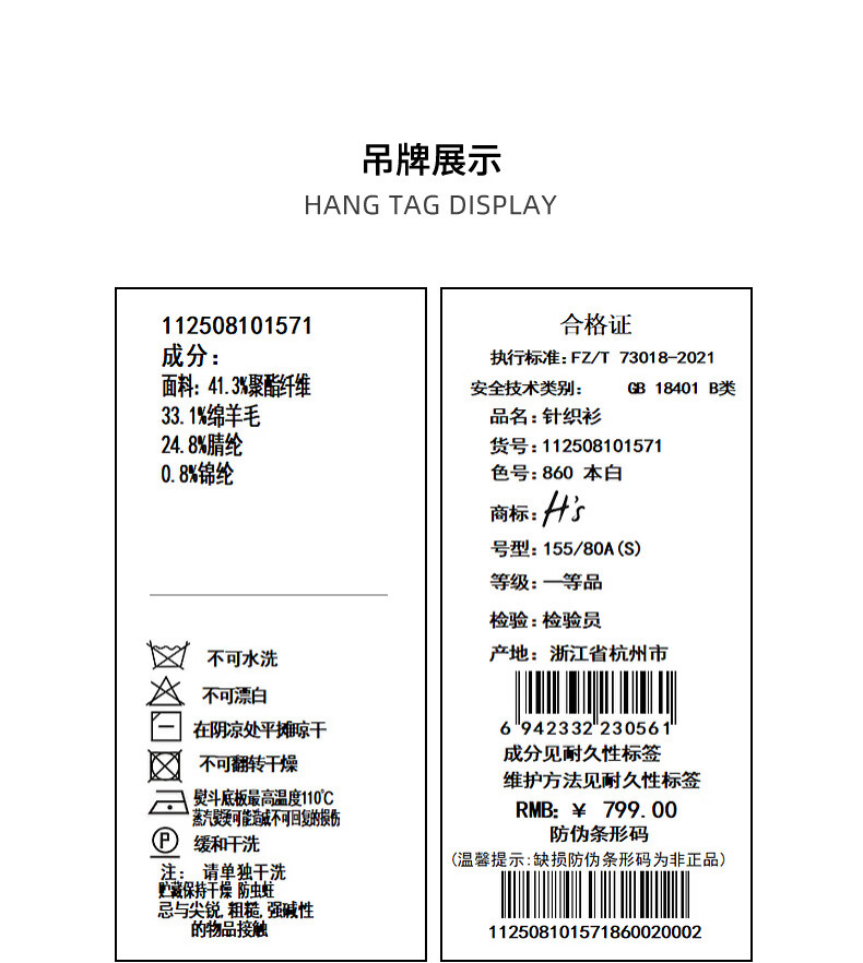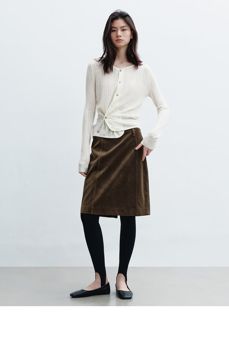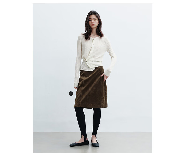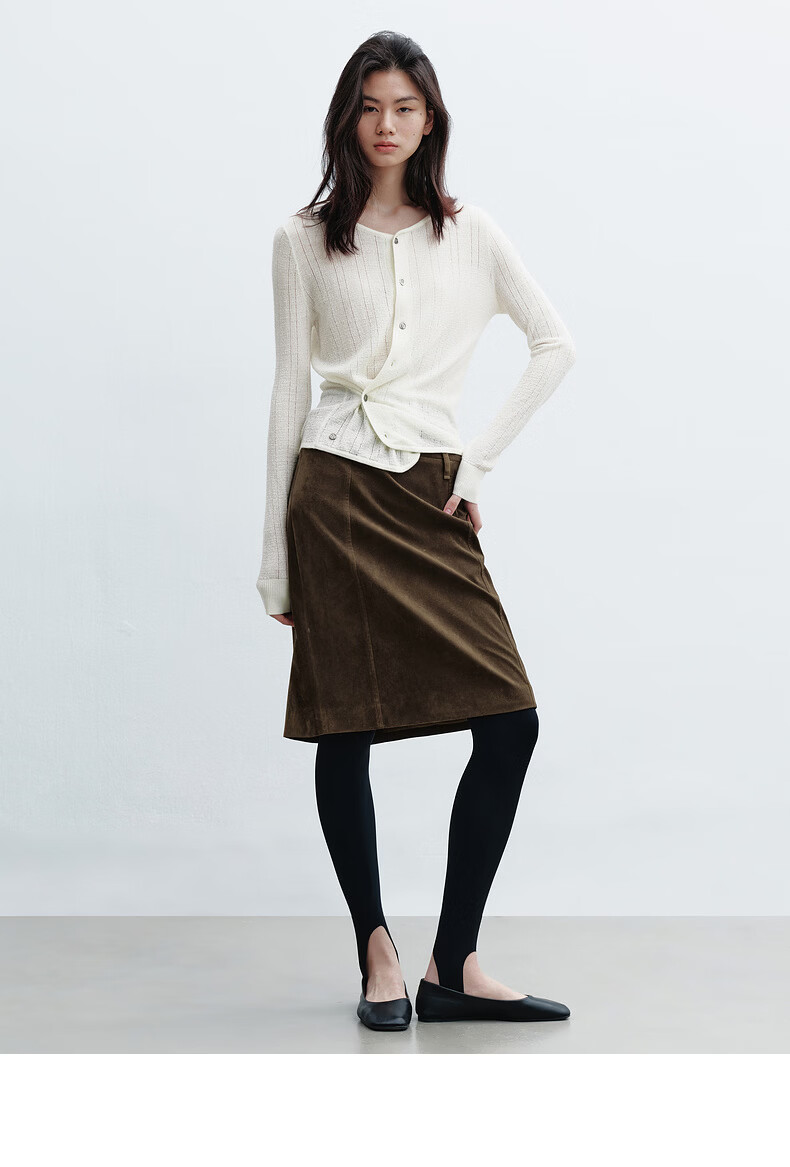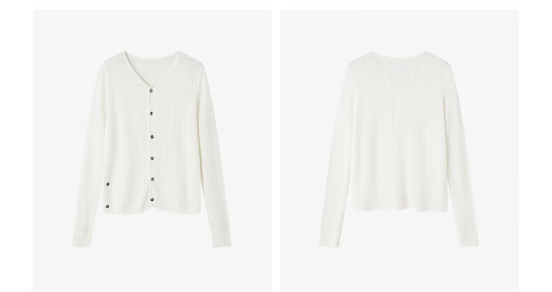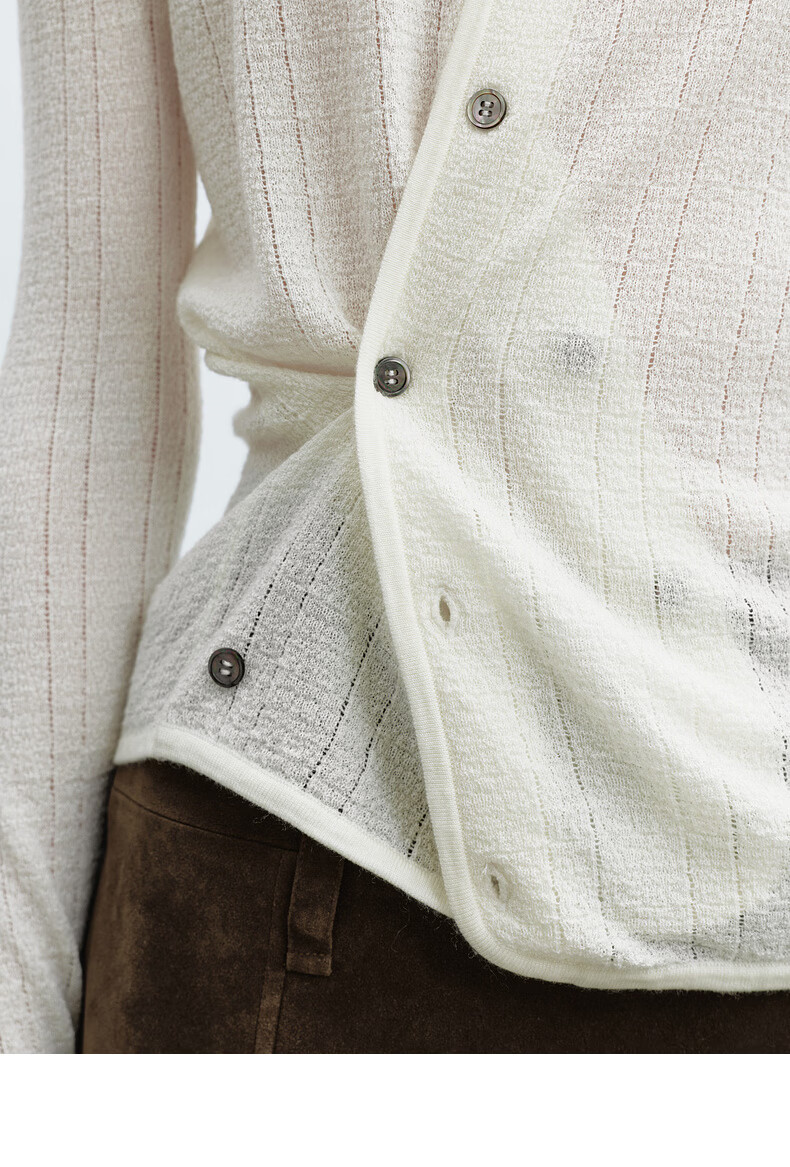 H's本白老钱风圆领针织开衫女26年春季新款设计绵羊毛修身上衣毛衣 本白 S