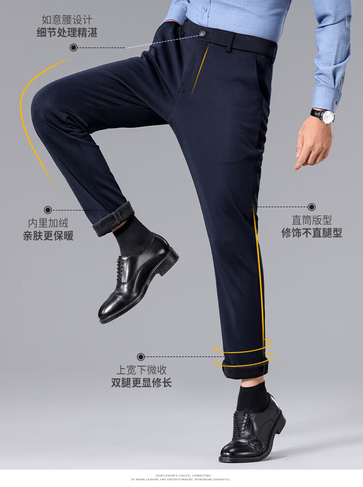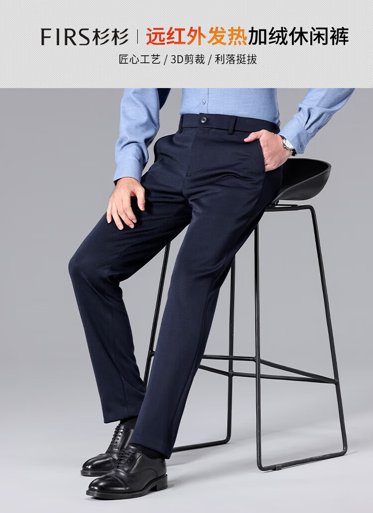 杉杉(FIRS)【远红外发热】新年西裤男加厚加绒保暖直筒四面弹力耐磨休闲长裤 黑色 30 170/76A(30)
