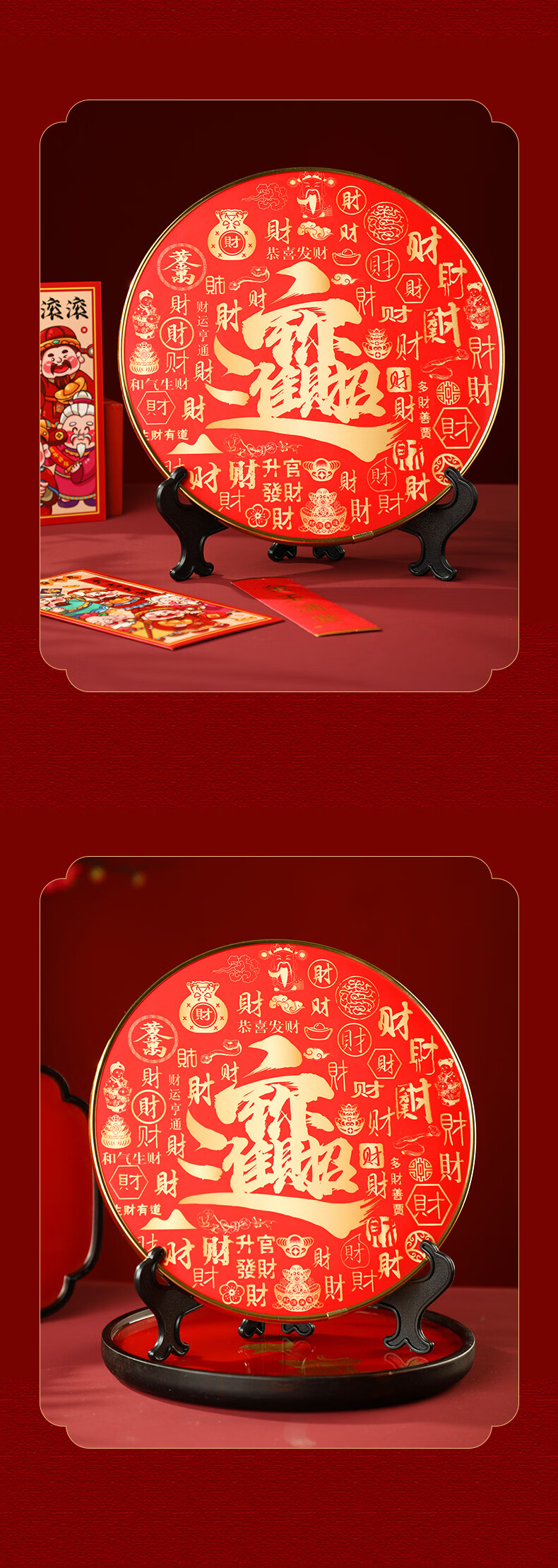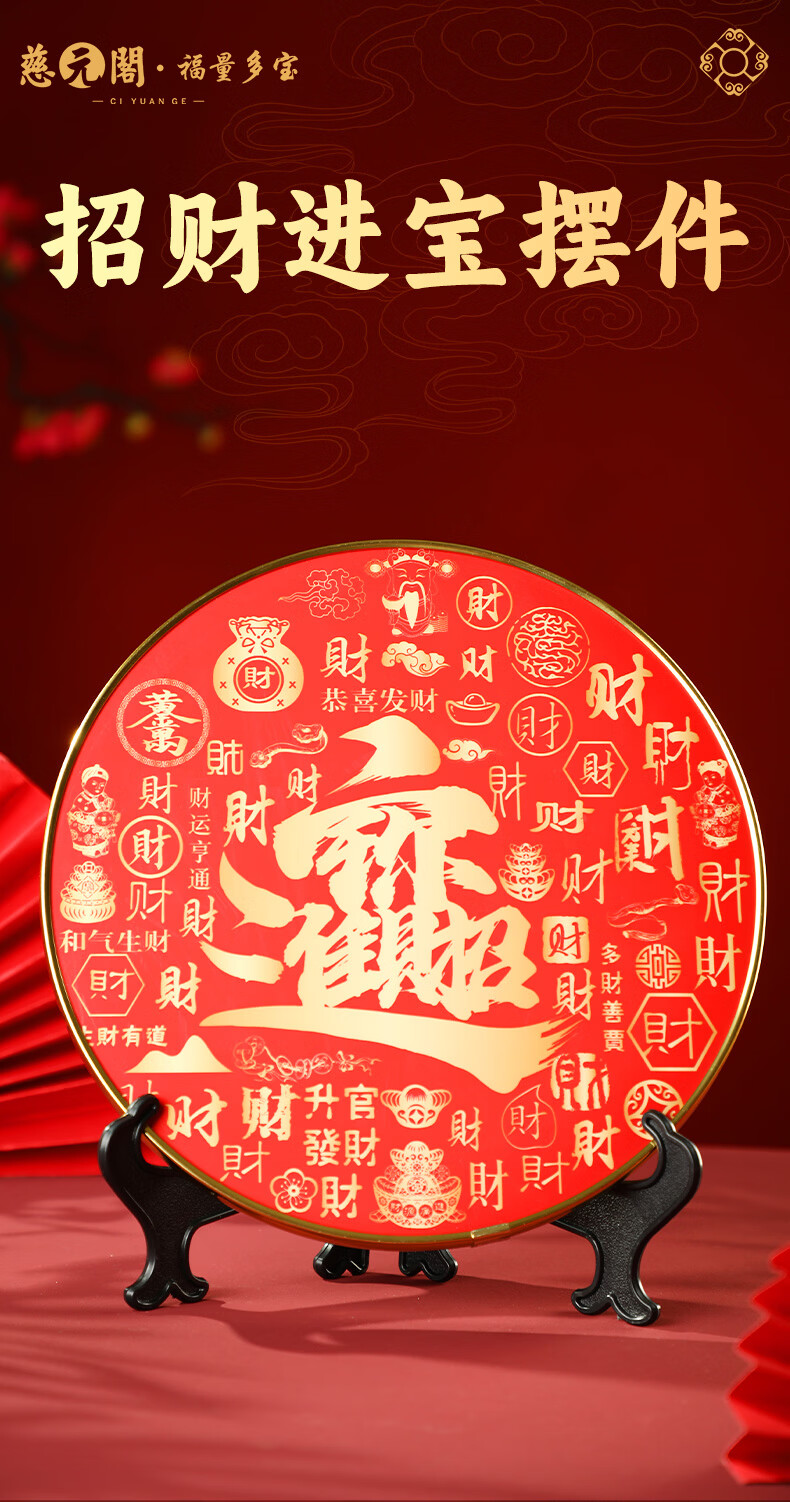 慈元阁新年招财进宝桌面摆件家居玄关电视柜公司前台开业招财装饰摆件 招财进宝摆件(带底托)