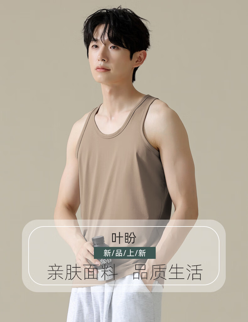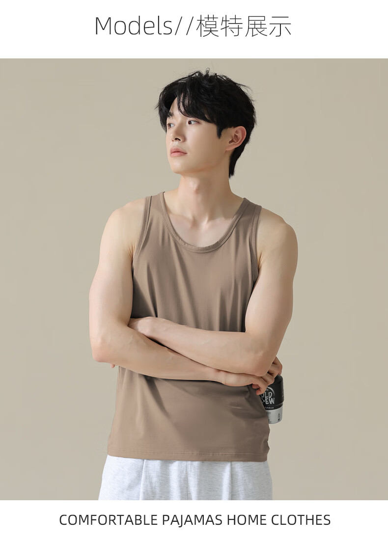 叶盼(yepan)【凉感】睡衣男夏季背心单件无袖薄款夏天莫代尔男士家居服可外穿 11001-棕灰 L (170) :建议100-120斤穿着