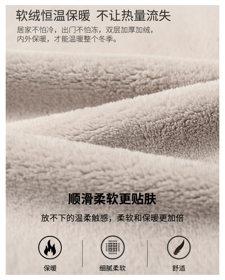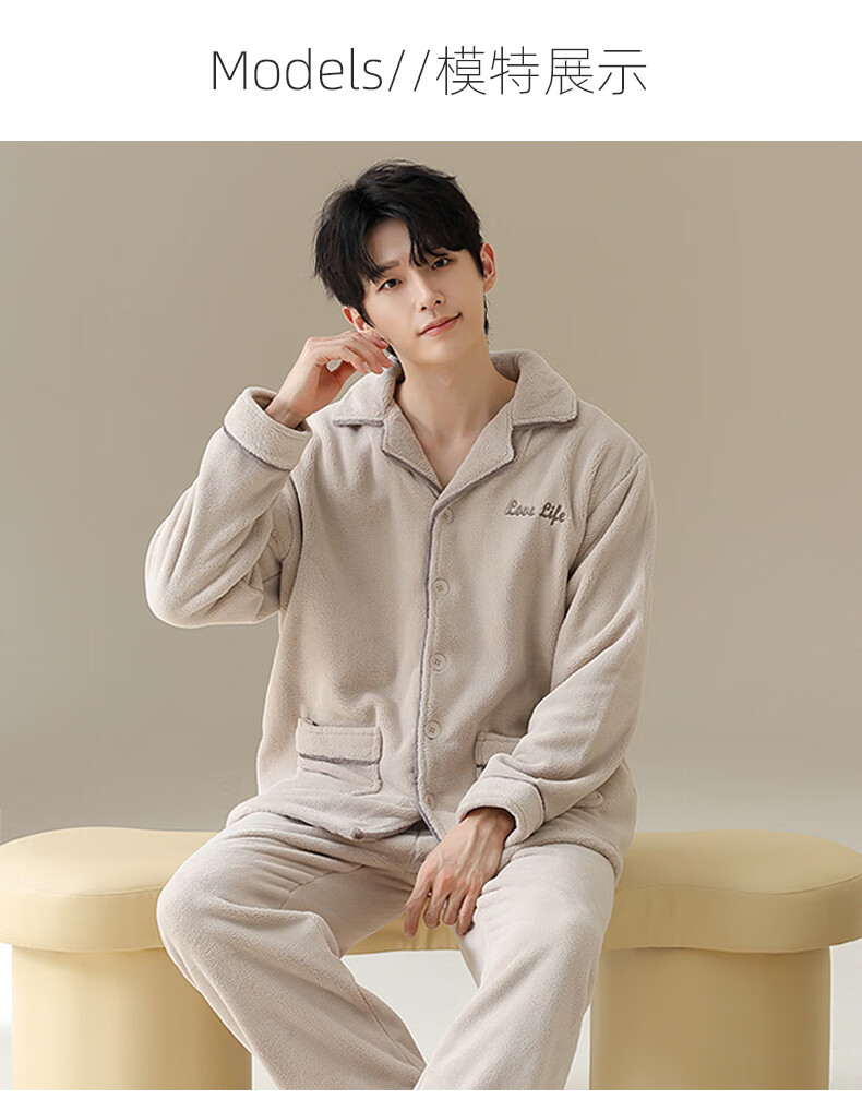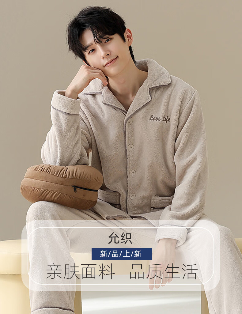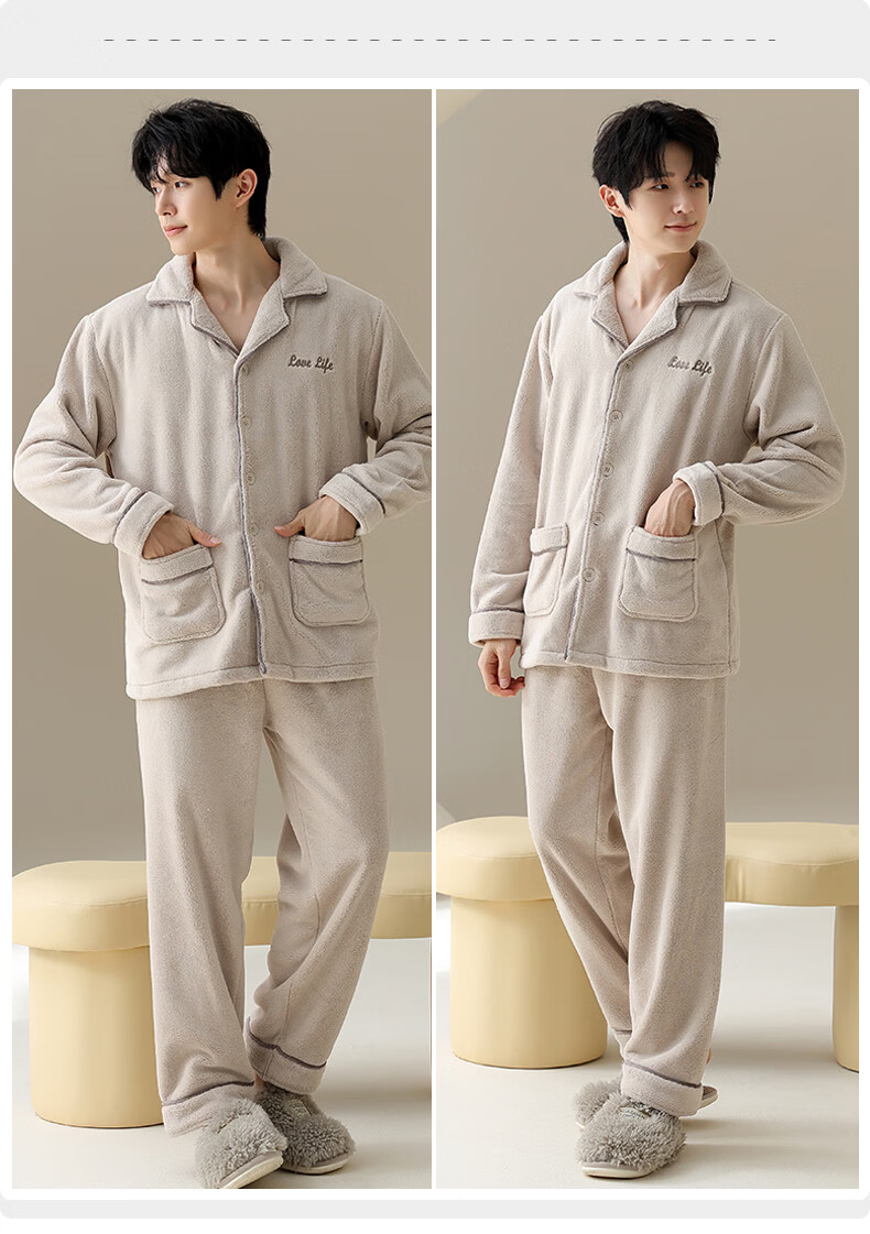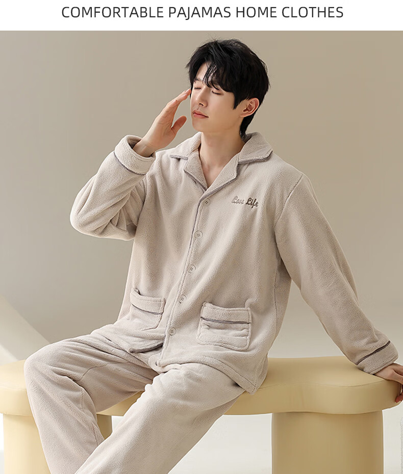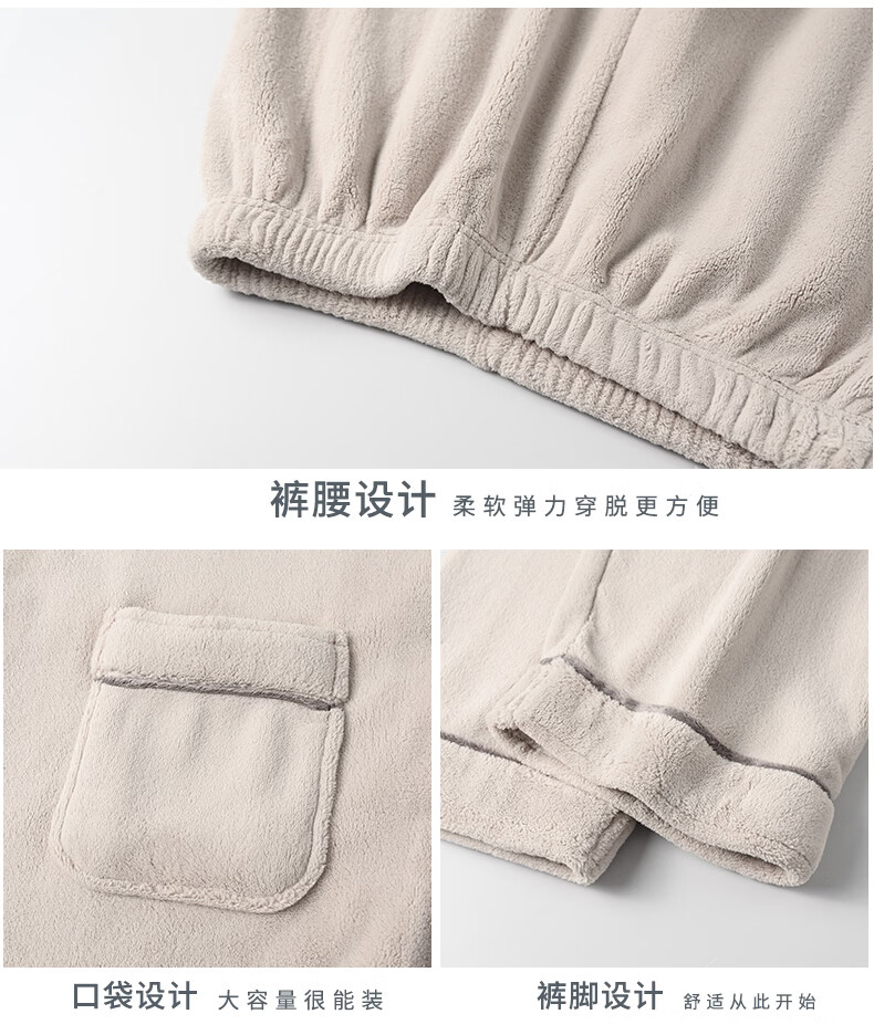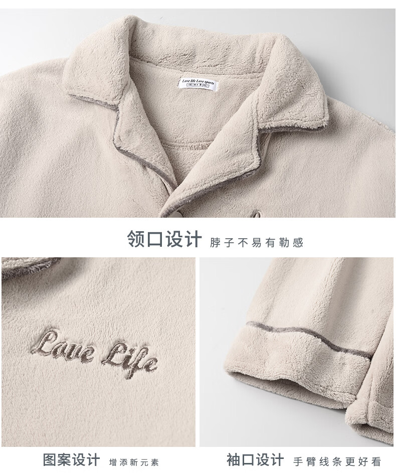 允织珊瑚绒睡衣男冬季法兰绒加绒加厚宽松大码男款男士家居服保暖套装 75957-米杏 L (170) :建议100-120斤穿着