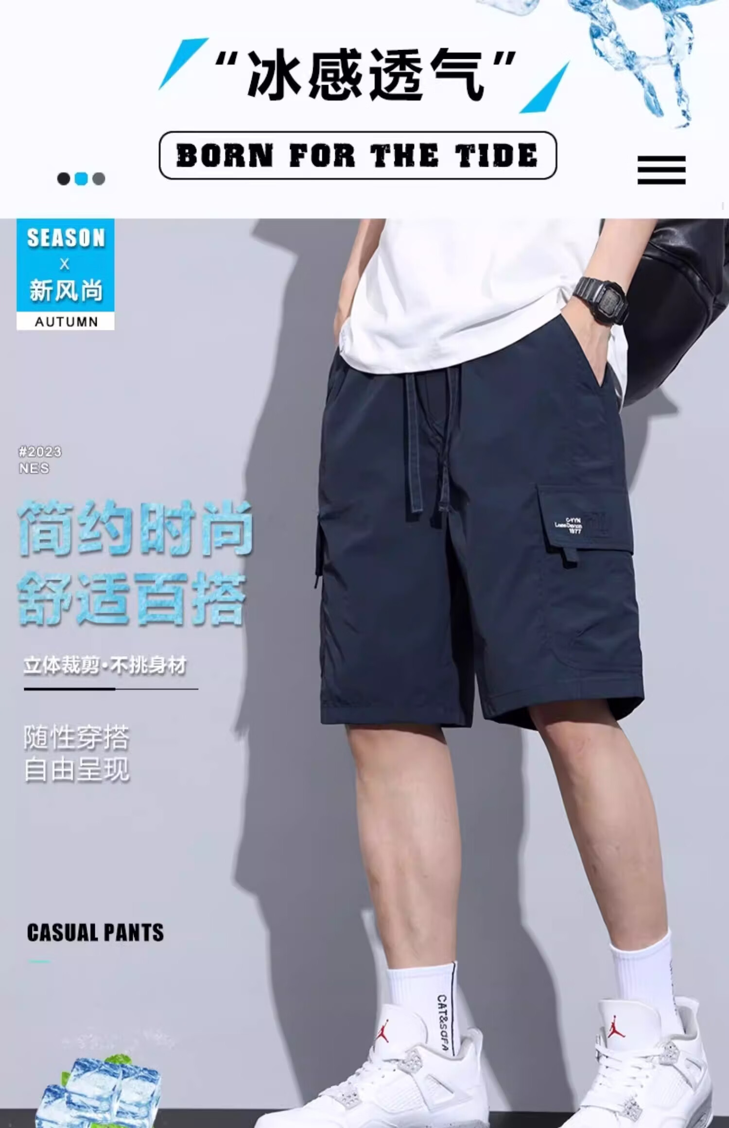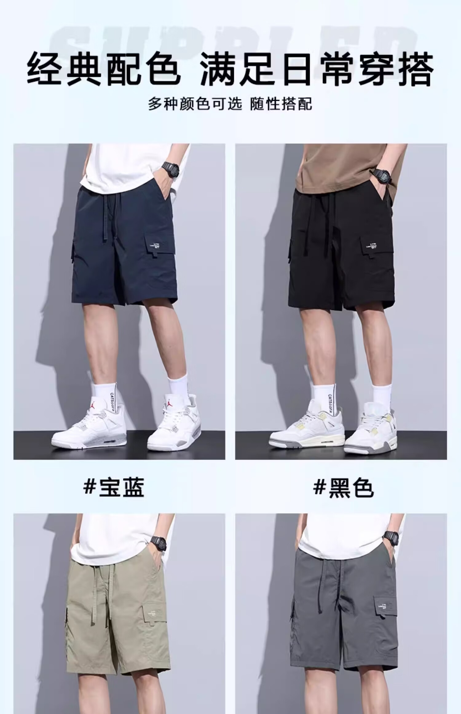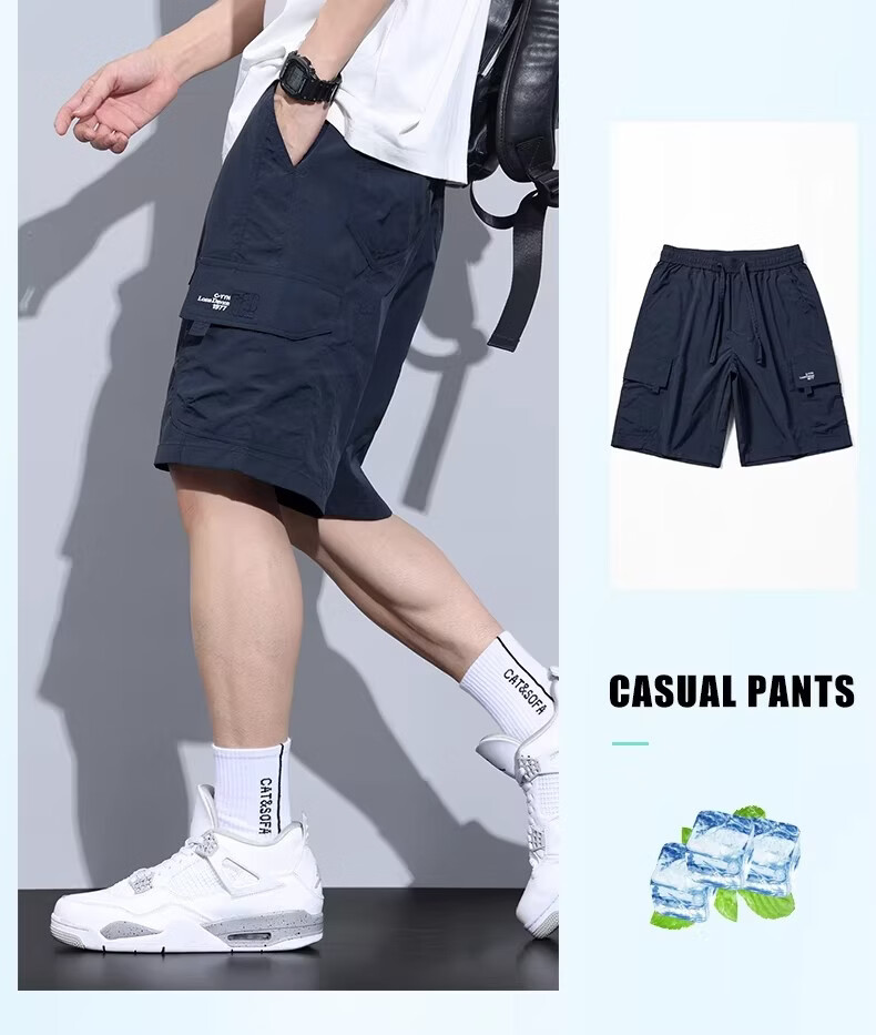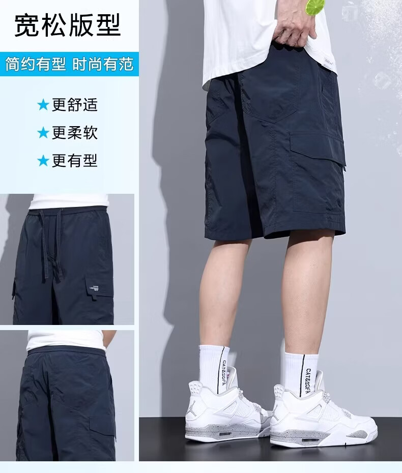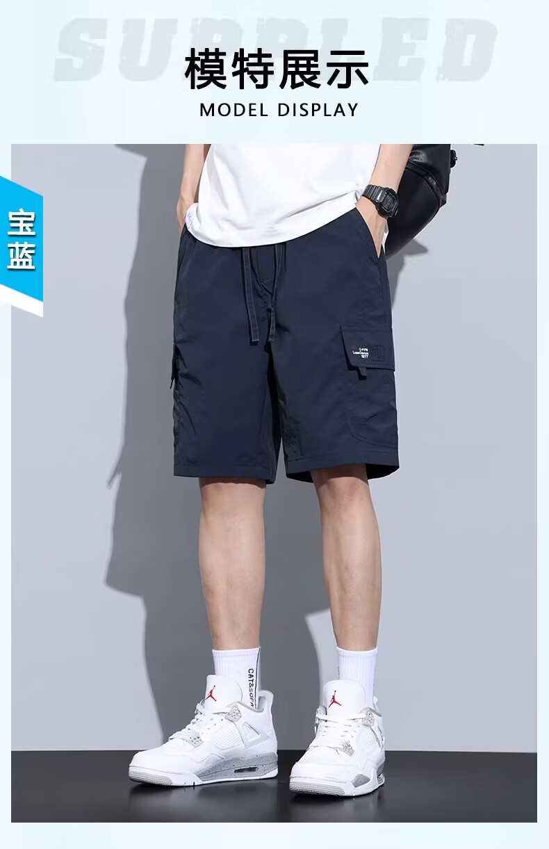 真维斯(Jeanswest)工装短裤男士夏季薄款冰丝运动外穿速干休闲五分裤中裤男款 宝蓝色. M 90-110斤