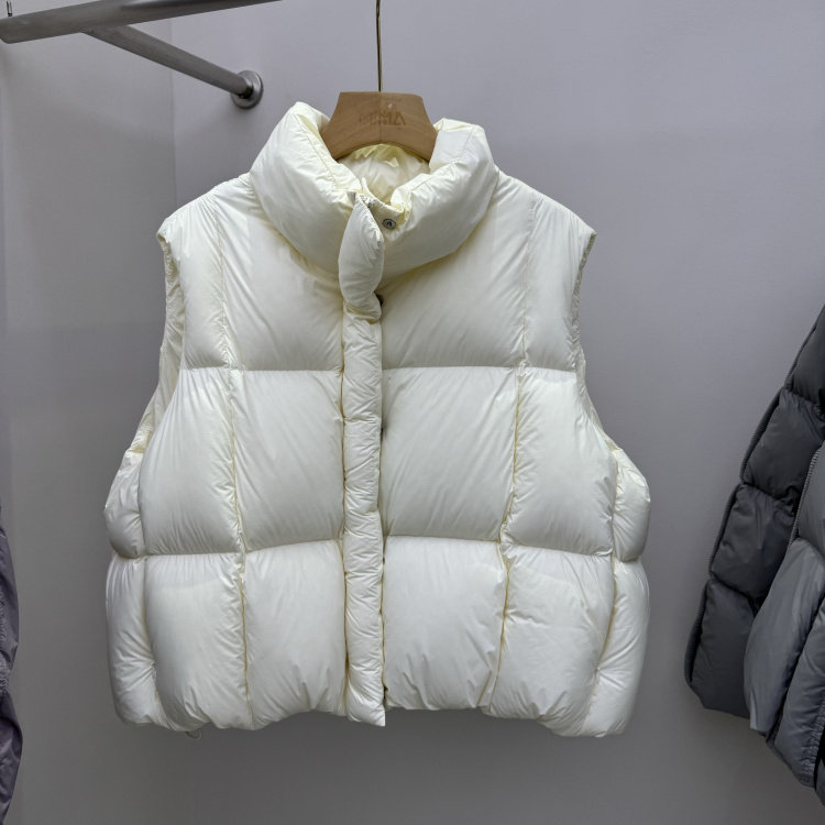 MODX欧货高端羽绒马甲背心女冬外穿2026新款立领保暖泡芙马夹坎肩外套 米白色 S