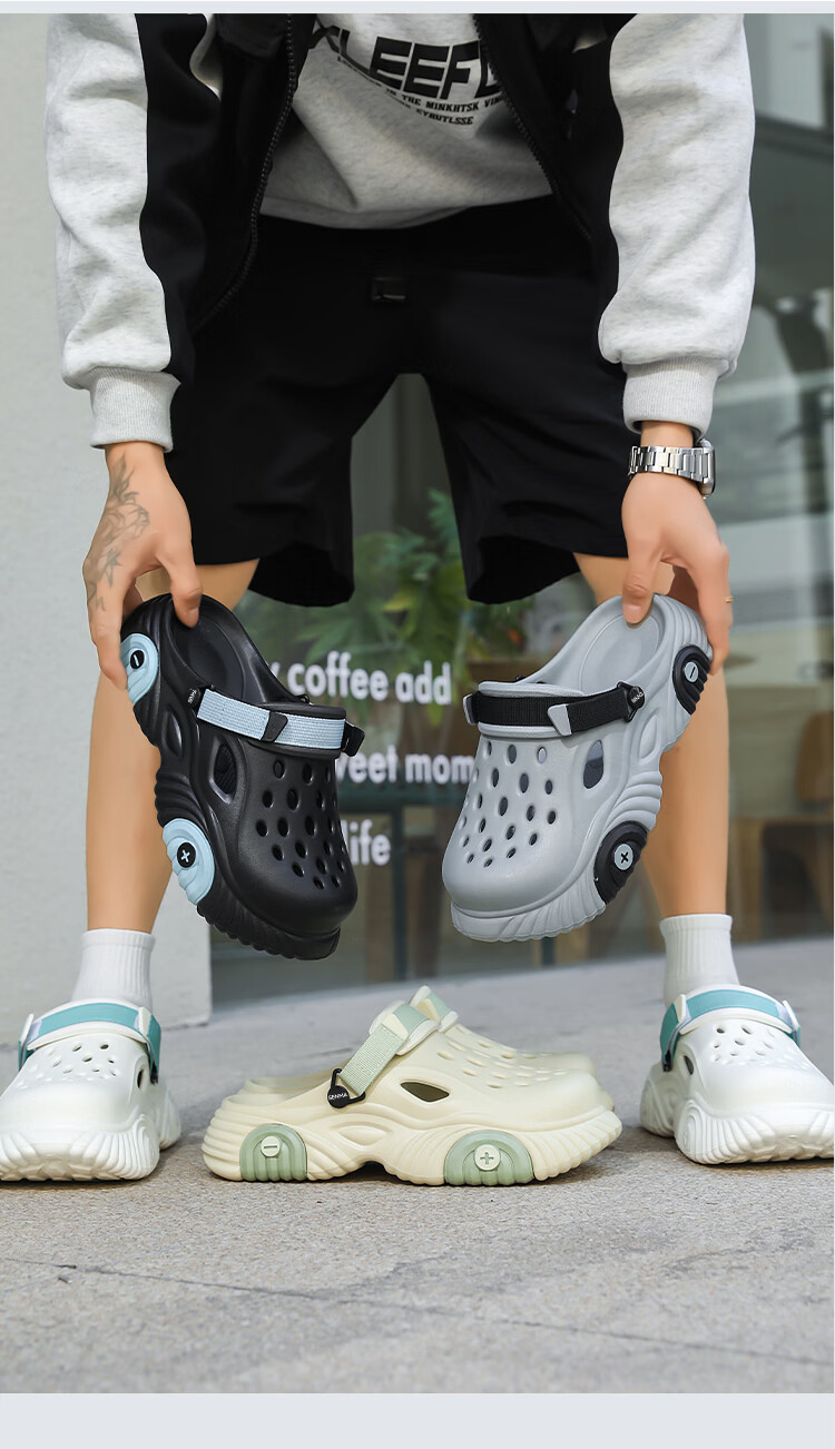 森馬洞洞鞋男2026新款夏季踩屎感包头半拖鞋软底防滑外穿开车运动凉鞋 果绿【基础款】 36-37 【现货秒发】