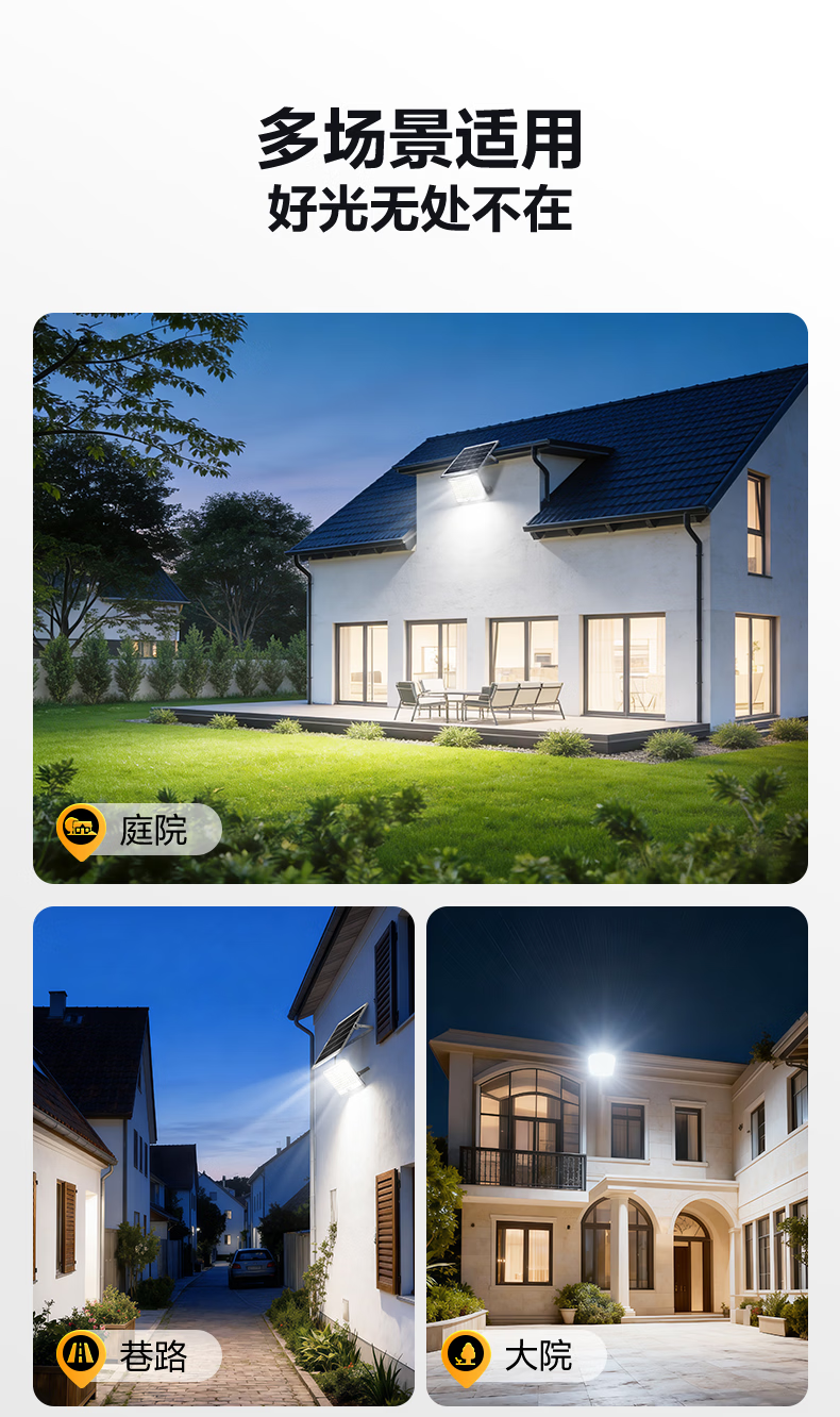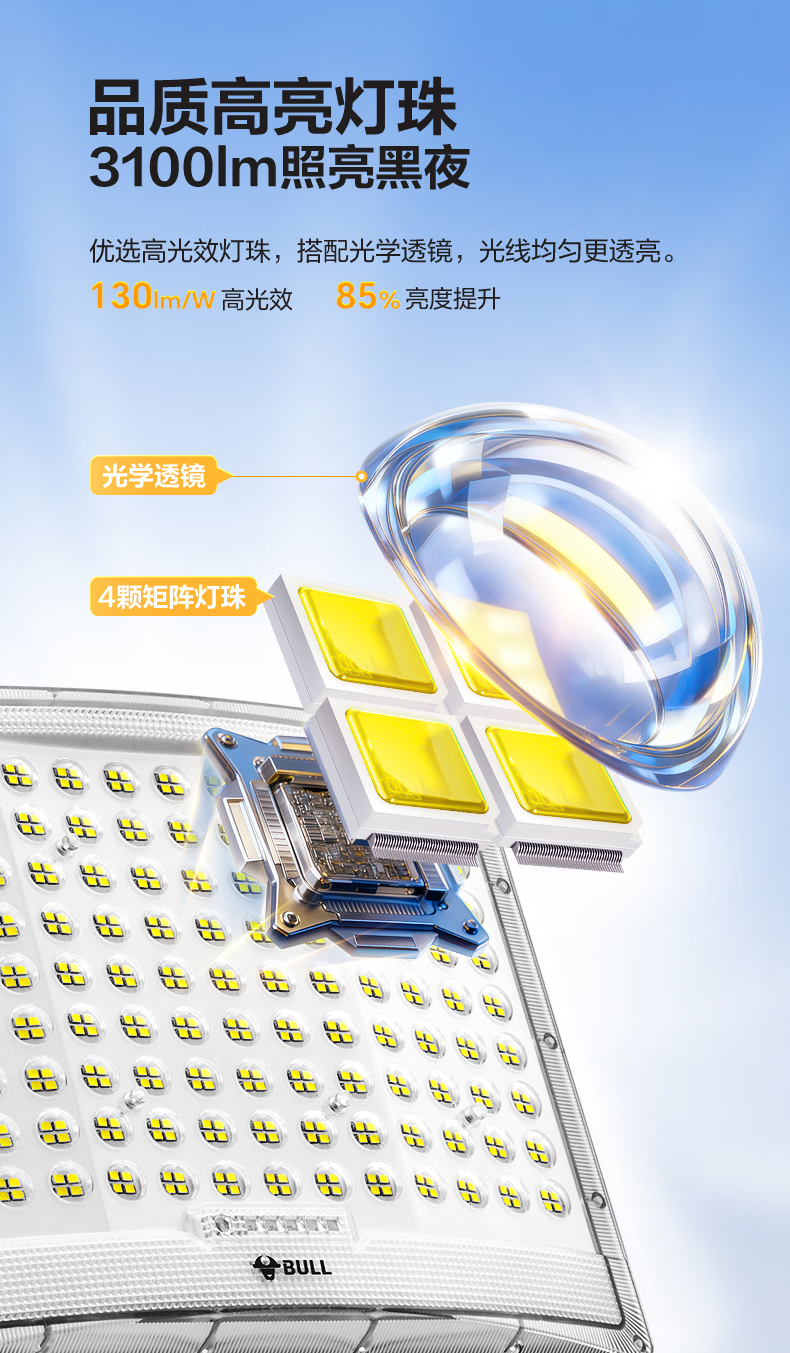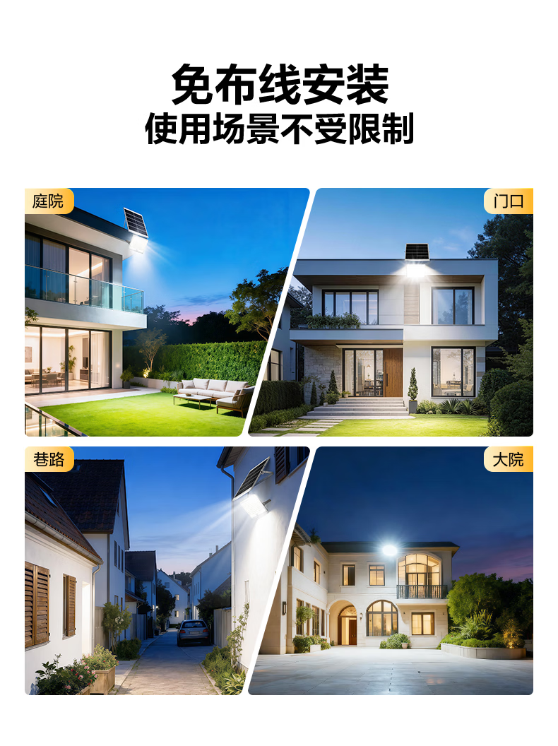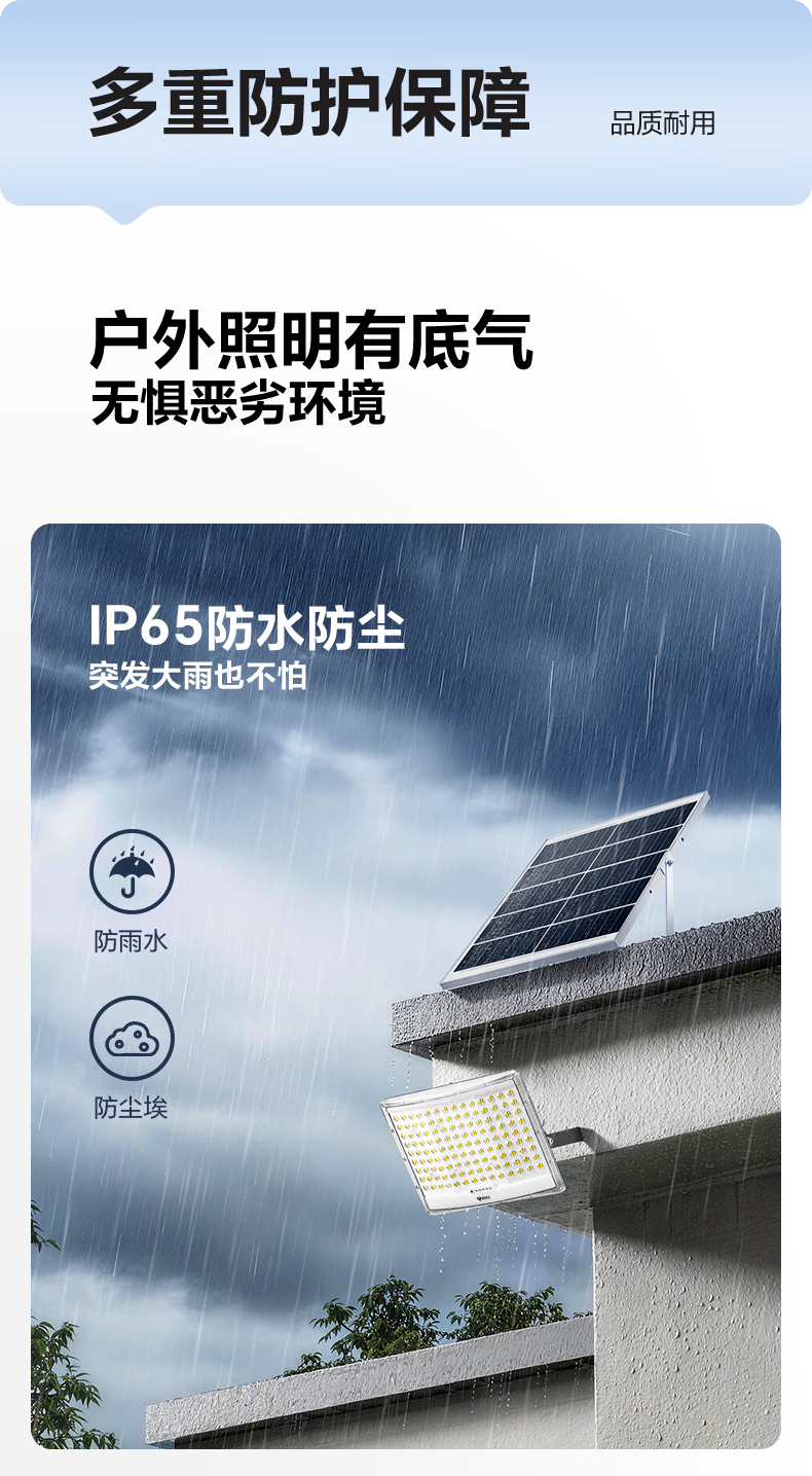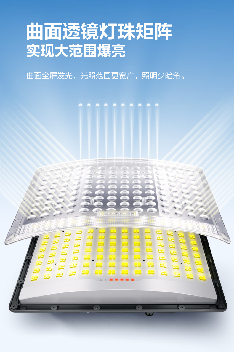 公牛(BULL)太阳能户外照明灯庭院灯投光灯路灯 曲面感应农村工厂车库智能灯 全面屏【光感+遥控】照约60m²