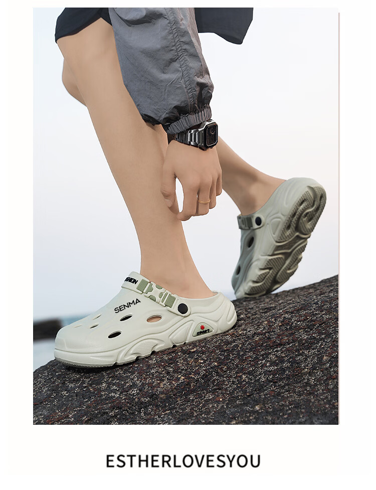 森馬洞洞鞋男2026新款夏季外穿防滑防臭包头拖鞋两用开车运动沙滩凉鞋 绿色【基础款】 38-39 现货秒发