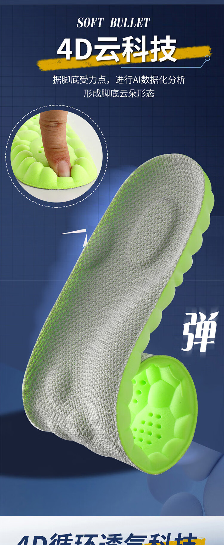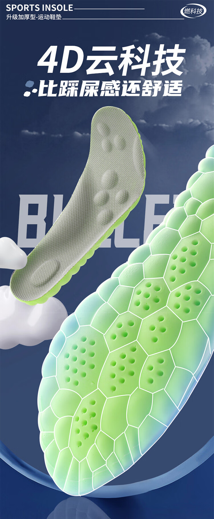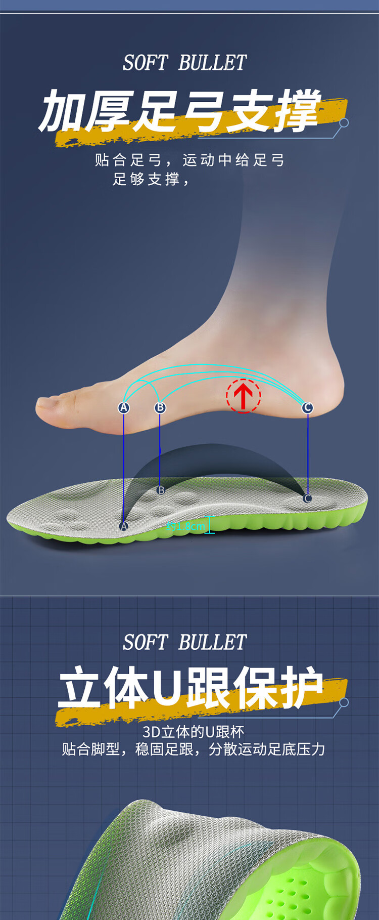 喜奔3D抗疲劳鞋垫足弓支撑矫正身体立线走路不累扁平足缓解疼痛防臭 35码 内长225mm