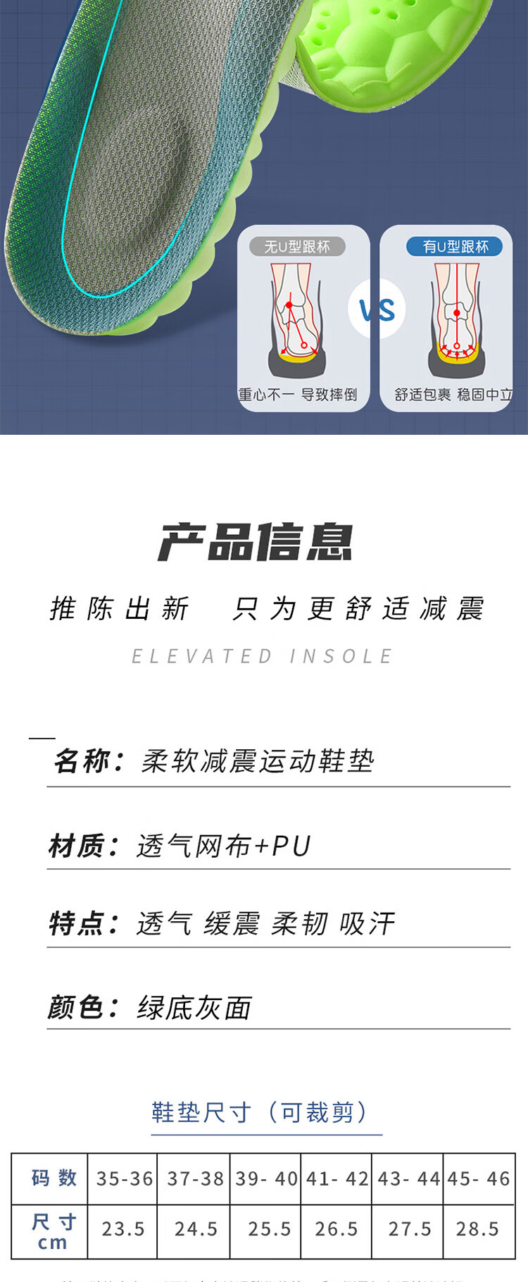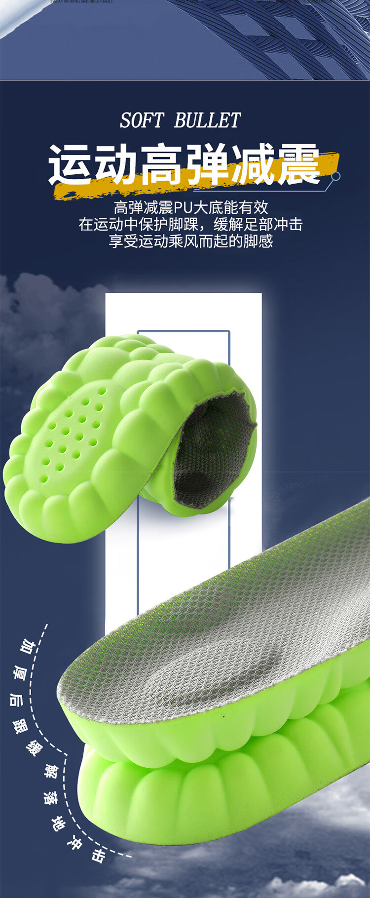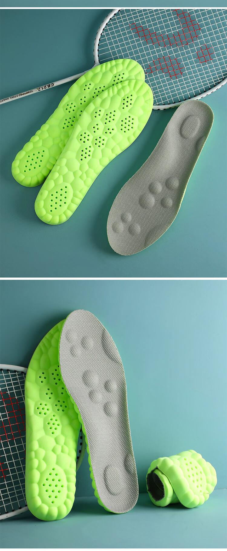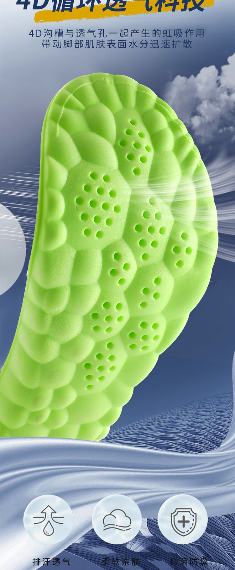足印部落 2双装防臭鞋垫男运动减震吸汗透气艾草除臭鞋垫子女软弹踩屎感 【2双灰面绿底】艾草净味防臭 3536码