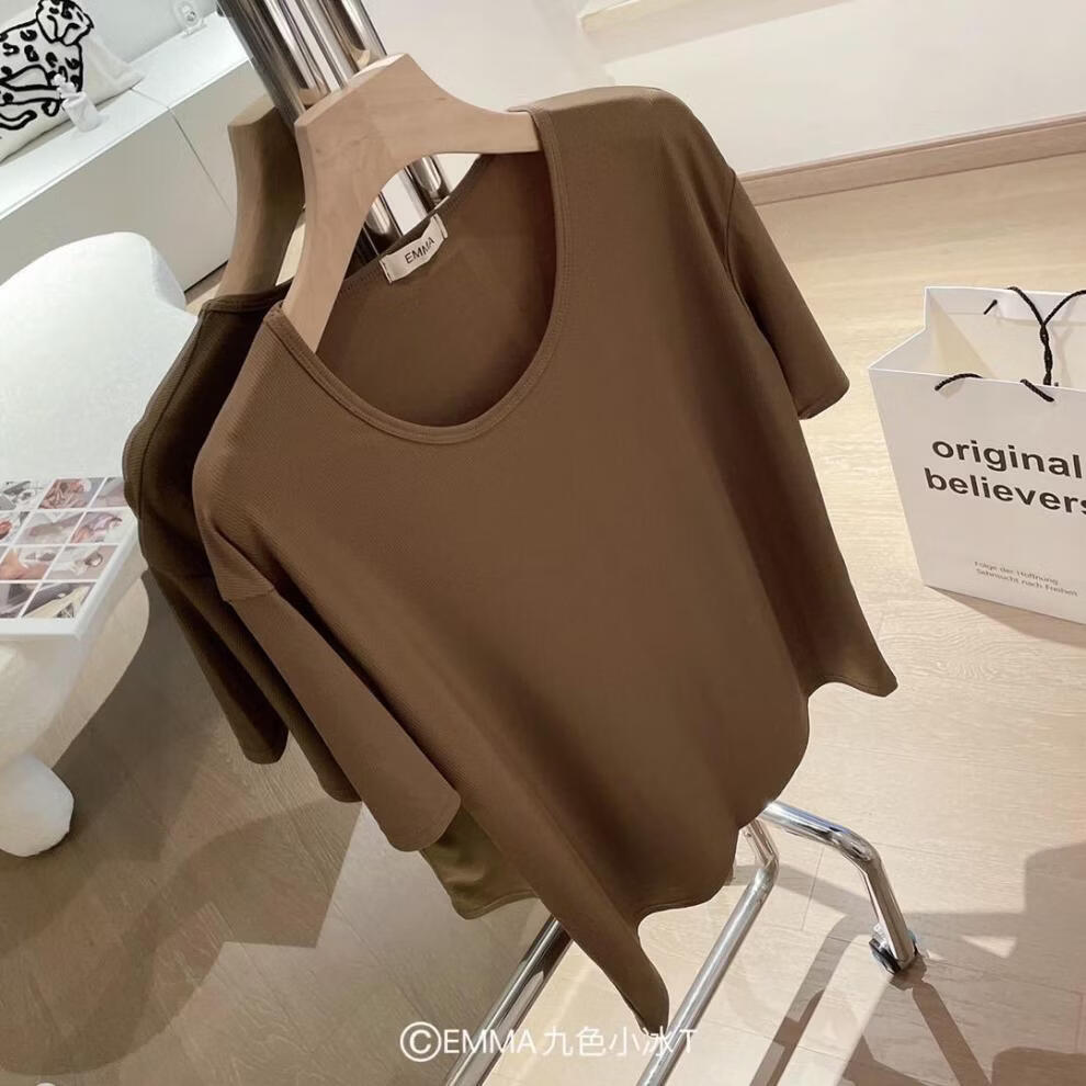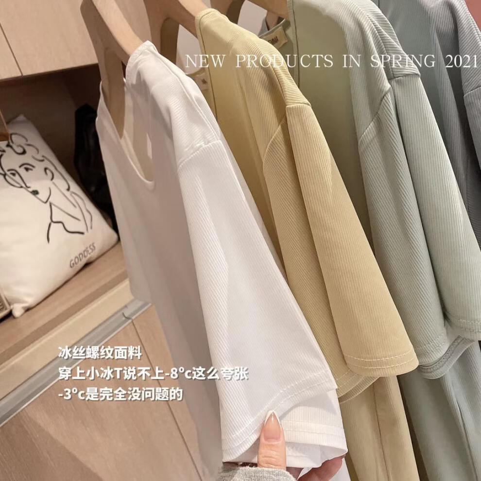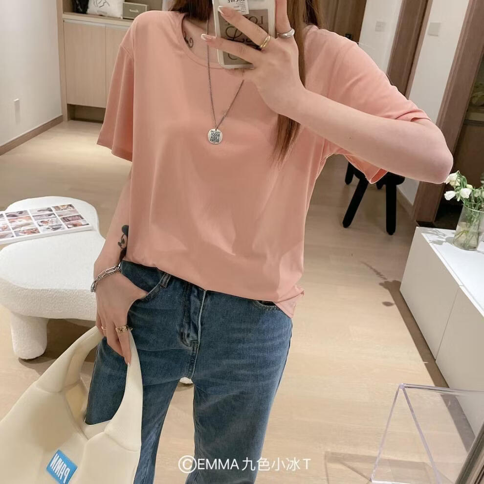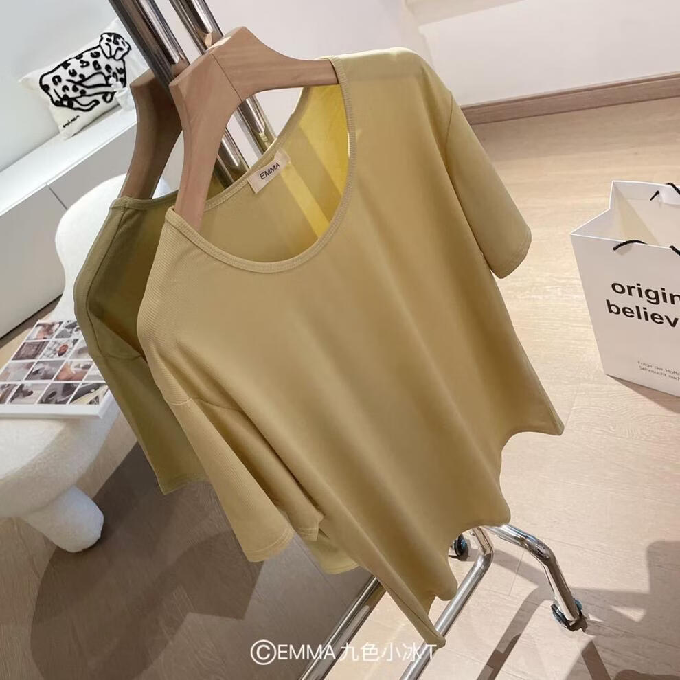 有只绵夏季新款小冰T恤宽松纯色上衣ins潮流圆领T恤短袖女生 黄色 均码 80-135斤
