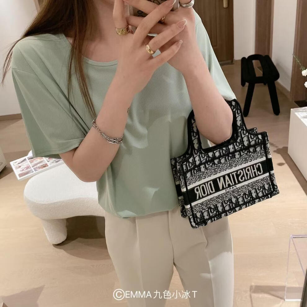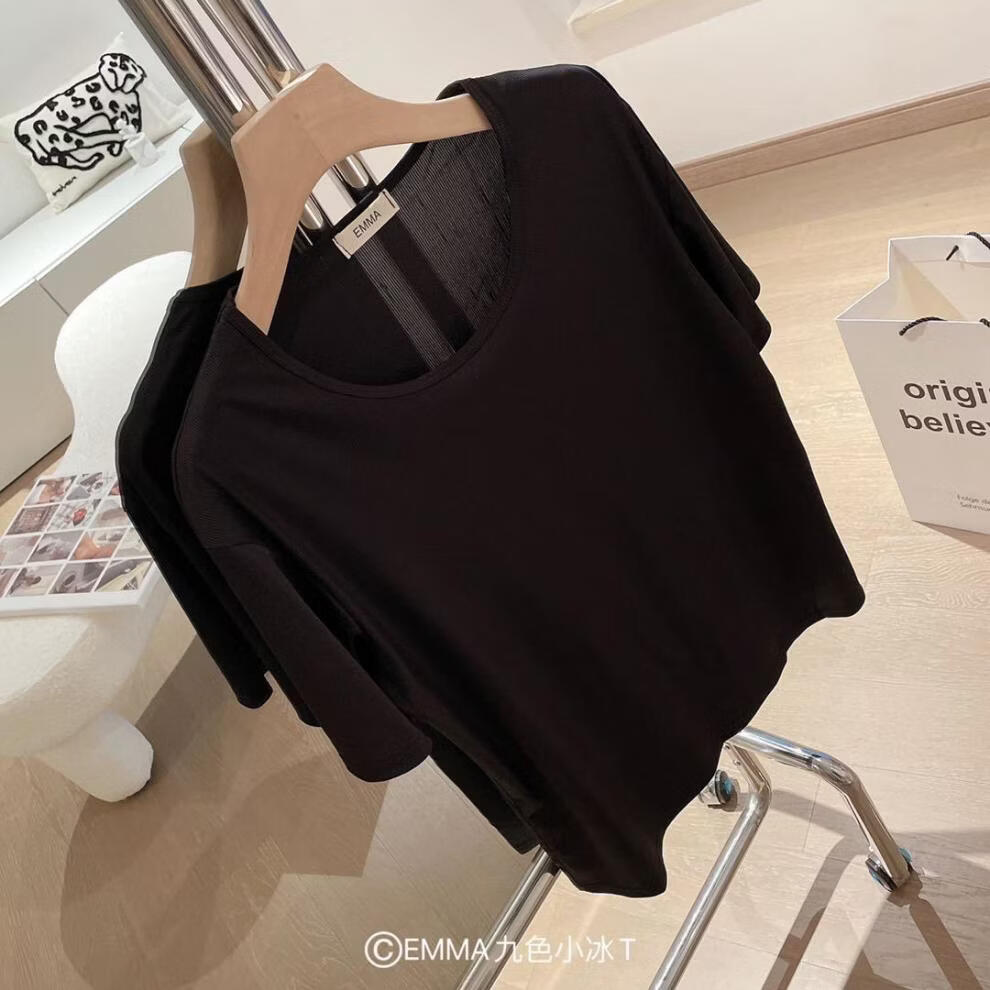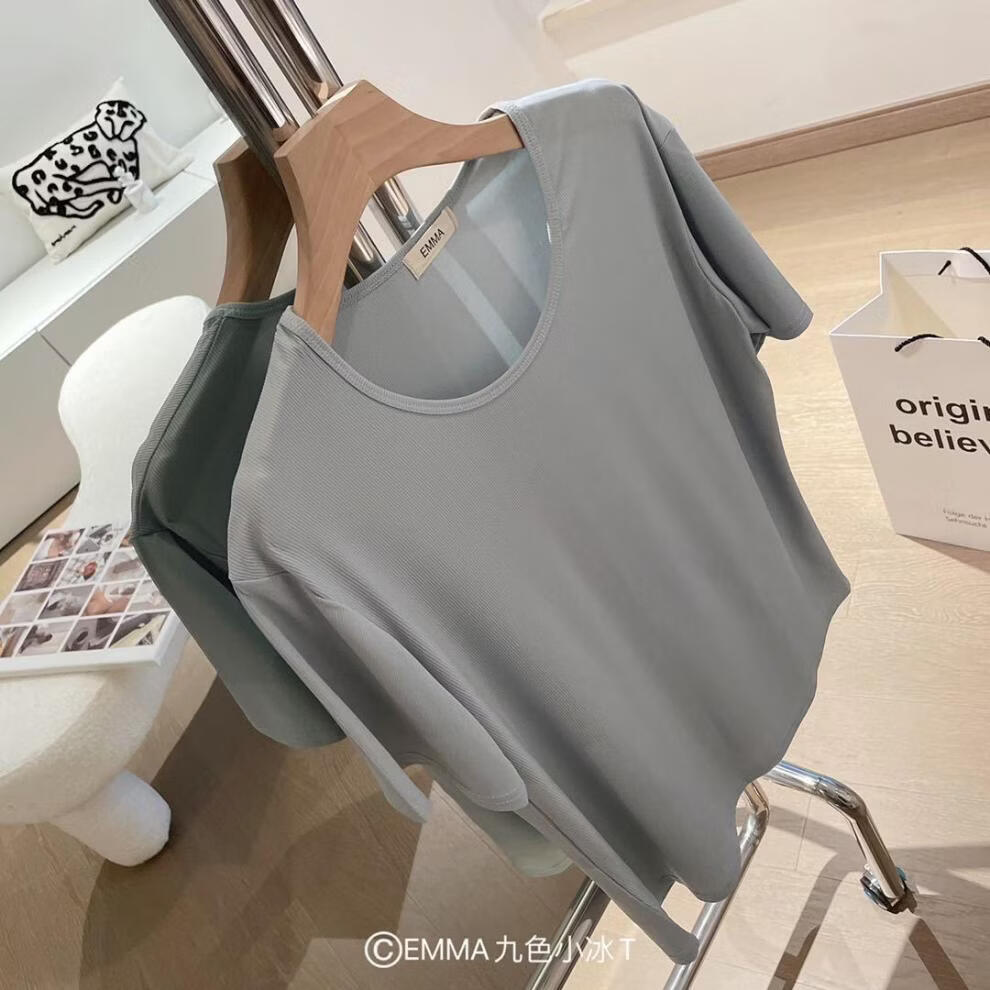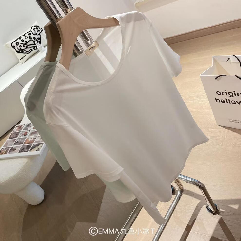 有只绵夏季新款小冰T恤宽松纯色上衣ins潮流圆领T恤短袖女生 黄色 均码 80-135斤