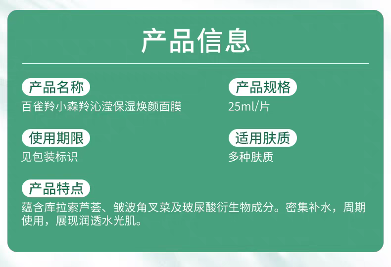百雀羚补水面膜贴片面膜组合装 【小森羚】沁莹保湿面膜15片