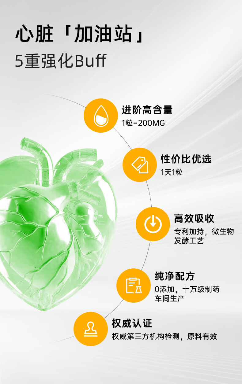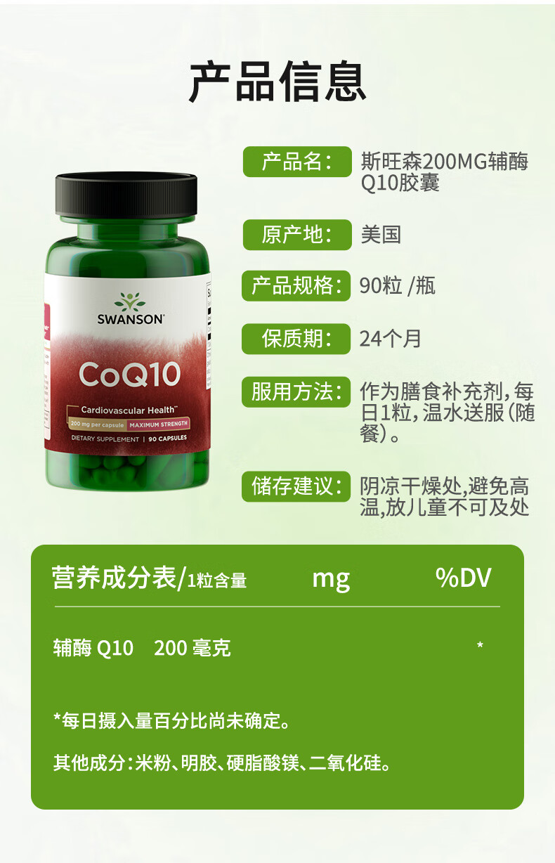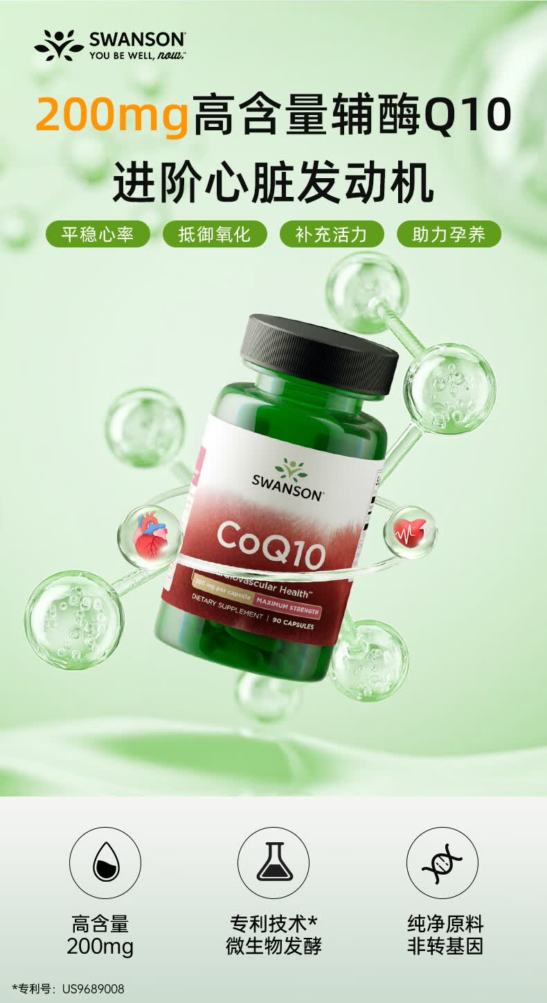 斯旺森(SWANSON)辅酶Q10备孕专用 高浓度中老年强健心肌缓解心慌心悸心脑血管 【呵护心脑】高含量辅酶200mg 90粒*1瓶