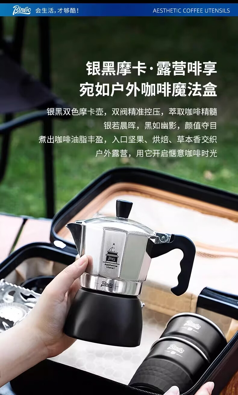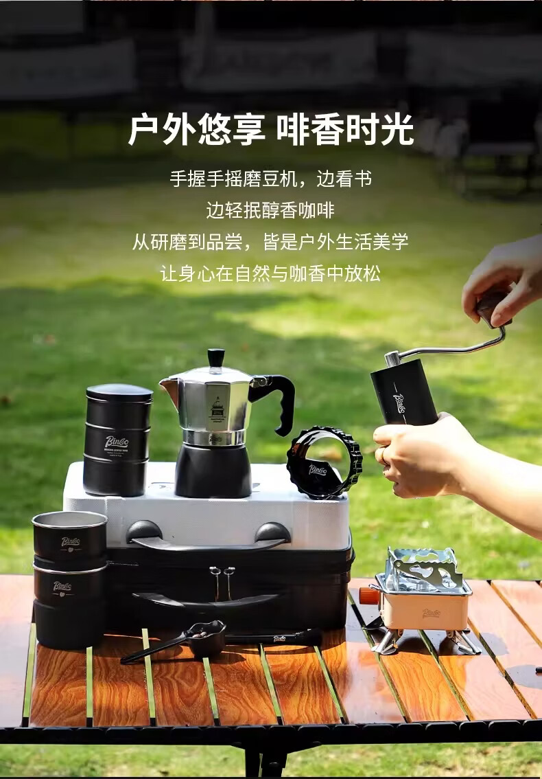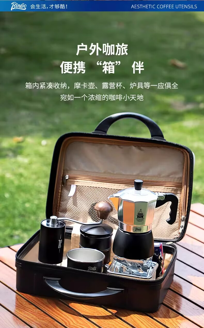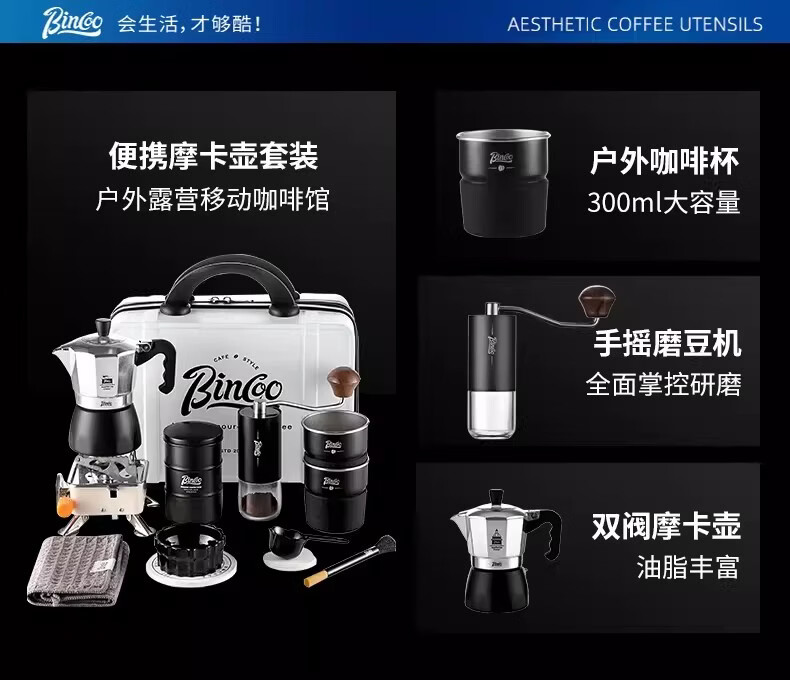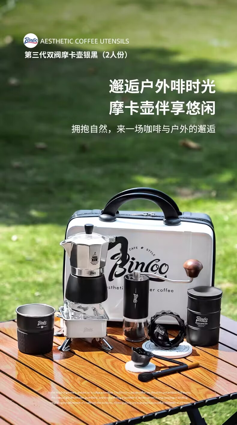 Bincoo咖啡壶户外旅行套装双阀摩卡壶露营咖啡装备便携煮咖啡全套 5件套 双阀