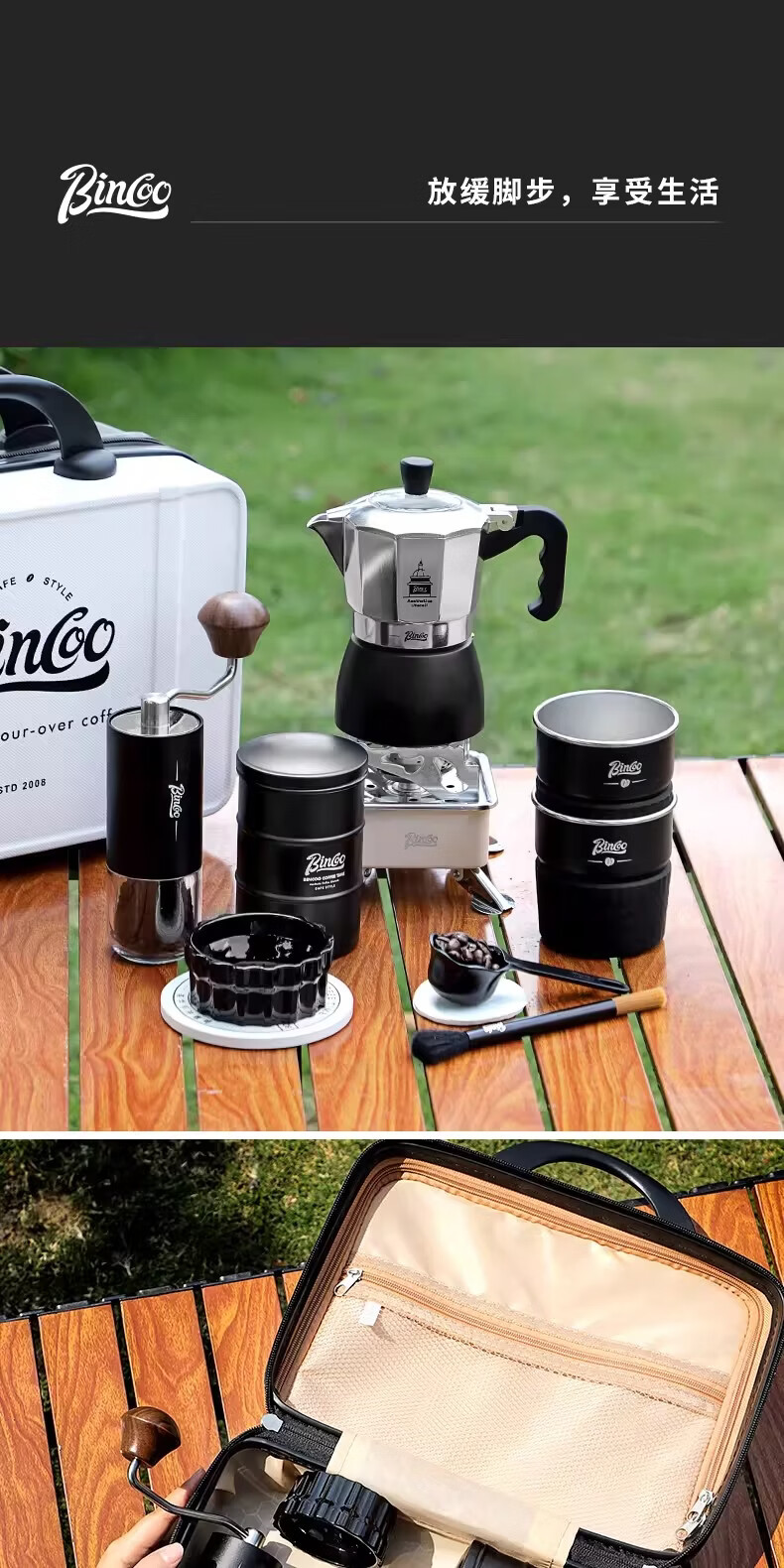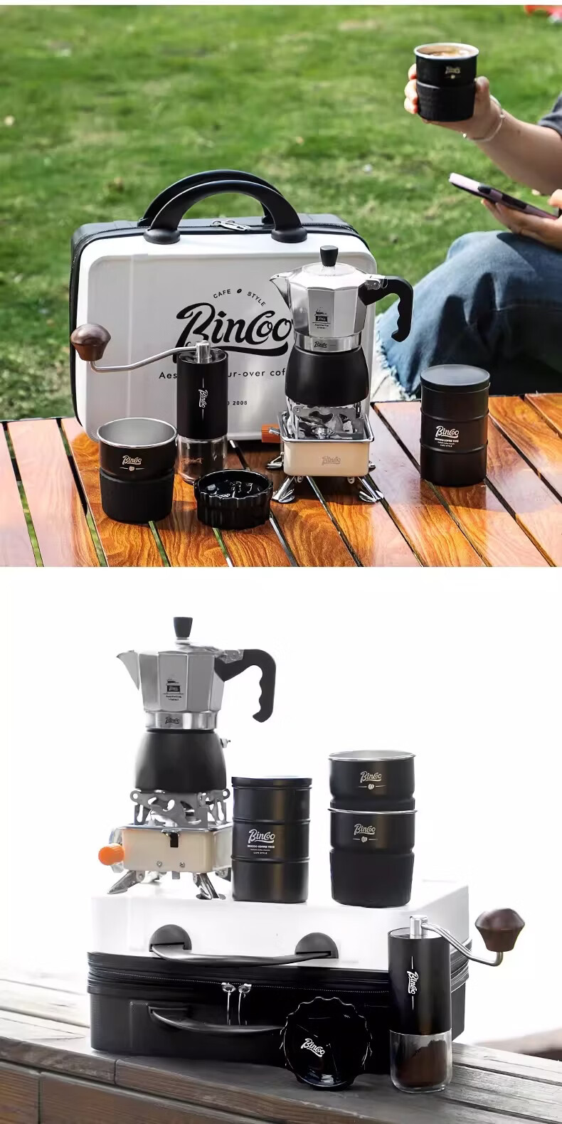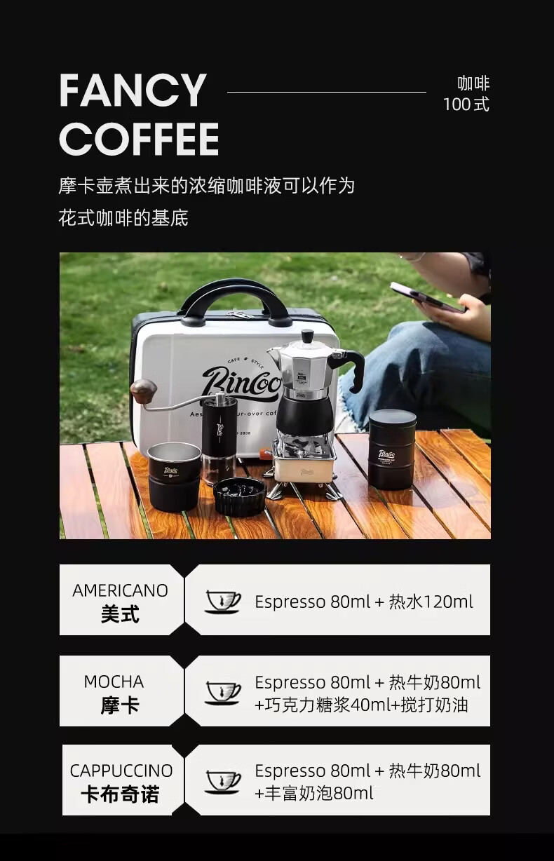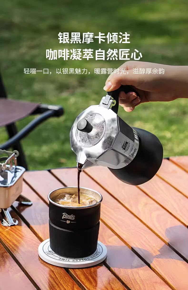 Bincoo咖啡壶户外旅行套装双阀摩卡壶露营咖啡装备便携煮咖啡全套 5件套 双阀
