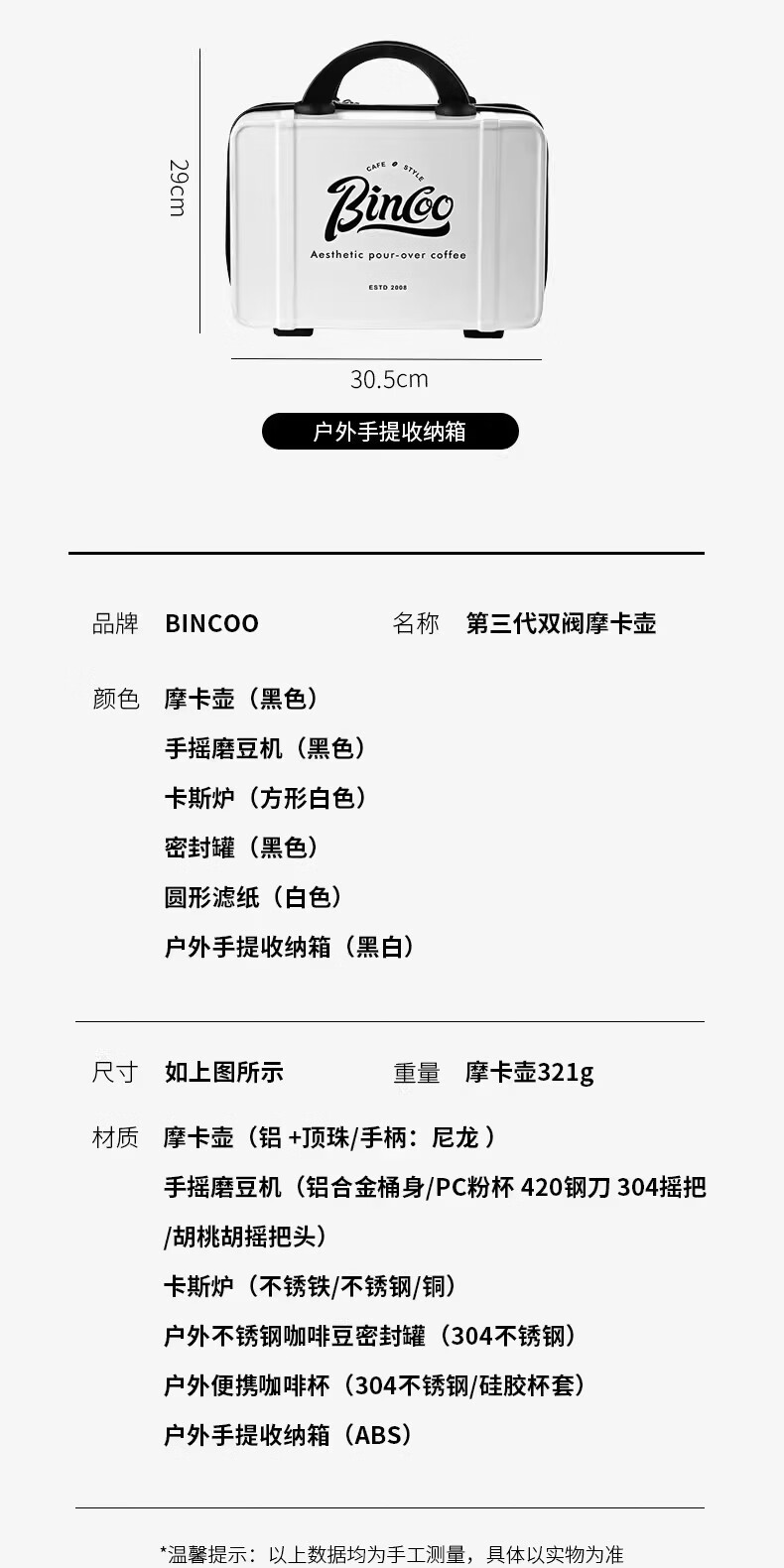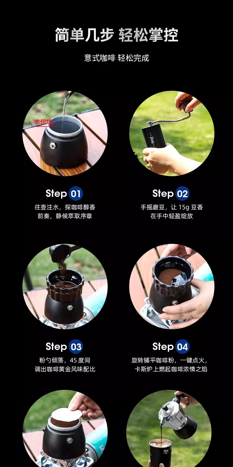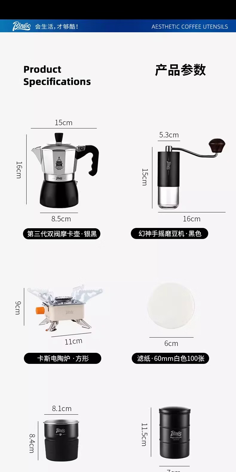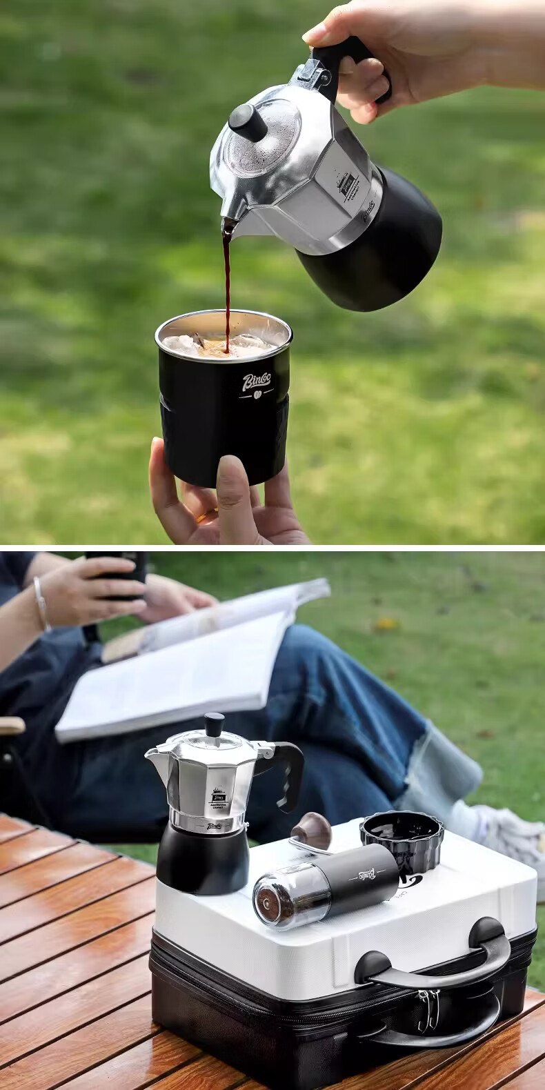 Bincoo咖啡壶户外旅行套装双阀摩卡壶露营咖啡装备便携煮咖啡全套 5件套 双阀