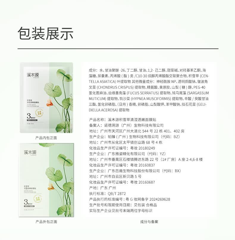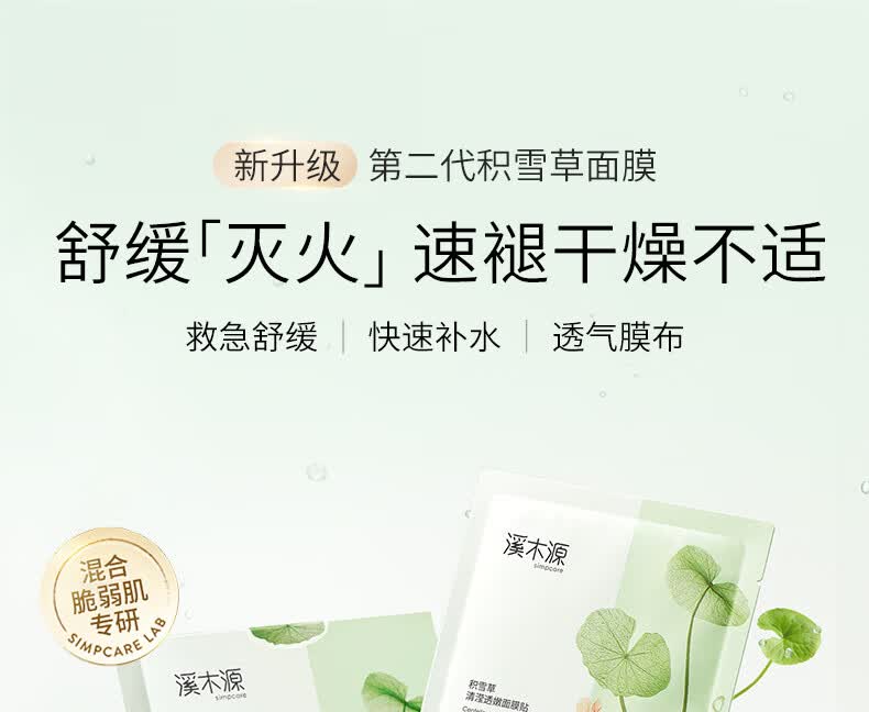 溪木源积雪草舒缓补水晒后修护保湿水润舒缓护肤品面膜男女士