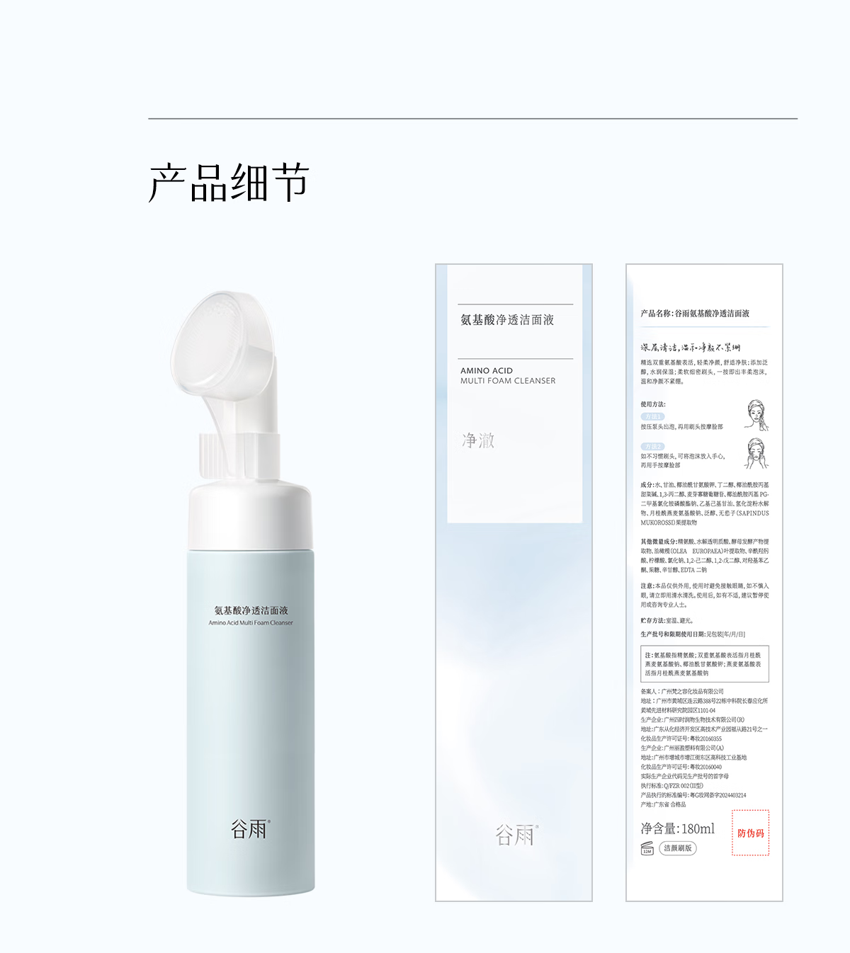 谷雨氨基酸洁面泡沫180ml深层清洁温和洗面奶化妆品洁面乳母亲节礼物