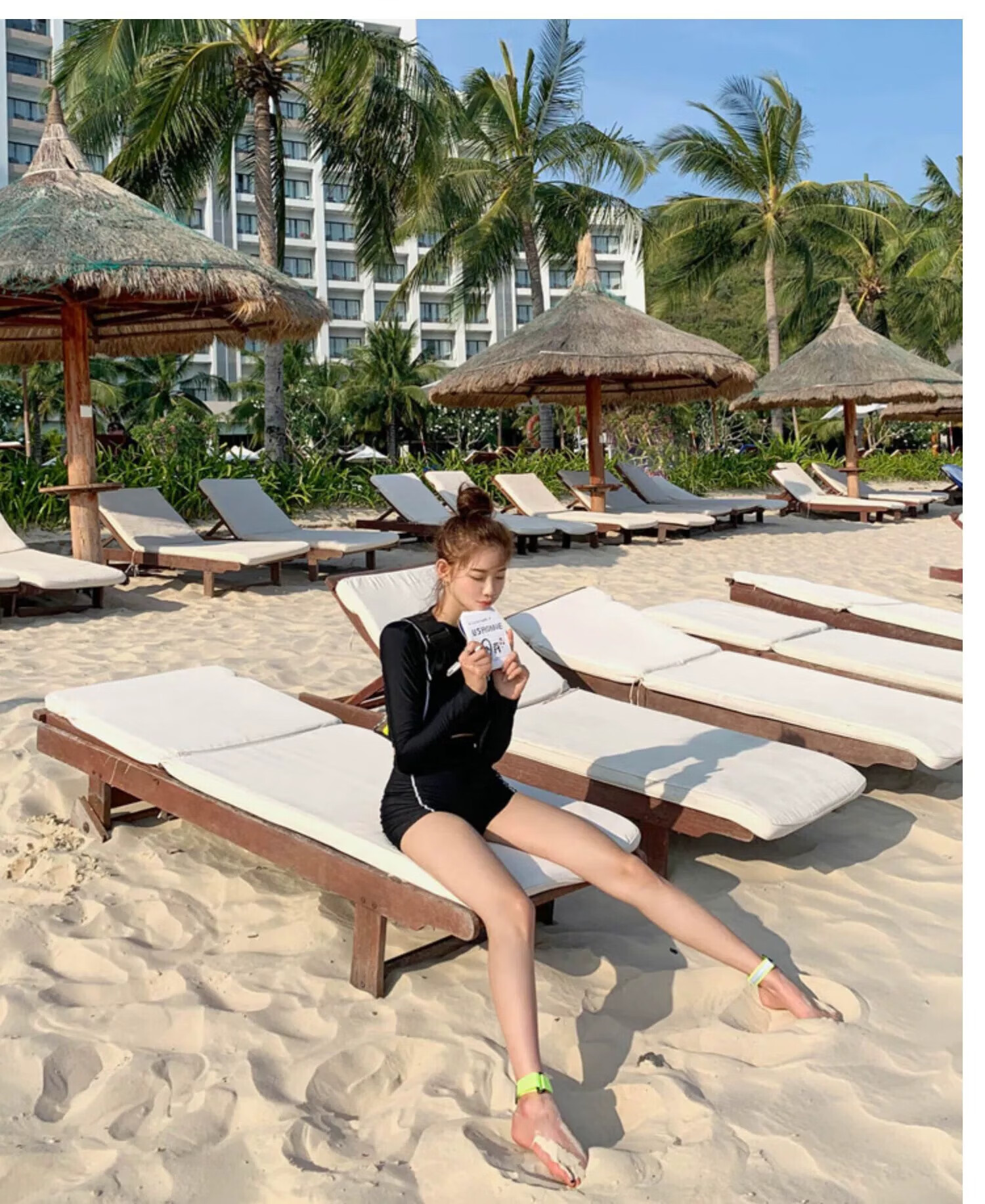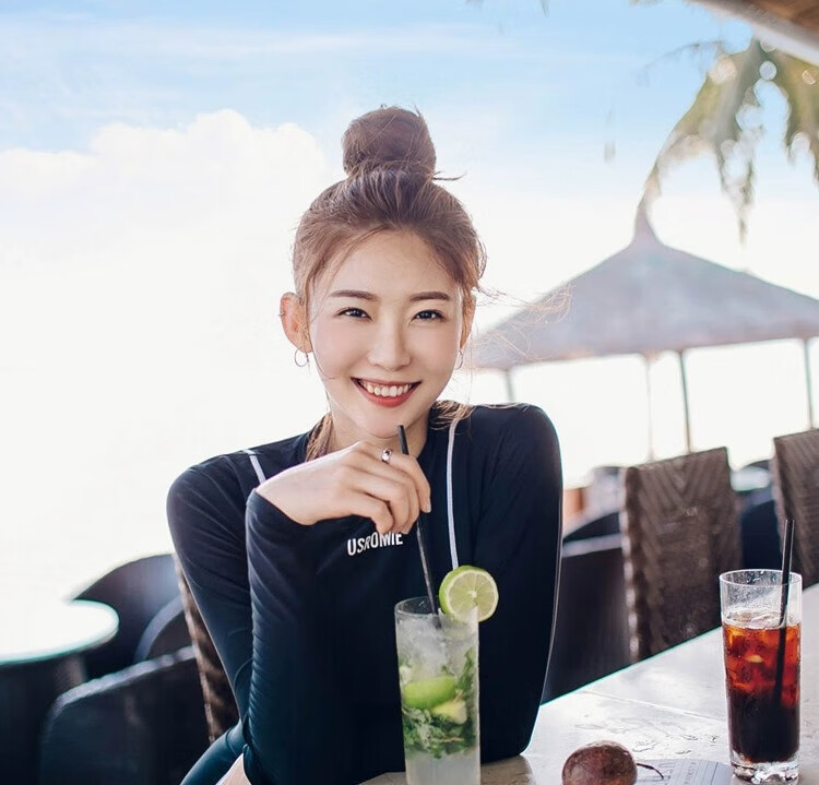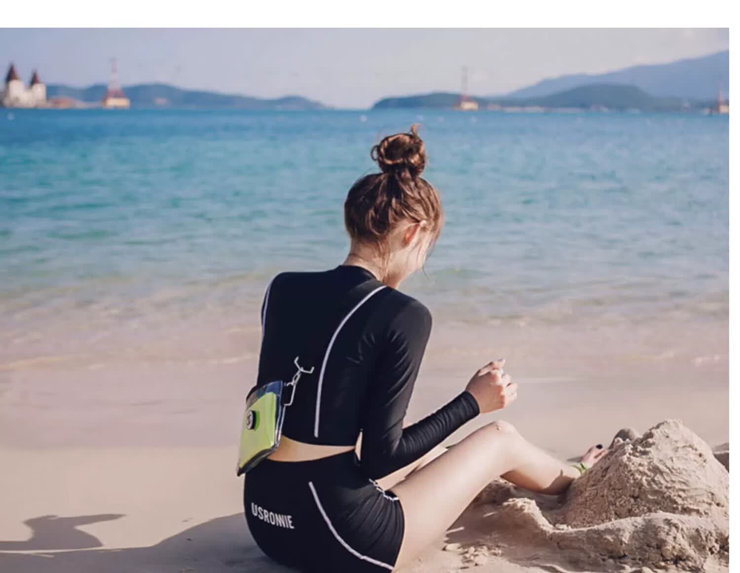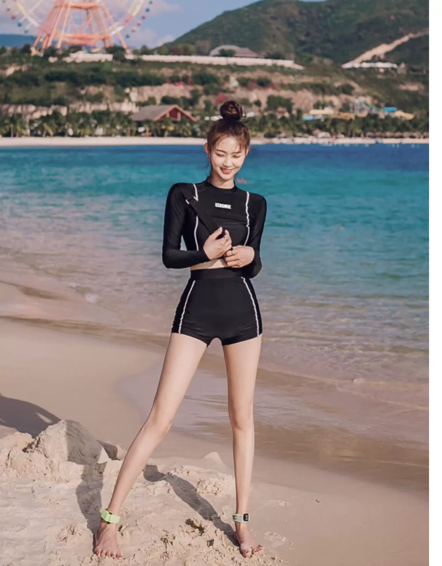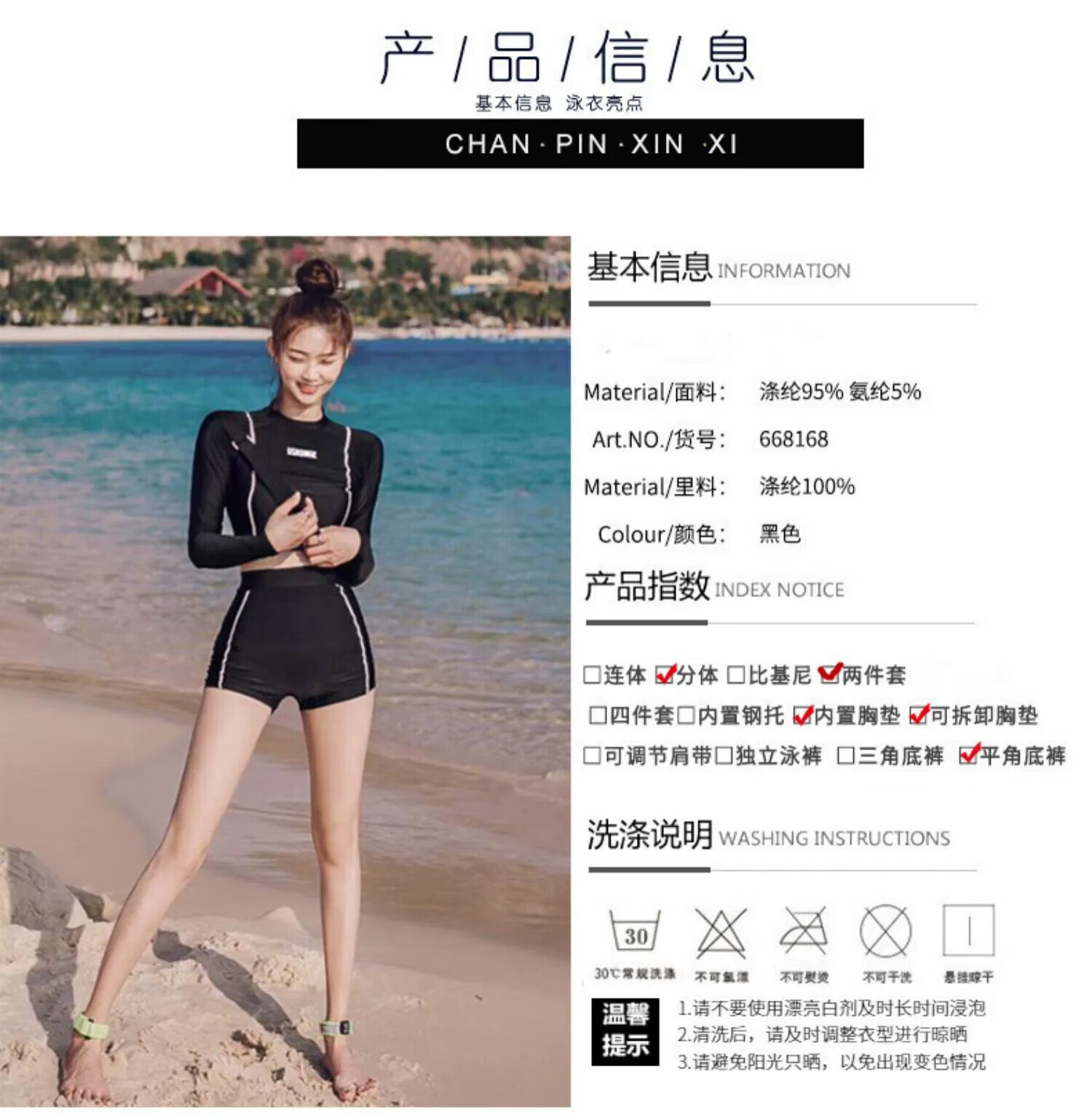 东方骆驼新款长袖防晒分体泳衣女遮肚显瘦小胸聚拢性感保守冲浪泳装女 黑色长袖 M 建议体重80-95斤