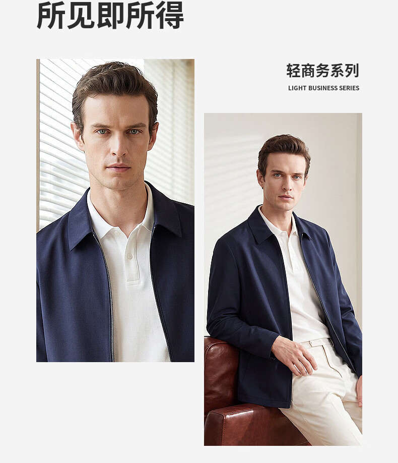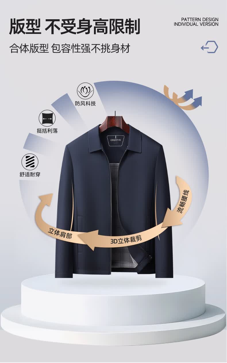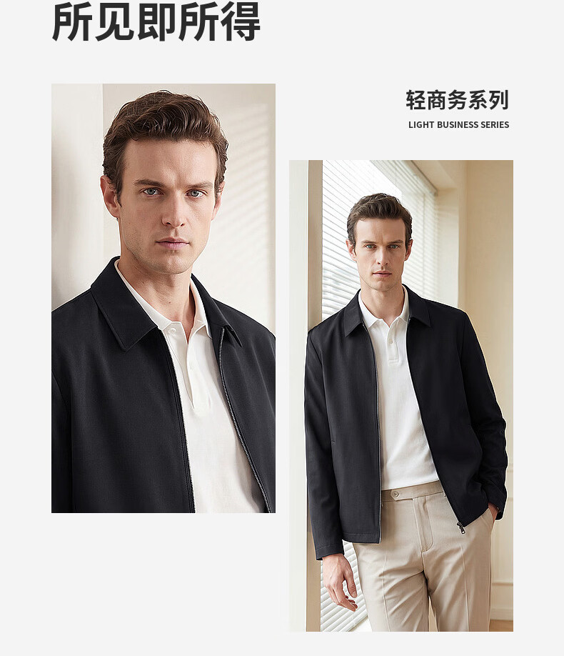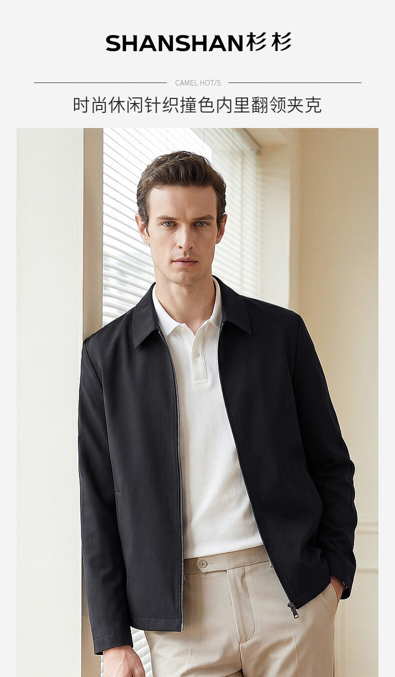 SHANSHAN杉杉【翻领】春秋薄款行政夹克男商务休闲上衣新年外套衣服 黑色 L /175