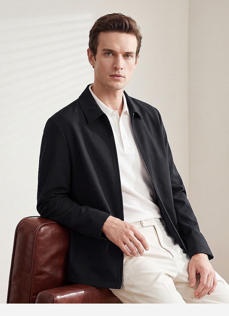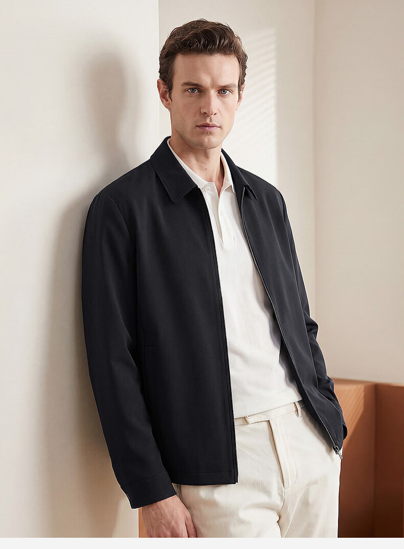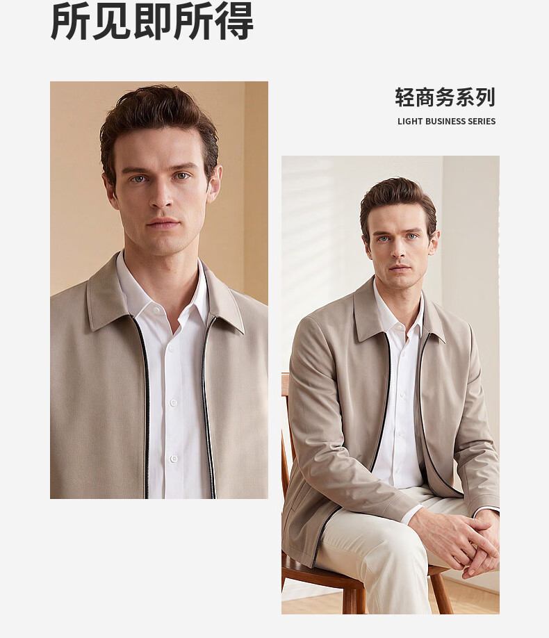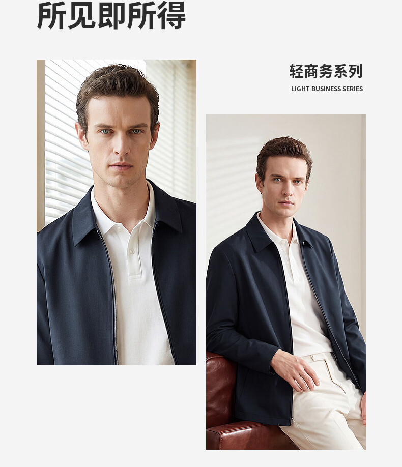 SHANSHAN杉杉【翻领】春秋薄款行政夹克男商务休闲上衣新年外套衣服 黑色 L /175