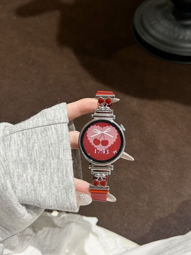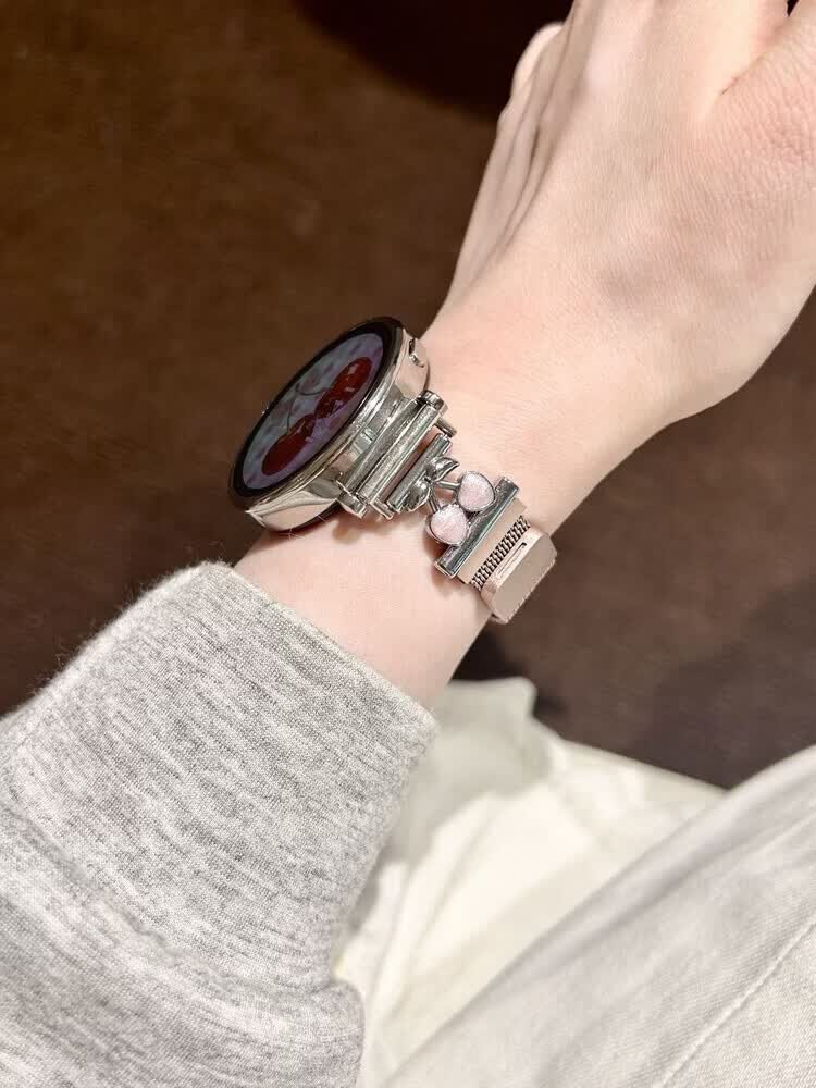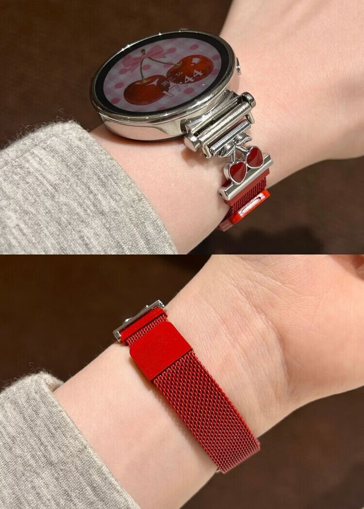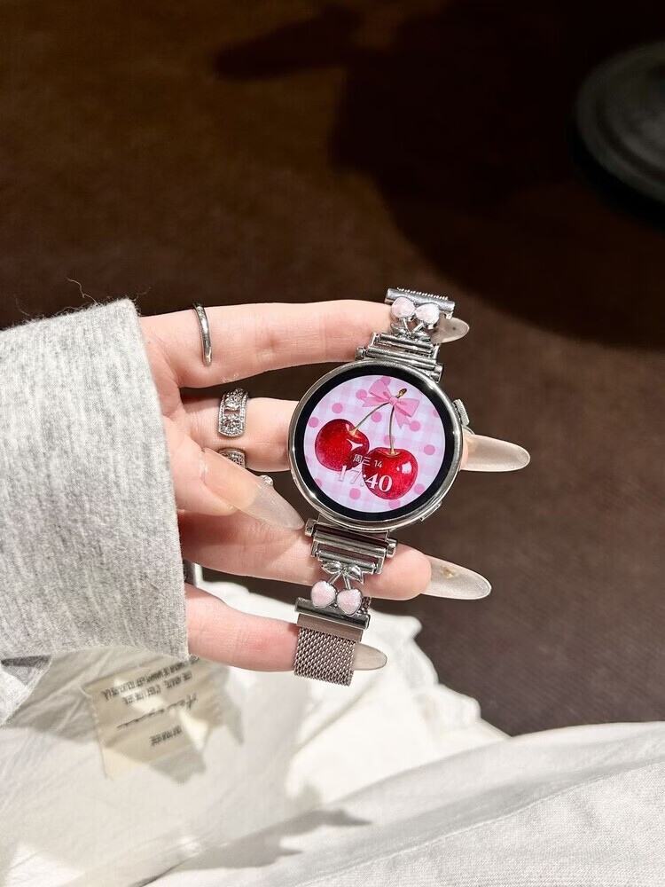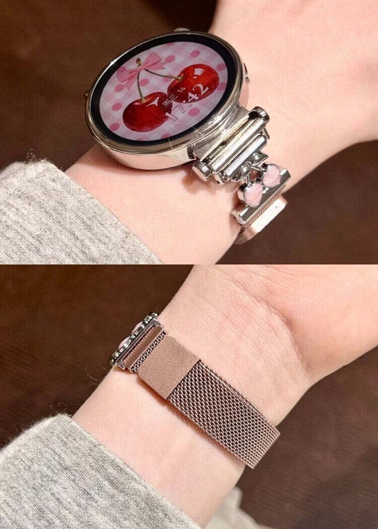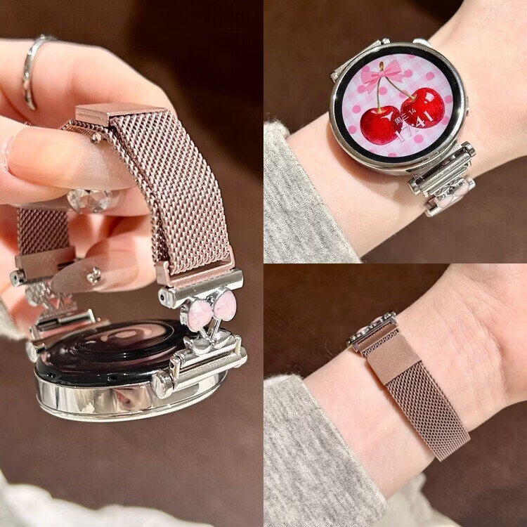 适用华为gt6表带金属磁吸watch5新款樱桃粉金米兰轻奢时尚网红女款表带 【银色-米兰尼斯】+樱桃白头粒 适用:华为Watch GT-表带22mm