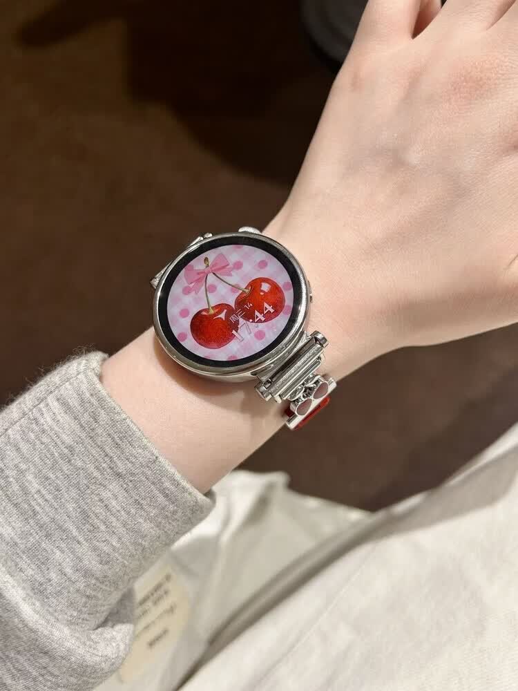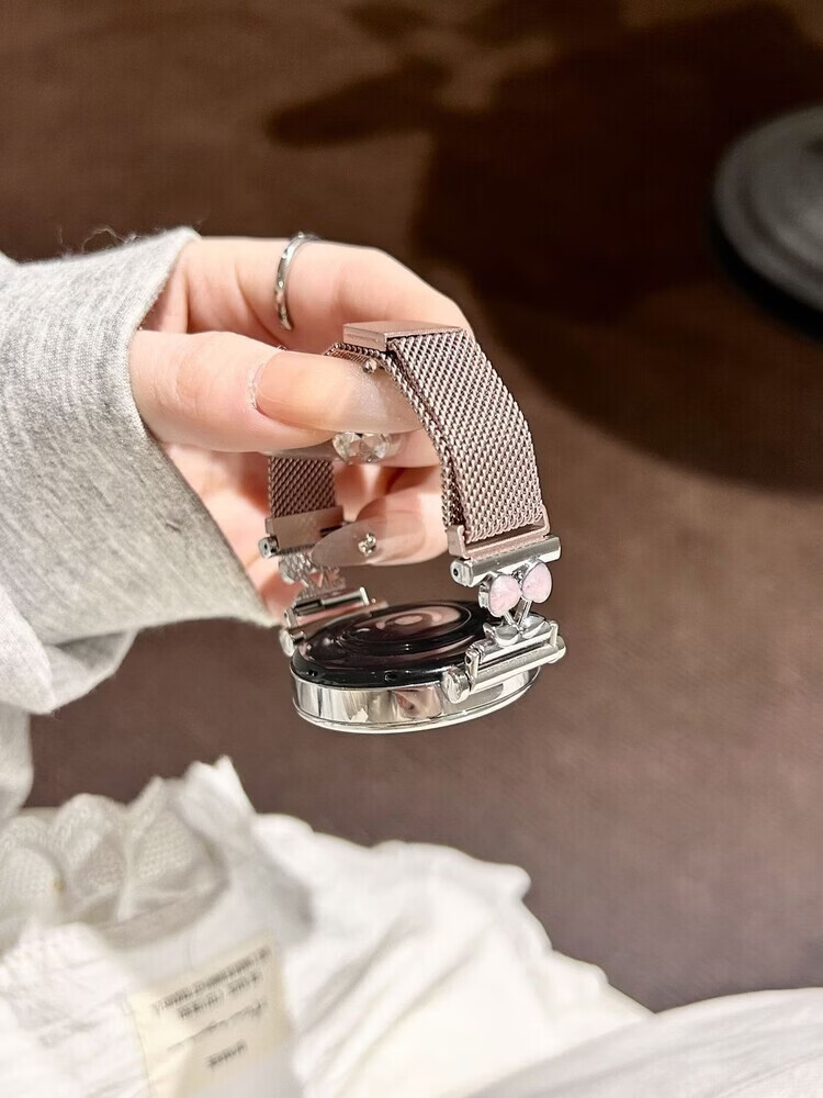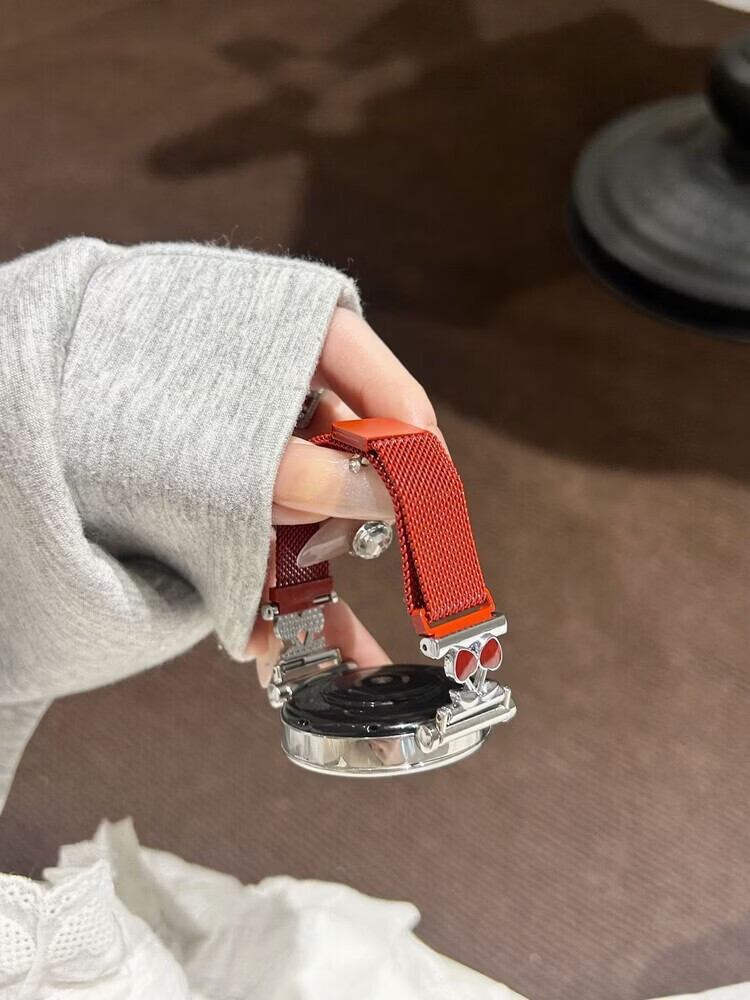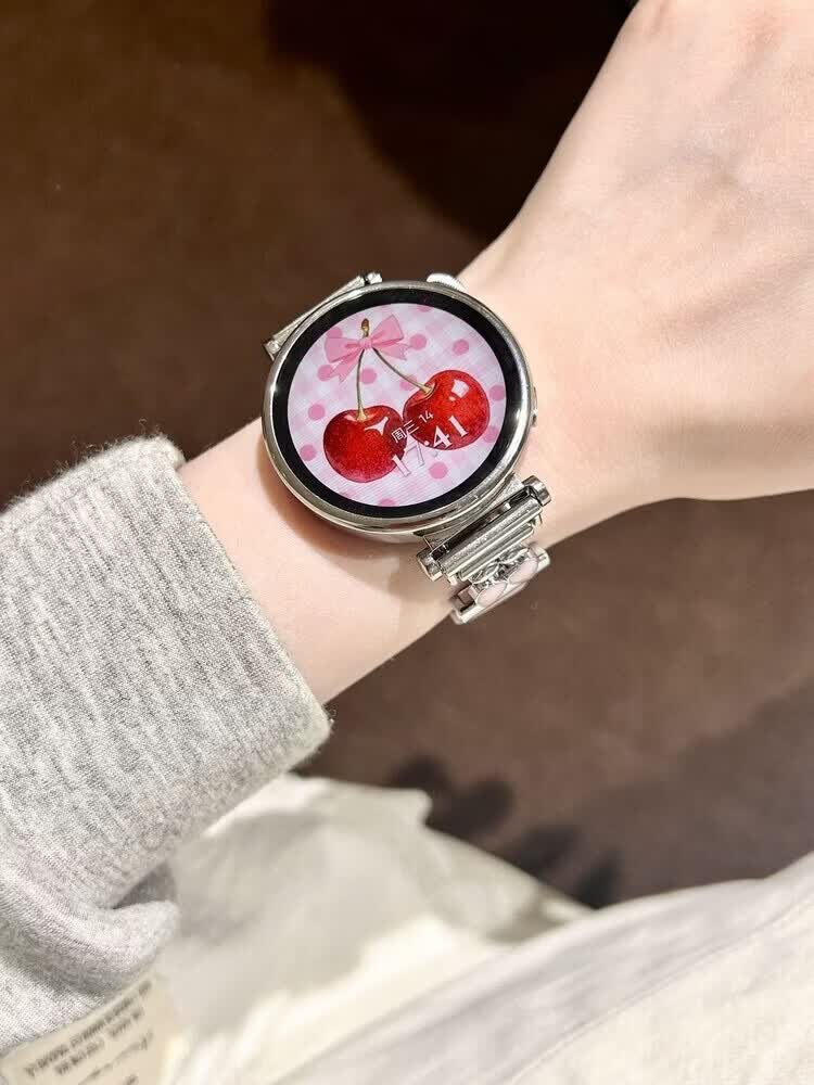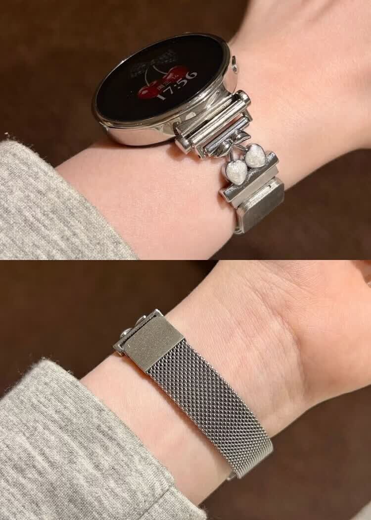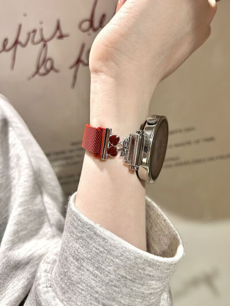 适用华为gt6表带金属磁吸watch5新款樱桃粉金米兰轻奢时尚网红女款表带 【银色-米兰尼斯】+樱桃白头粒 适用:华为Watch GT-表带22mm